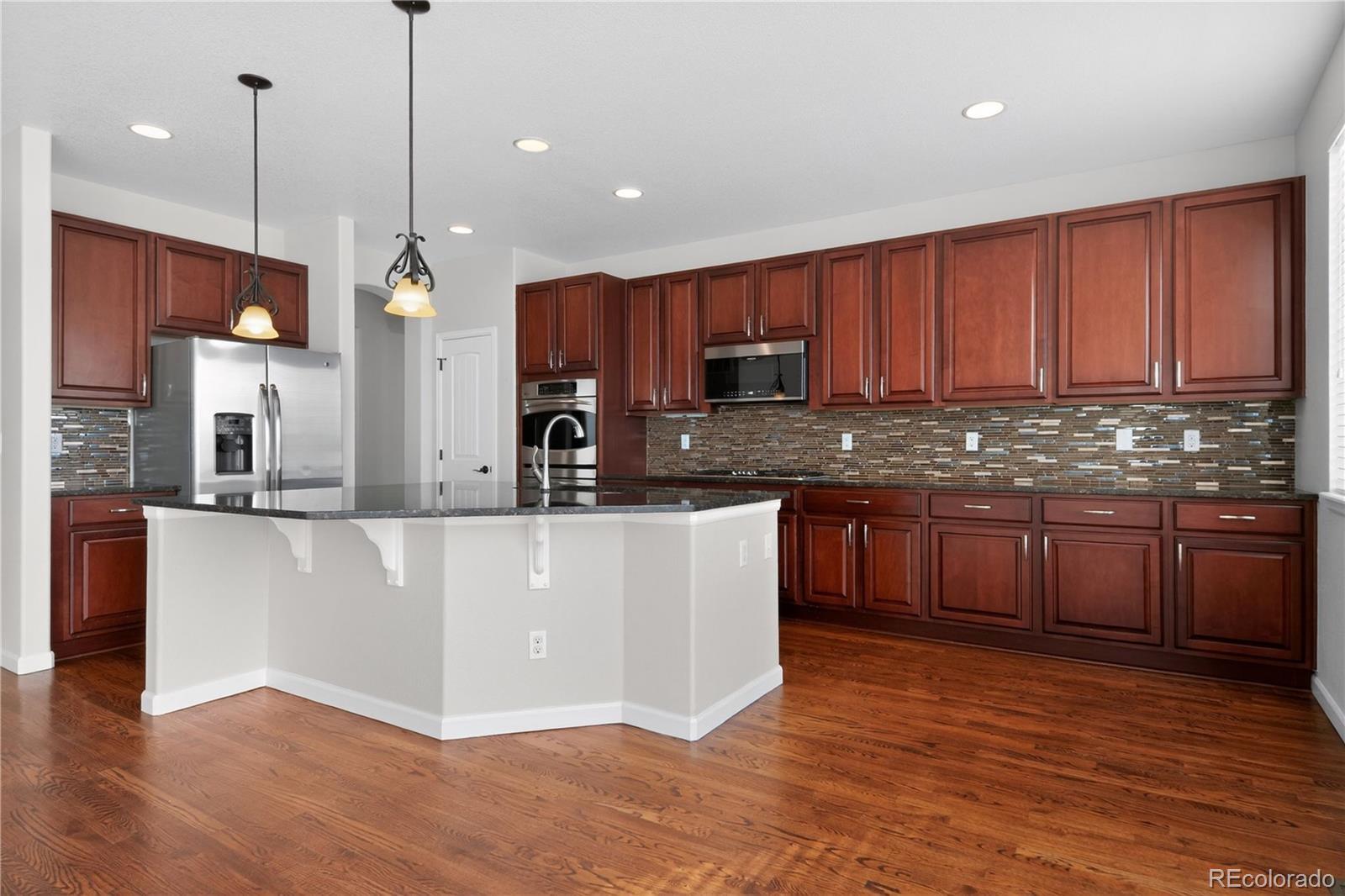 Unbelievable home filled with impressive upgrades throughout! The expansive kitchen is a true showpiece, featuring cherry cabinetry, slab granite countertops, stainless steel appliances including double ovens, refrigerator, microwave, dishwasher, and gas cooktop. Additional highlights include two fireplaces, a dedicated study, hardwood floors, iron balusters, a large laundry room, and a spacious bonus room upstairs offering flexible living space. Retreat to the generous primary suite with stunning mountain views and a luxurious five-piece bath complete with an oval soaking tub. Two oversized secondary bedrooms provide ample space and comfort. Step outside to a peaceful backyard sanctuary with a fire pit and flagstone patio, perfect for relaxing, entertaining, and enjoying breathtaking Colorado sunsets. This home truly offers it all...check it out!