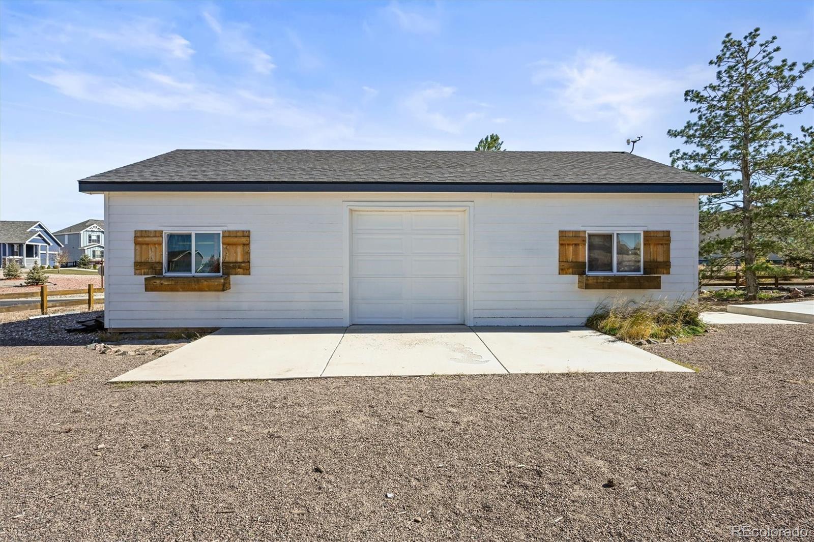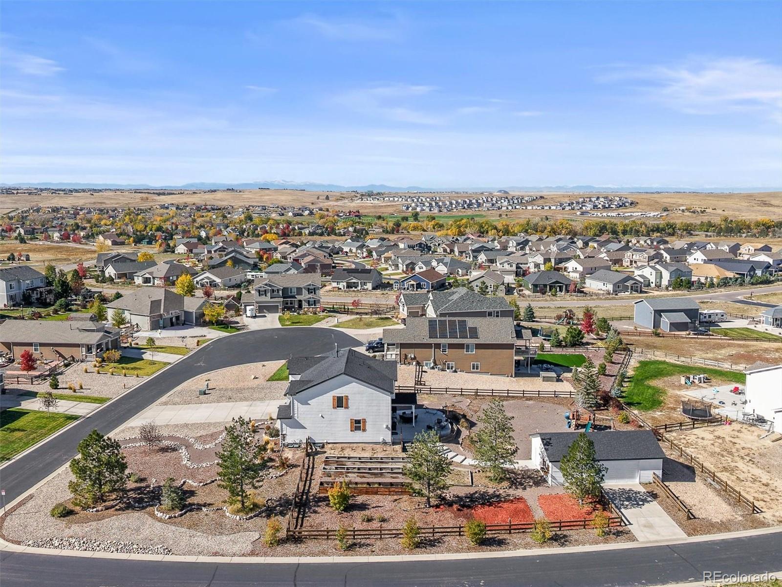 WOW! Spectacular does not even begin to define this property! Sitting in the beautiful Spring Valley Ranch neighborhood on a PRIME 2/3rd acre corner lot, you will be amazed at the flow and sophistication of this rustic contemporary 2-story home. Featuring an all new kitchen island and counters, a glowing and vaulted living space, ample living space throughout, and a professionally landscaped yard, there is nothing this home leaves to be desired! From the moment you walk in, you will love the formal dining, office/bedroom, while the oversized kitchen island with custom built timbers lead out onto your back patio and massive back yard space perfect for entertaining. Upstairs features 4 bedrooms, 2 full baths, including the large primary bed and en-suite bath! The massive driveway and 3-car attached garage are just the beginning, as the secondary 3-car detached garage/workshop and adjacent RV parking give you the space needed for the life you dreamt of! Minutes to the Spring Valley Ranch Golf Course and with easy access to get to both Elizabeth and Parker and other amenities and highways, this location cannot be beat. Finally, with a brand new impact resistant roof, and the partially finished/framed basement gives you a head start to finish it out as you desire, truly making this one of the best opportunities on the market today!