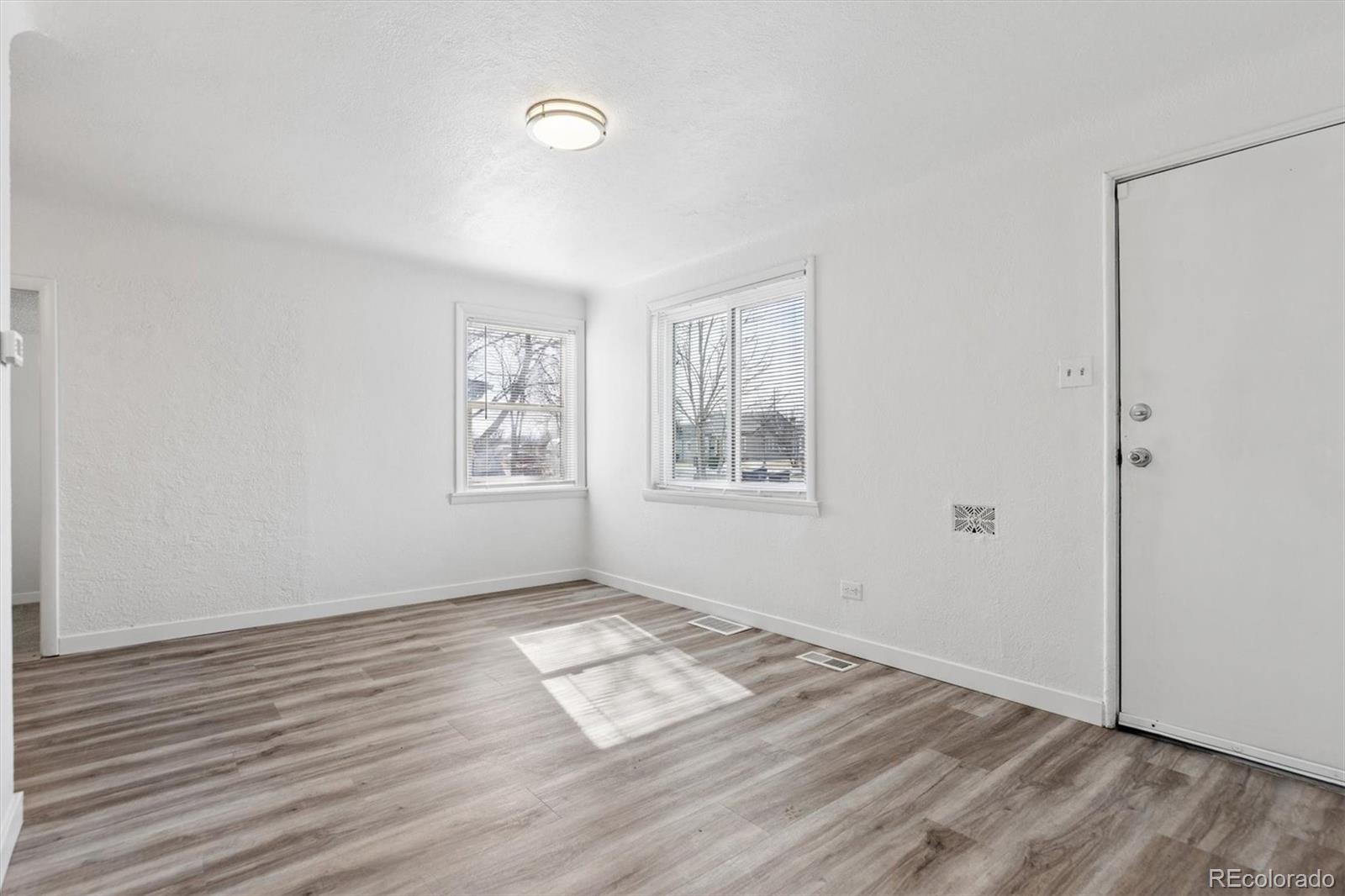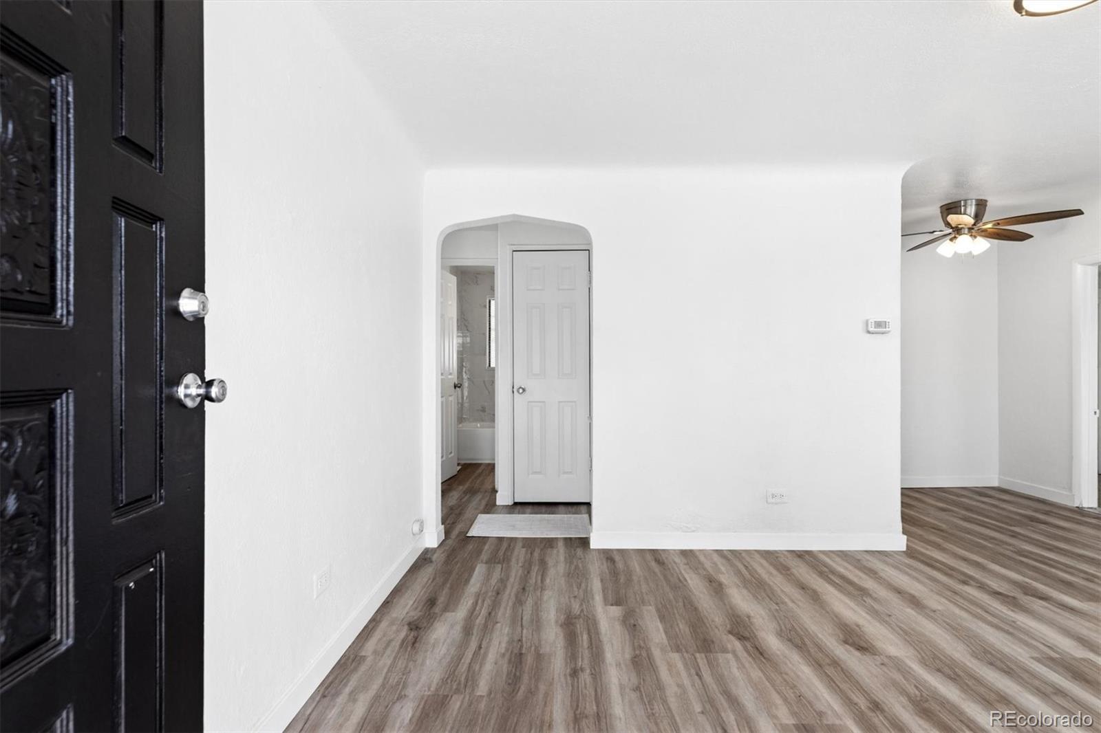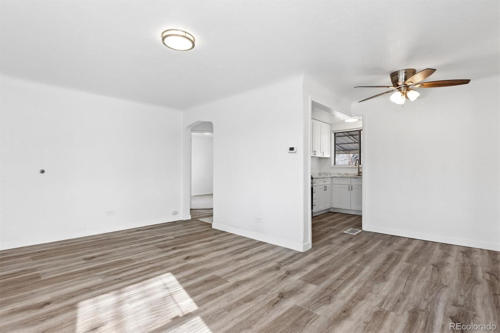 Welcome to this beautifully remodeled one-story bungalow in the heart of Denver’s desirable Chaffee Park neighborhood. This inviting 3-bedroom, 1-bath home offers comfortable, stylish living with thoughtful updates throughout. Luxury vinyl flooring and fresh interior paint create a bright, cohesive feel, while newer carpet adds warmth to the bedrooms. The remodeled kitchen features classic white shaker-style cabinetry, brand-new stainless steel appliances, ample counter space, and a charming breakfast nook—perfect for everyday meals or morning coffee. The updated full bath includes a tub/shower combination and a modern single vanity. Step outside to a fenced backyard with a covered patio, ideal for outdoor entertaining, pets, or relaxing year-round. The single-level layout offers easy living and excellent functionality. Located in vibrant Chaffee Park, this home is just steps from the neighborhood park and playground, with quick access to downtown Denver, Regis University, I-70, I-76, and nearby shopping, dining, and entertainment. Enjoy the charm of an established neighborhood combined with the convenience of urban living.