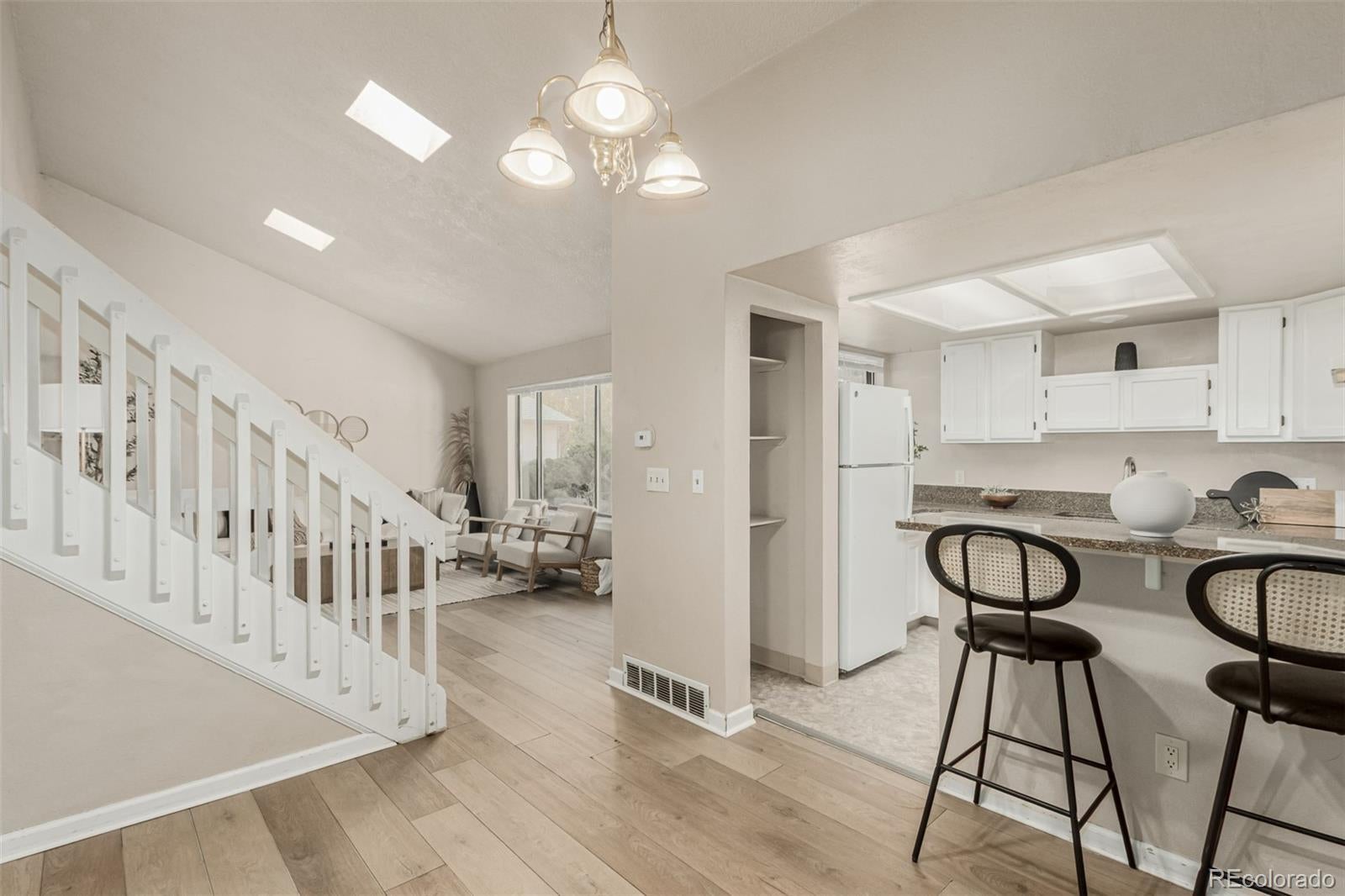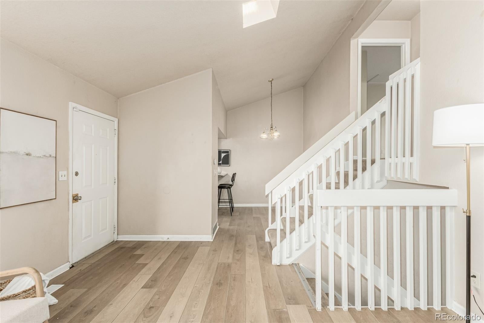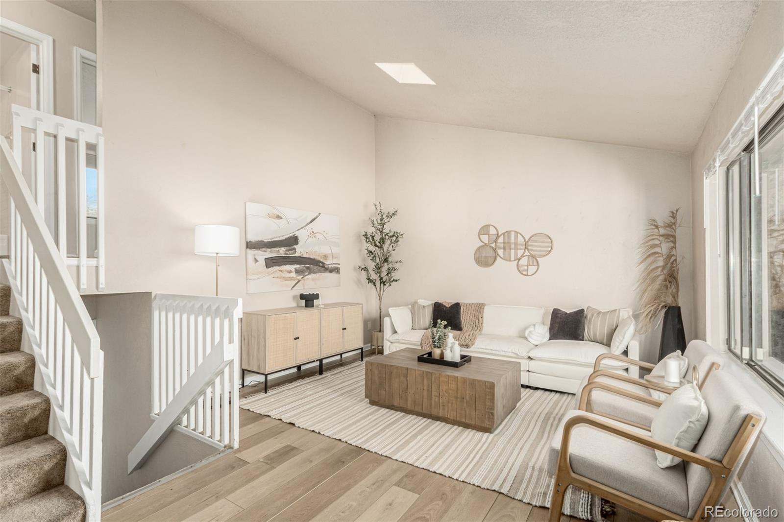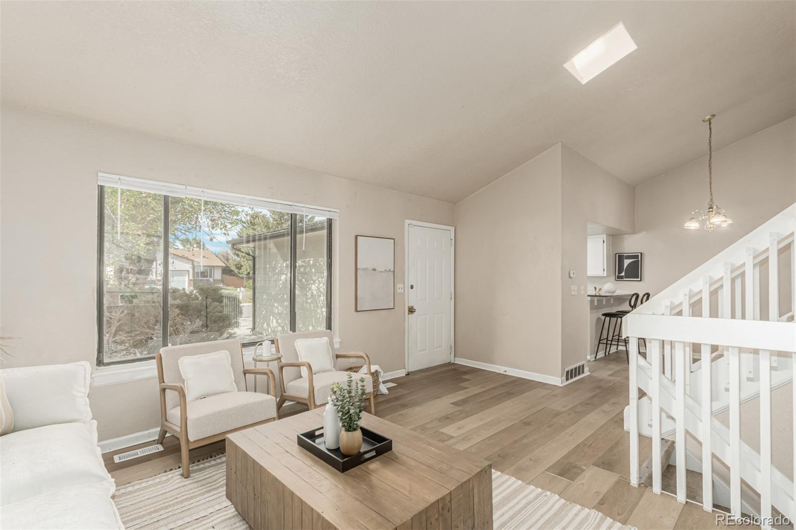 Discover this townhome tucked away in the peaceful Hallmark community! Featuring 3 bedrooms & 2 bathrooms, this home effortlessly combines comfort, style, and functionality. The attached 1-car garage is just the beginning, ensuring secure parking and extra storage space. The inviting interior showcases abundant natural light, a neutral palette, and a blend of soft carpet & wood-look tile flooring in all the right places. Feel instantly at home in the welcoming living room, where vaulted ceilings & skylights invite in warmth and brightness! he kitchen boasts built-in appliances, granite counters, ample white cabinetry, a pantry, and a peninsula with a breakfast bar. Upstairs, two inviting bedrooms await, including the large primary bedroom with direct access to a Jack & Jill bathroom. But that's not all! You'll love the finished walk-out basement, considered the third bedroom, offering endless possibilities. Whether you need a private retreat, office, or media room, this space is ready to adapt to your lifestyle. Its cozy fireplace adds an extra touch of warmth and character. The sliding doors open to a private backyard, just right for relaxing or hosting weekend BBQs. PLUS! This gem is equipped with AC, so you’ll stay comfortable all year long. Conveniently located near schools, shopping, restaurants, parks, and entertainment. Quick access to I-225! Don’t miss your chance to make it yours!