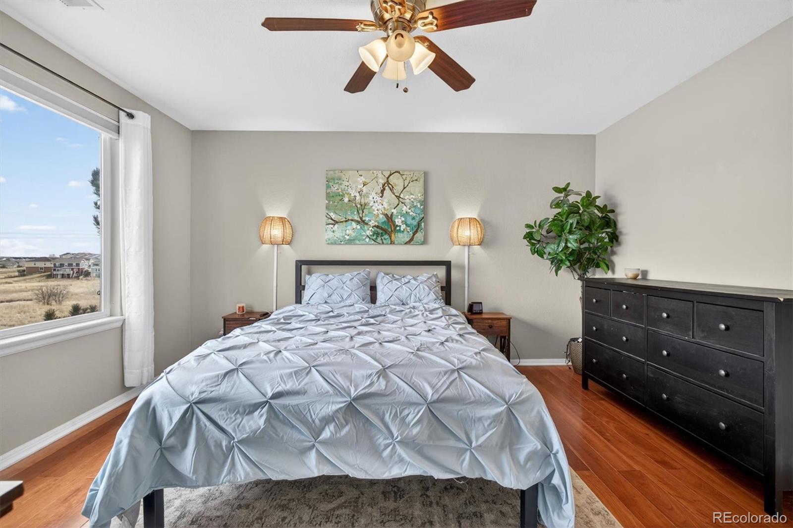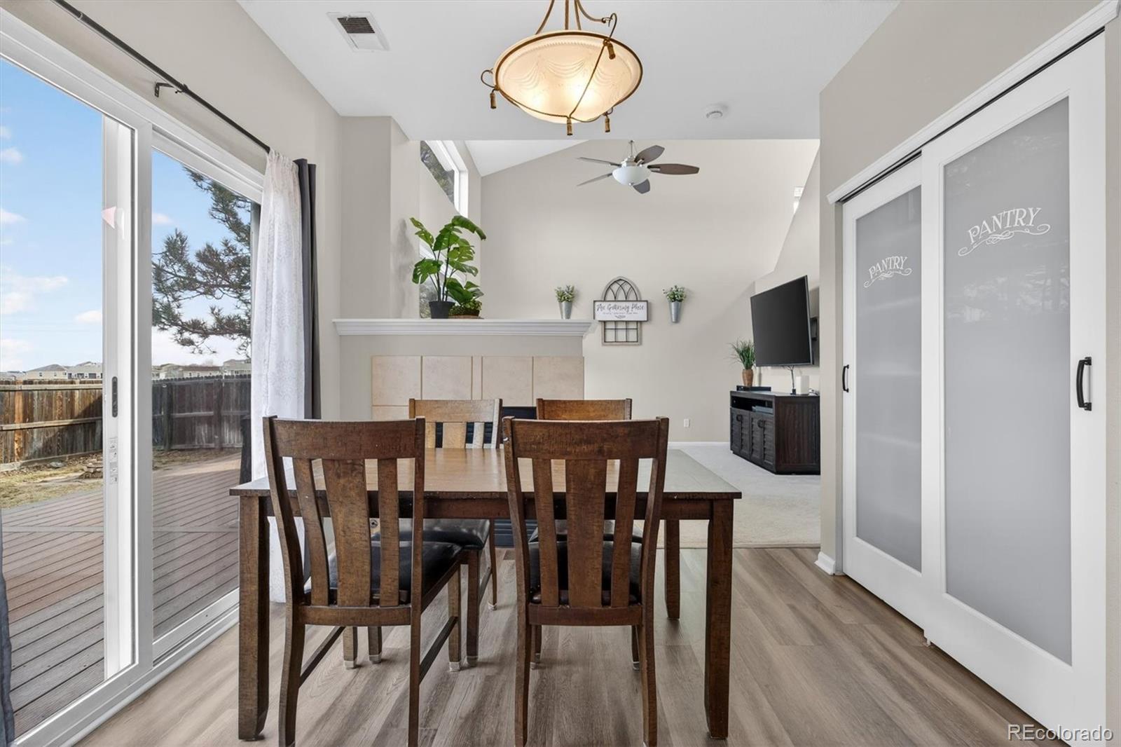 Welcome to this beautifully updated home in the highly sought-after Founders Village community of Castle Rock! Perfectly positioned on a premium lot backing to open space and Colorado trails, this property offers privacy, views, and direct access to the outdoor lifestyle that makes Castle Rock so special. Step inside to soaring vaulted ceilings filled with natural light and enjoy the warmth of a stunning three-sided fireplace that anchors the main living spaces. Updated flooring flows throughout, leading you into a thoughtfully renovated kitchen featuring stainless steel appliances, a modern glass tile backsplash, and a custom pantry designed for both style and function. Upstairs, spacious bedrooms offer walk-in closets and comfortable retreats for everyone. Major updates include a new water heater, providing peace of mind for years to come. Outside, the fenced backyard is ideal for entertaining or relaxing, complete with a raised deck overlooking open space. The south-facing driveway is a Colorado bonus, helping with natural snow melt in the winter months. Located just minutes from Castle Rock’s charming downtown, dining, shopping, and quick access to Denver, this home blends community charm with everyday convenience. With trails at your doorstep and space to grow, this is Colorado living at its finest.