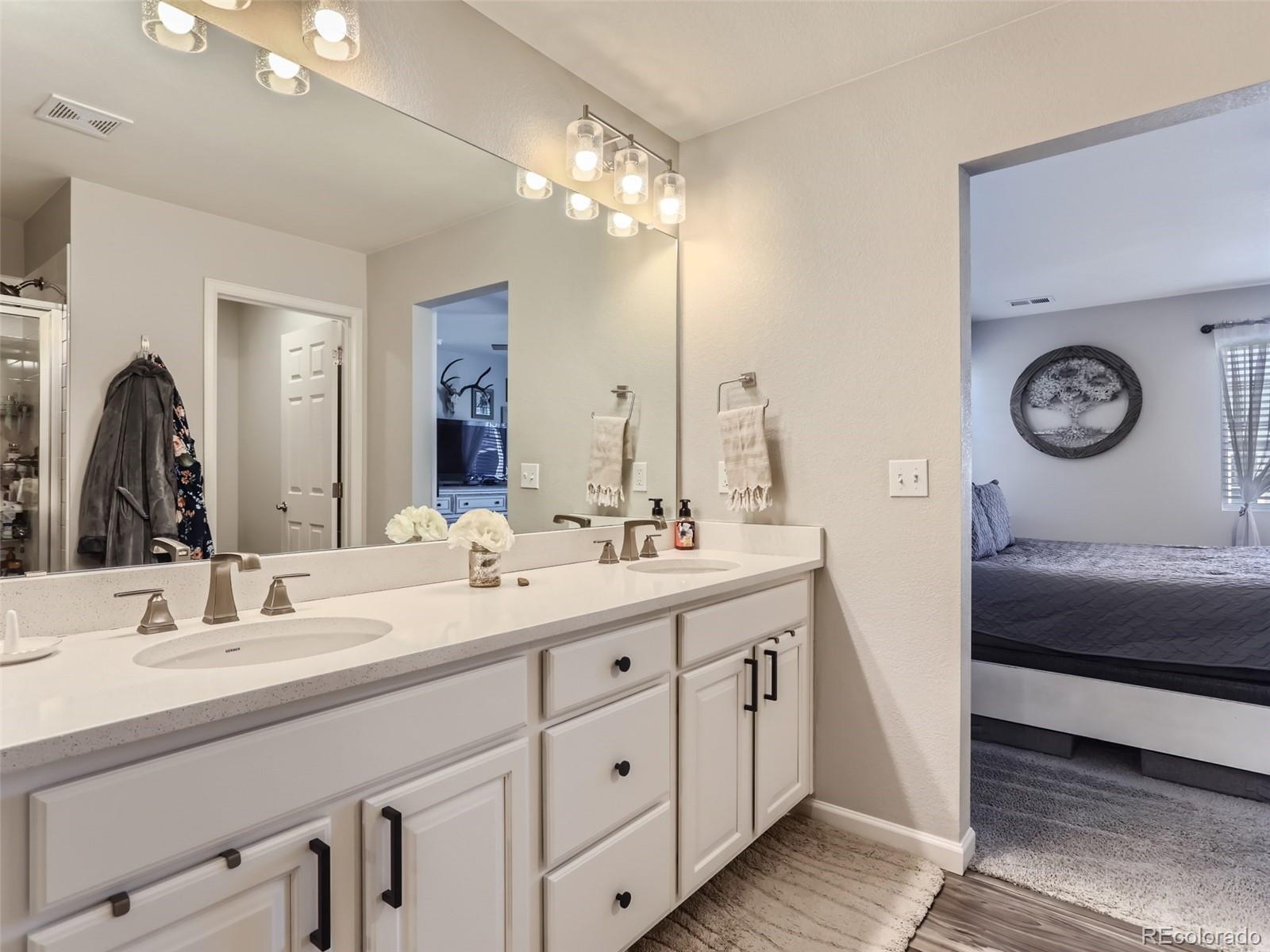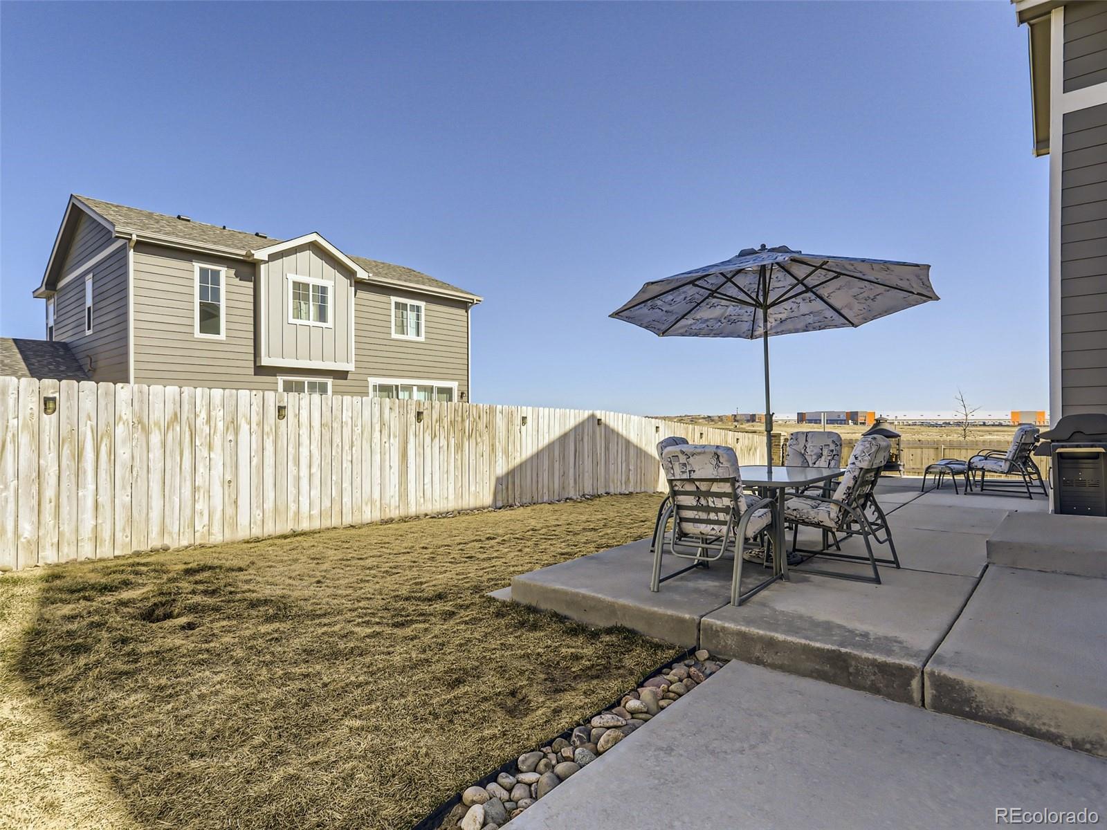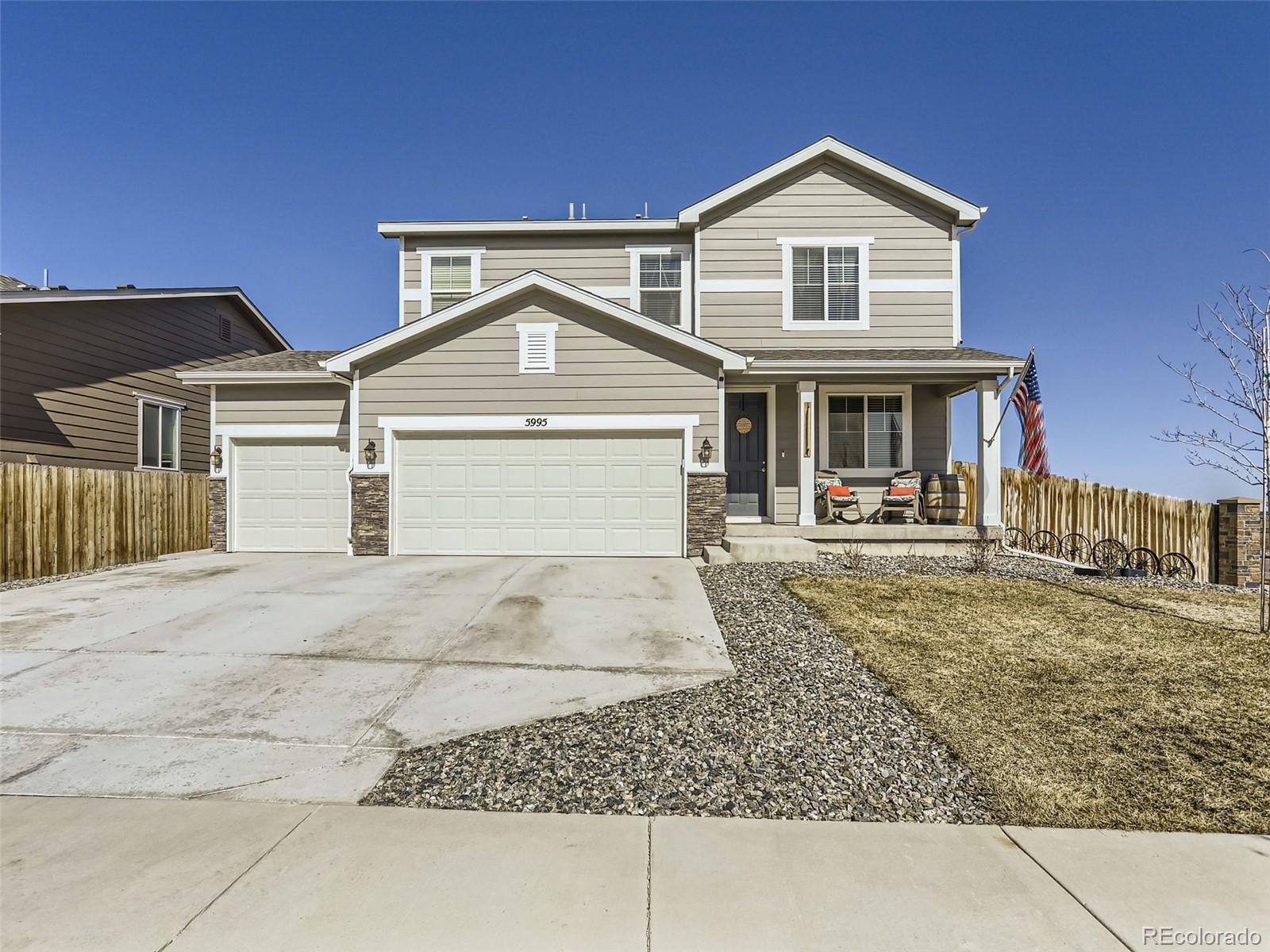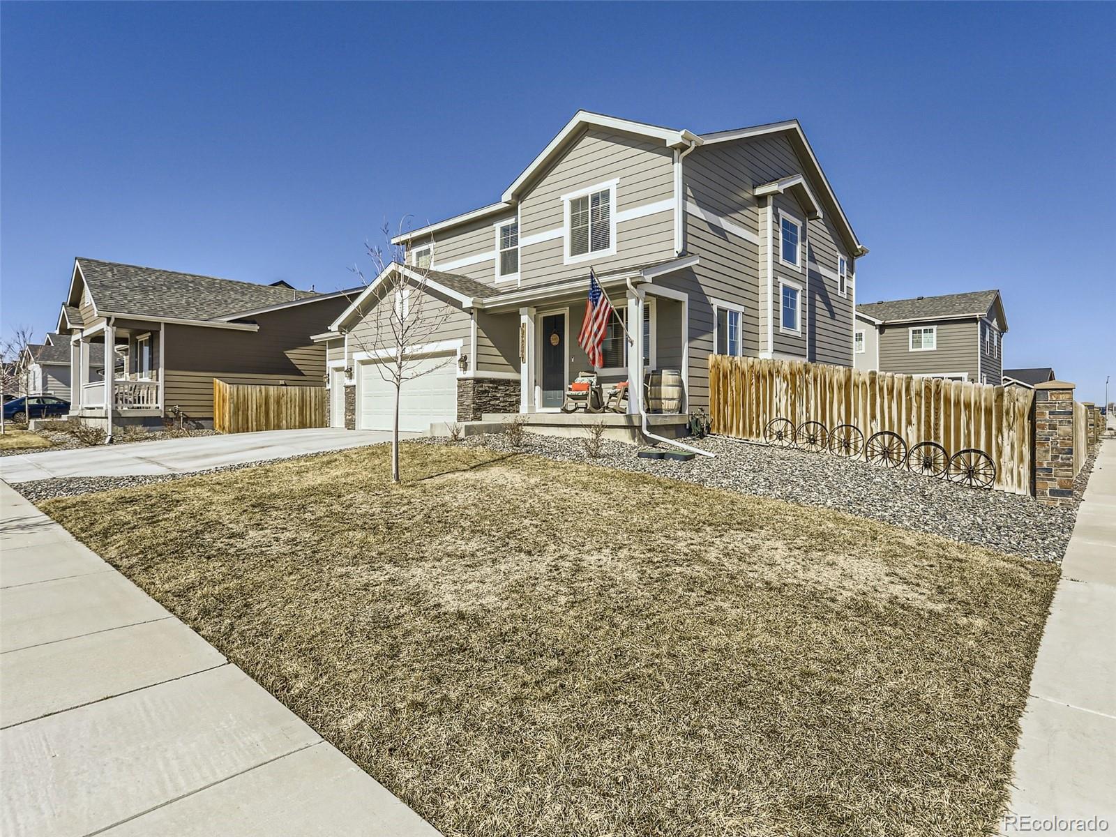 Welcome to this exquisite two-story home built in 2020. It features a 3-car garage and boasts a large corner lot. All bedrooms and laundry are upstairs for your convenience. Each bedroom features walk in closets. The primary bedroom has an ensuite with double sink vanity and spacious walk in closet. You can enjoy the beautiful Colorado weather on the large patio in the backyard. Inside you will find LVT on the spacious main floor. The living room is pre-wired for surround sound. The beautiful kitchen features granite counters and great space for hosting! This home was built by Richmond American Homes in 2020. This home, just 3 years old, delivers the allure of a newly constructed home without the wait! No upgrade was overlooked! Located near I76, shopping centers, restaurants, schools, parks, and Denver International Airport, this home is designed to cater to every lifestyle need. Don't miss out on the opportunity to make this exceptional property your own! **This home presents a rare opportunity with a 2.25% assumable FHA loan for qualified buyers!**