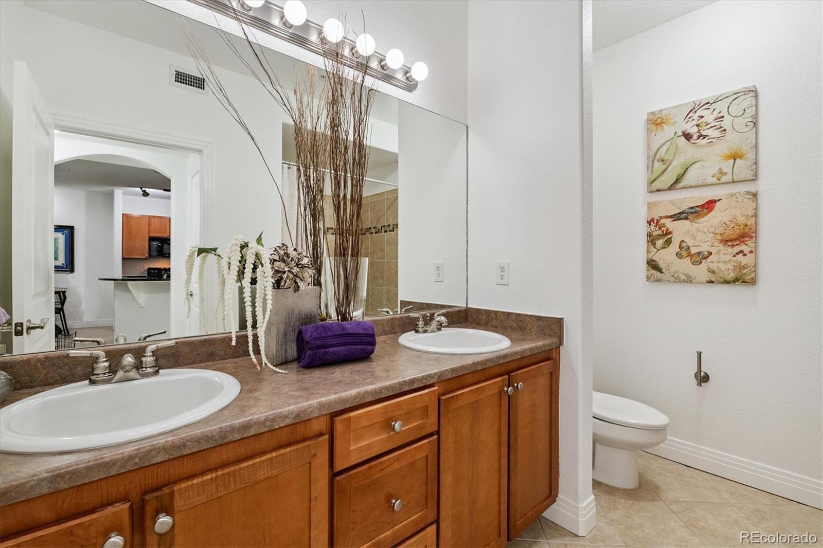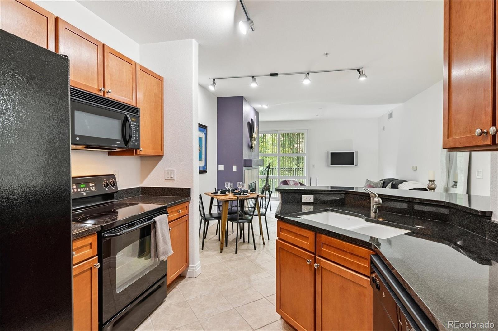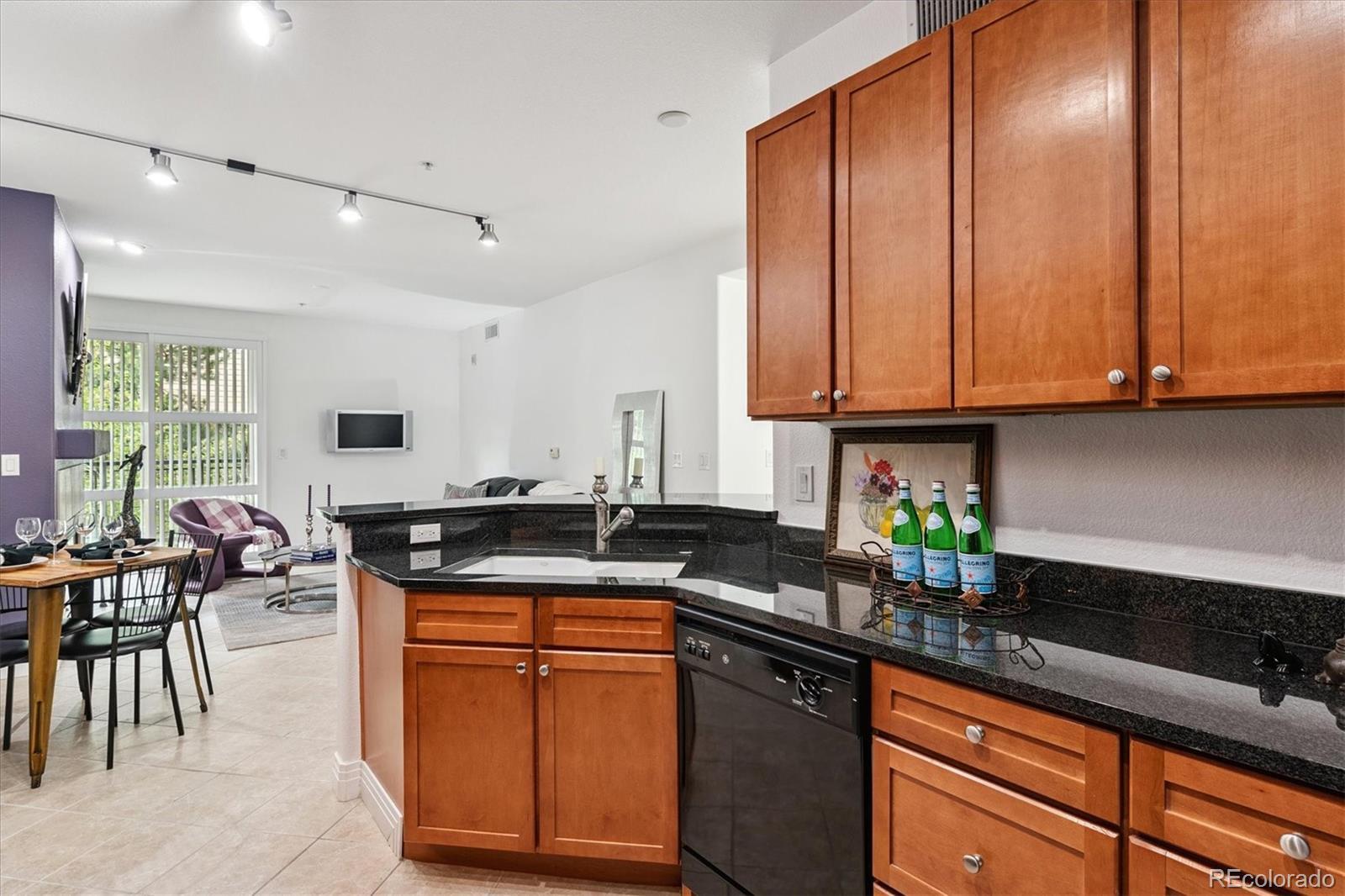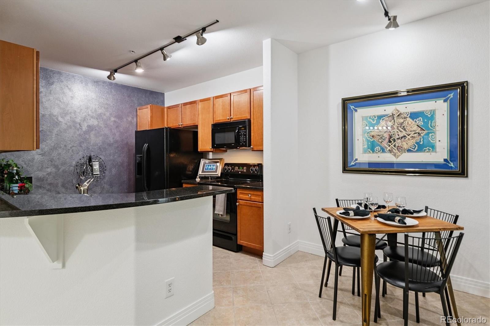 Unsurpassed location near the upscale Willow Creek neighborhood and Denver Tech Center, Dry Creek Crossing Condos offer resort style living at an attractive cost. Mere blocks to light rail and RTD. This gently lived in condo offers an open airy floorplan. Freshly painted and impeccably maintained. A large great room with a cozy gas fireplace and plantation shutters add a touch of class. There’s a private balcony with a heated storage unit. The stylish kitchen features, slab granite, warm tone wood cabinets and a complete suite of appliances. A breakfast bar, ample counter space and tons of cabinets make cooking and entertaining easy. The substantial sized bedroom also features plantation shutters, ceiling fan pre-wire and walk in closet. A full size, in unit, stackable washer and dryer are included. The full bath Features a double vanity, tub and shower. Amenities abound with a pool, spa, clubhouse, lounge, fitness center and even a pool table. The monthly H.O.A. includes a deeded secured underground garage space complete with storage unit. The building entrance is wheelchair accessible. Located in the highly acclaimed Cherry Creek School District. There are innumerable choices nearby for dining, entertainment and shopping. Convenient to the I-25 and C-470 corridor. Whether you’re buying for the first time or downsizing, this one checks all the boxes.
