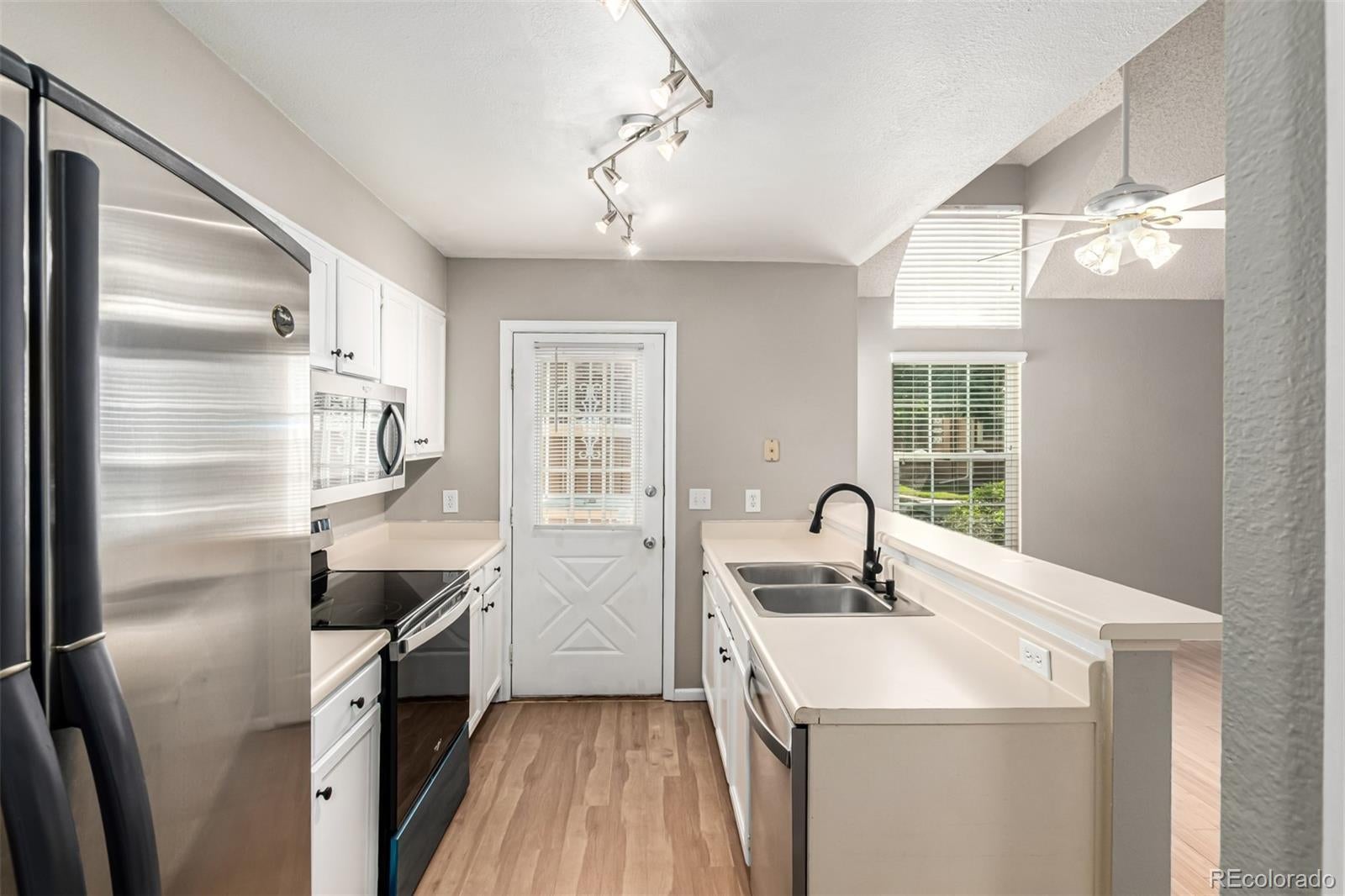 Welcome to 14169 E Dickinson Drive Unit A – Style, Space & Value in the Heart of Cherry Creek School District! This beautifully updated 2-bedroom, 2-bathroom end-unit townhome offers the perfect blend of modern comfort and prime location. Nestled in a quiet, well-maintained community, this move-in-ready home stands out with its private entrance, open floor plan, and abundant natural light. Step inside to find a spacious living area with vaulted ceilings, a cozy wood-burning fireplace, luxurious bamboo wood flooring in the main living area, and brand-new carpets throughout the home. The kitchen features newer stainless-steel appliances, newly painted cabinets, and a breakfast bar perfect for entertaining. Enjoy your morning coffee or evening wine on your private patio just off the main living space. The primary suite offers a peaceful retreat with ample closet space and an en-suite bathroom, while the additional bedroom provides flexibility for guests, a home office, or growing families. A dedicated laundry closet, newer central A/C unit and HVAC system, and individual covered parking space completes the package. What truly sets this home apart from others in the community? * End-unit privacy with no upstairs neighbors * Upgraded finishes and NEW carpets throughout * Turnkey condition with pride of ownership * One of the best price-per-square-foot values in the area Located just minutes from Cherry Creek State Park, I-225, shopping, dining, and top-rated schools – this home has it all. Don’t miss your opportunity. * Schedule your private showing today and experience the difference.