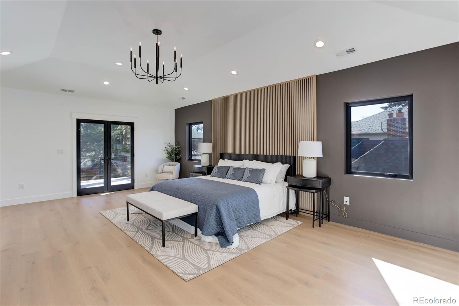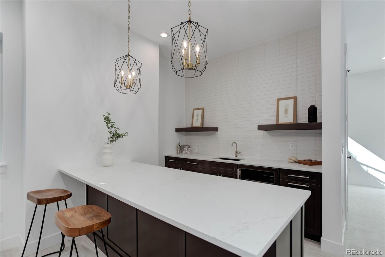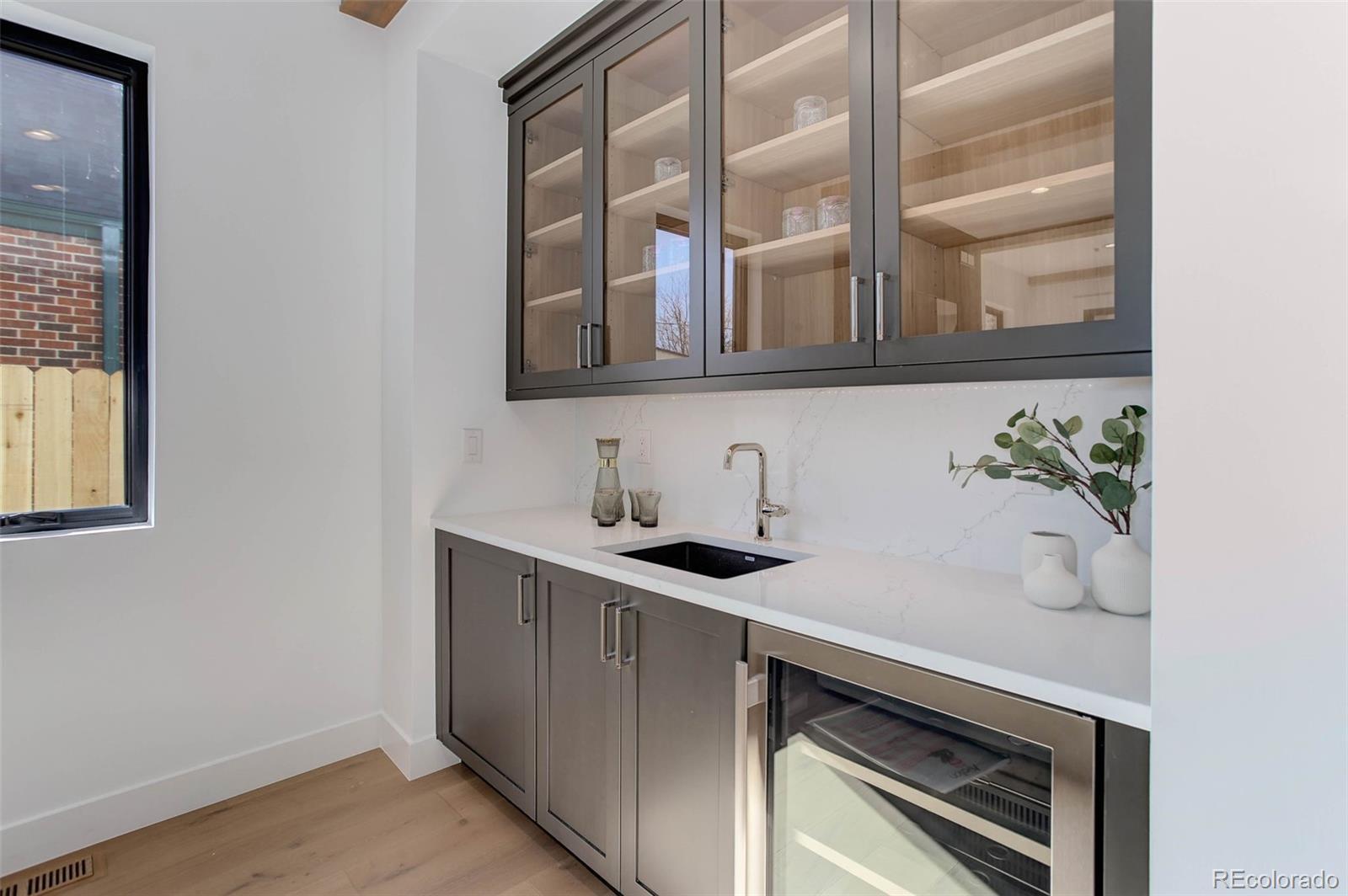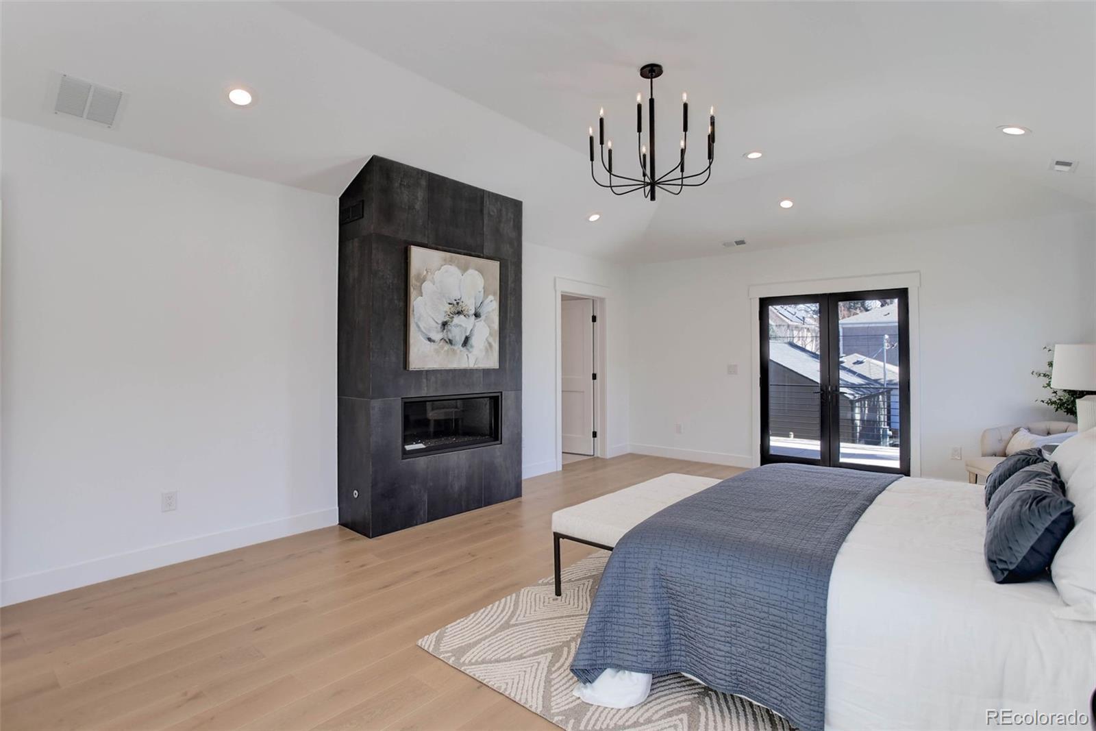 Located just a few blocks from Washington Park on a developed block, this Baronger Colorado masterpiece displays custom features and a sleek layout. To the left of the foyer, a staircase with wood handrails and rod iron balusters give a spacious path to move between levels. To the left of the foyer, glass doors with grids lead to a 170sqft office with a 36" fireplace and built in cabinets/shelves. The kitchen features wolf, subzero and cove appliances, rift white oak cabinets with integrated lighting, and an efficient layout designed for large meal prep. Adjacent to the kitchen, the great room has its own wet bar with glass cabinets, an under-counter beverage center and integrated lighting. The great room also features a 52" fireplace with Direct heat circulation, and sliders that lead you to a covered patio with a 42" exterior fireplace. Faux beams on the 1st floor have been stained to match the European white oak hardwood floors. The basement has been designed to allow for 2 bedrooms,a full bar, theatre area, and a 210 square foot gym! The gym has a glass partition entrance, glass mirrors spanning the entire east wall, block framing to allow for equipment mounting, wiring for speakers/t.v, and self-leveled floors with gym-grade flooring. Not your average at-home gym! When walking upstairs you'll notice the laundry room has been placed next to the primary suite. Two 5' long floating shelves, a builder supplied washer and dryer, and a 42" countertop for folding clothes make this laundry room extremely functional. The primary suite features a 42" fireplace, chandelier, slat wood panels, and French doors that open to a private deck floored with tiles and wired for speakers and a T.V. The backyard has a detached 2 car garage that has been placed close to the north property line. This has allowed for a large greenspace/backyard that very few new construction homes offer.