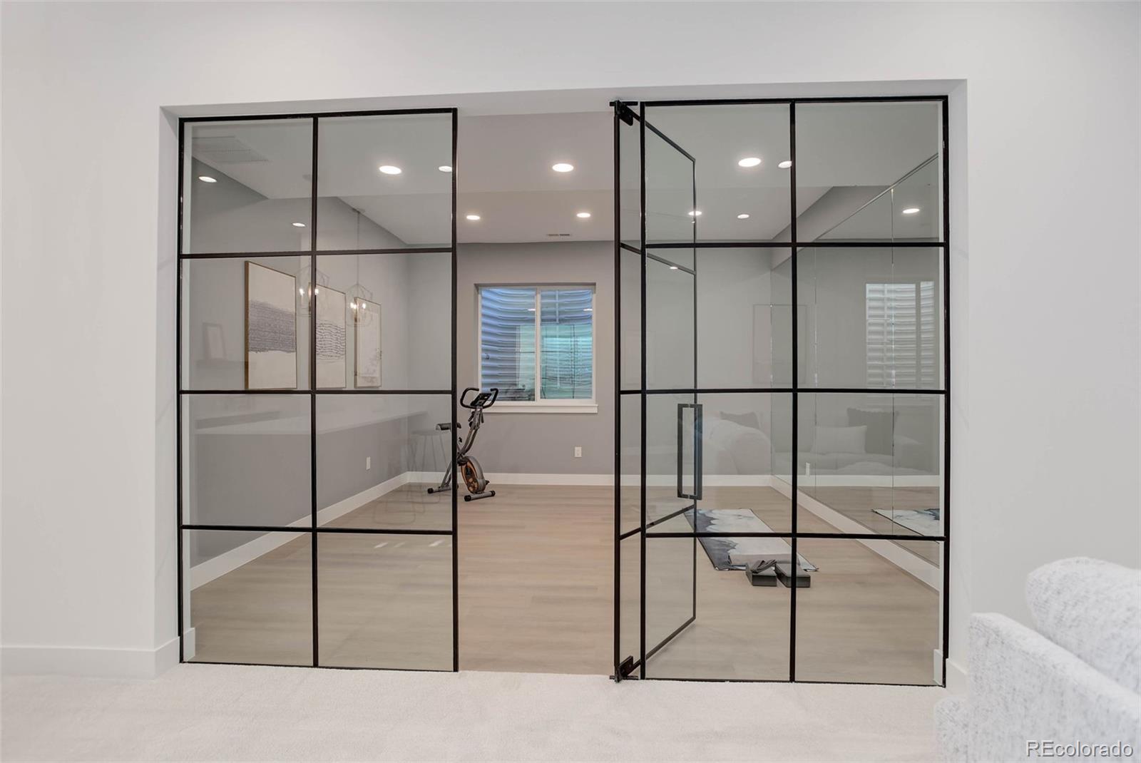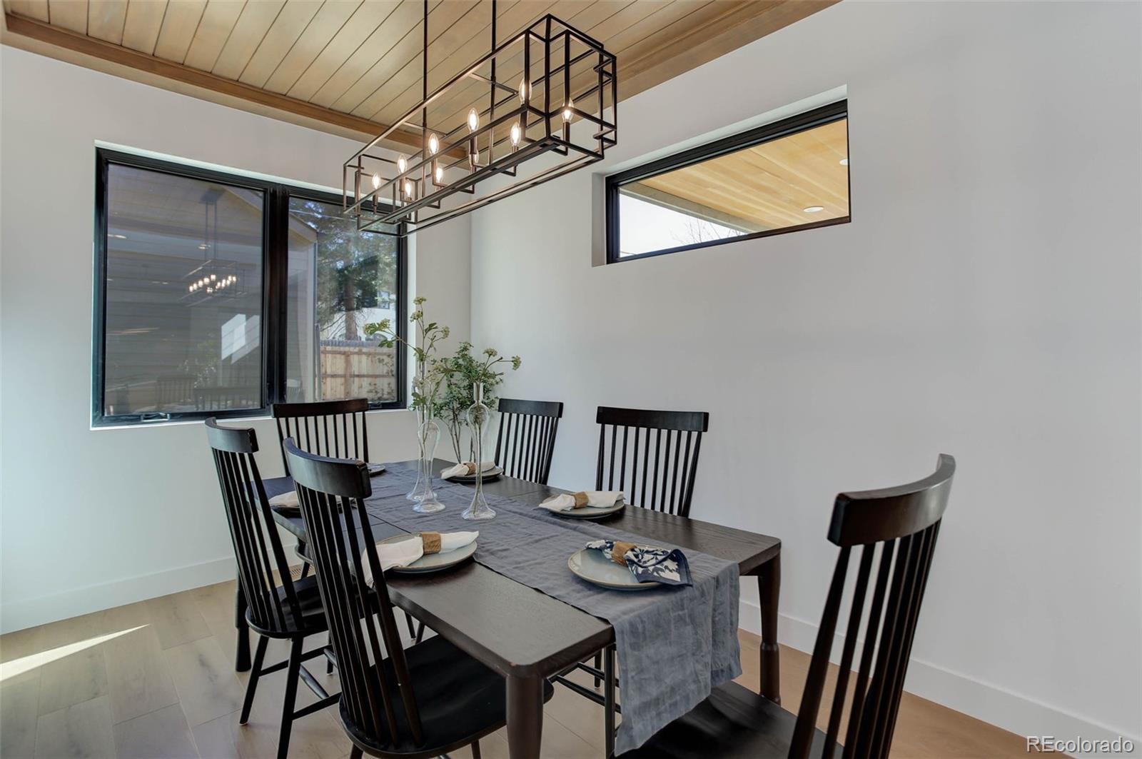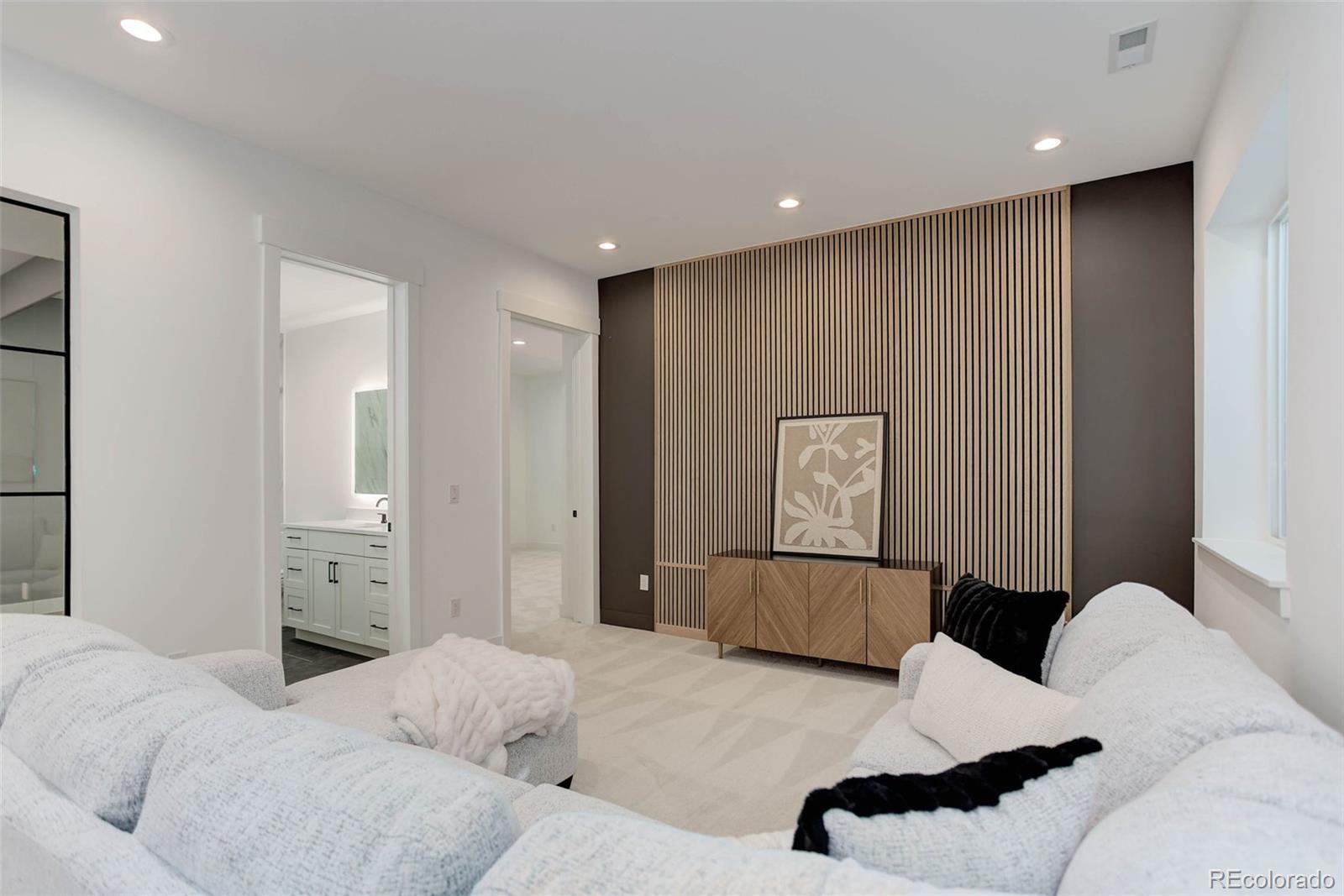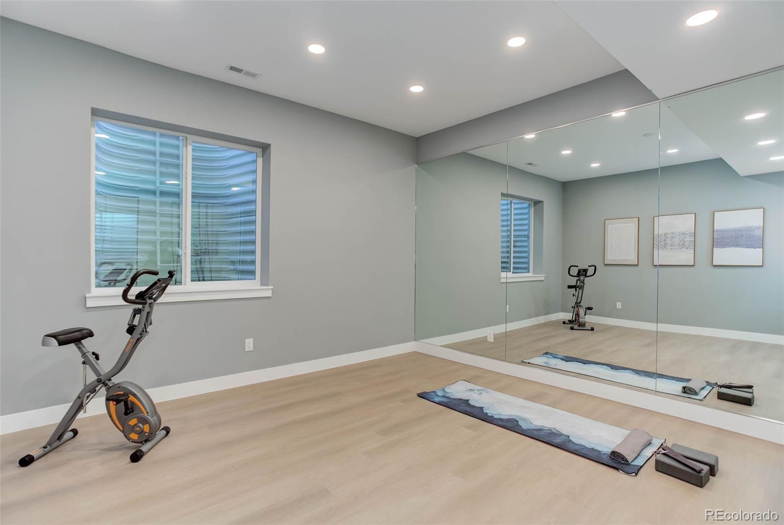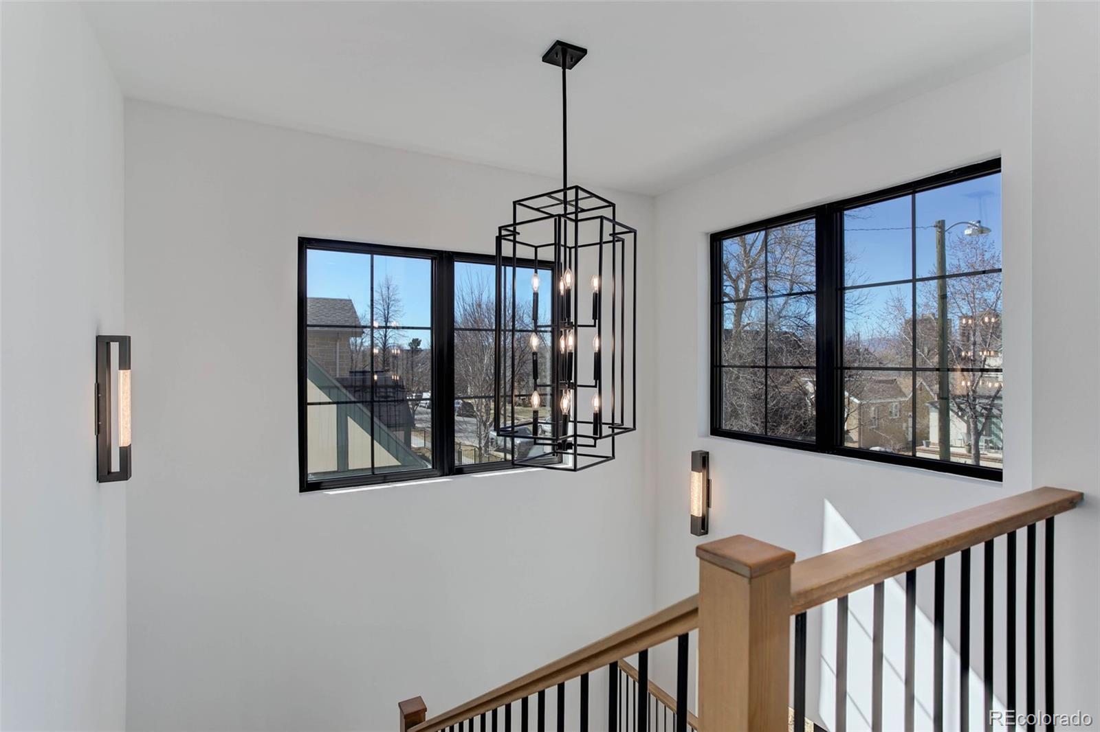 Located just a few blocks from Washington Park on a developed block, this Baronger Colorado masterpiece displays custom features and a sleek layout. To the left of the foyer, a staircase with wood handrails and rod iron balusters give a spacious path to move between levels. To the left of the foyer, glass doors with grids lead to a 170sqft office with a 36" fireplace and built in cabinets/shelves. The kitchen features wolf, subzero and cove appliances, rift white oak cabinets with integrated lighting, and an efficient layout designed for large meal prep. Adjacent to the kitchen, the great room has its own wet bar with glass cabinets, an under-counter beverage center and integrated lighting. The great room also features a 52" fireplace with Direct heat circulation, and sliders that lead you to a covered patio with a 42" exterior fireplace. Faux beams on the 1st floor have been stained to match the European white oak hardwood floors. The basement has been designed to allow for 2 bedrooms,a full bar, theatre area, and a 210 square foot gym! The gym has a glass partition entrance, glass mirrors spanning the entire east wall, block framing to allow for equipment mounting, wiring for speakers/t.v, and self-leveled floors with gym-grade flooring. Not your average at-home gym! When walking upstairs you'll notice the laundry room has been placed next to the primary suite. Two 5' long floating shelves, a builder supplied washer and dryer, and a 42" countertop for folding clothes make this laundry room extremely functional. The primary suite features a 42" fireplace, chandelier, slat wood panels, and French doors that open to a private deck floored with tiles and wired for speakers and a T.V. The backyard has a detached 2 car garage that has been placed close to the north property line. This has allowed for a large greenspace/backyard that very few new construction homes offer.
