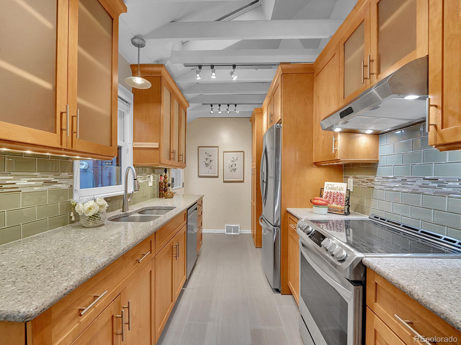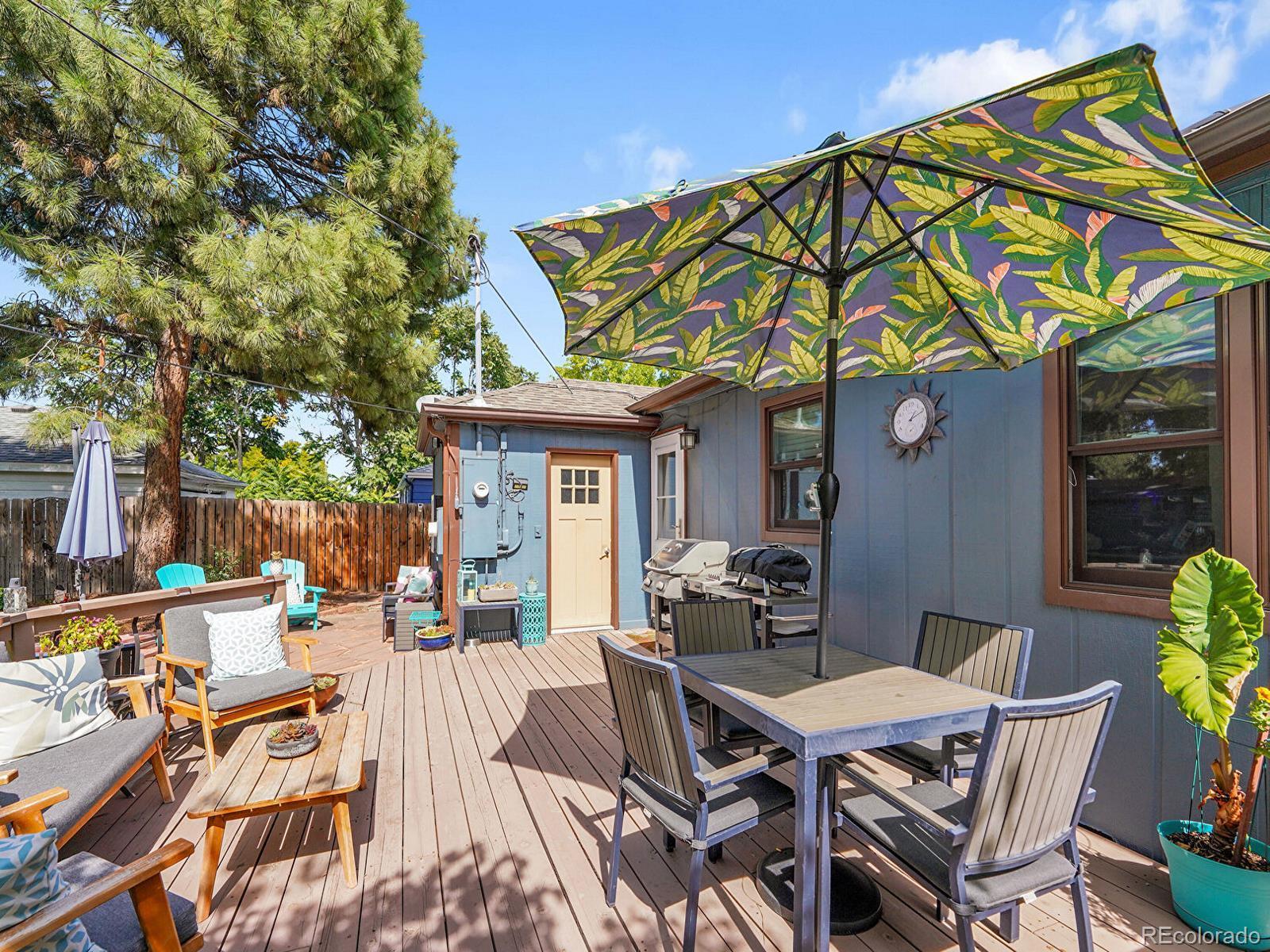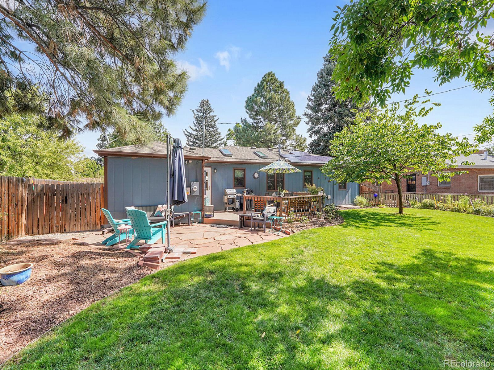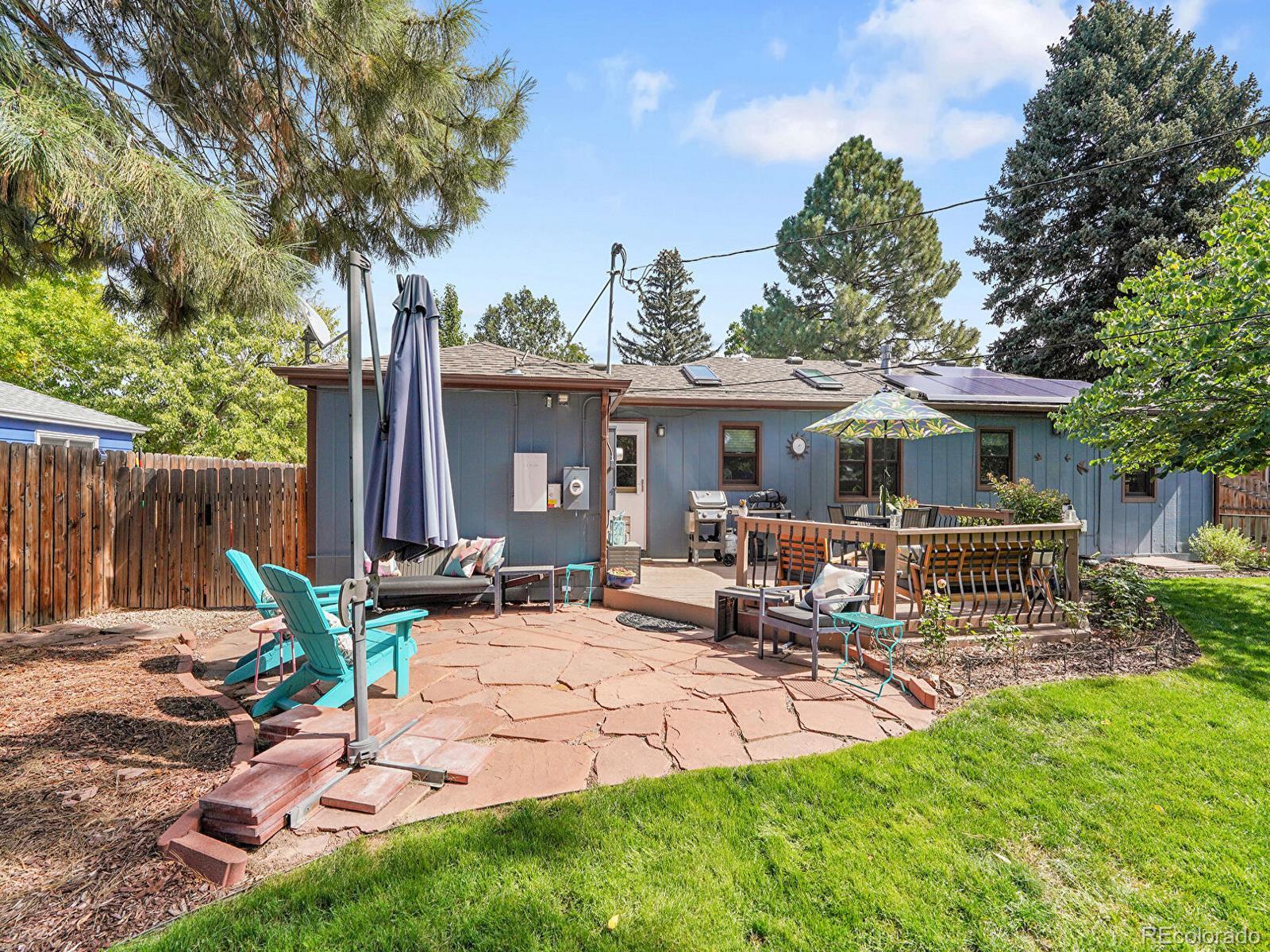Beautifully renovated single-story sanctuary only a mile from downtown Littleton! Set on an enviable .18-acre lot, this light-filled 3-bed, 1-bath home delivers functional living spaces, no HOA, and a stunning backyard made for entertaining. Enter into a sunlit living room designed for lively game nights or relaxed weekends, where an oversized picture window frames peaceful views of the front yard and flower-lined walkway. A hub for late-night cocktails or Sunday brunches, the eat-in kitchen features stainless-steel smart appliances, granite countertops, an induction range, vaulted ceilings, bright skylights, and backyard access, while a tucked-away laundry closet keeps chores out of sight. Unwind in the primary bedroom, offering a generous closet and bright windows. Two additional bedrooms flex easily for guests, hobbies, or a home office, just steps from the freshly-renovated full bath. The backyard is the true heart of the home: featuring a sprawling deck and extended river rock patio, perfect for al fresco dinners or soaking in the sun, while a koi pond, private vegetable garden, and lush lawn create an oasis surrounded by bright florals. Two backyard sheds and a single-car garage with a workbench offer ample storage. 5 years of arborist care by Preservation Tree Care! Perfectly placed for endless recreation, enjoy a quick stroll to nearby Ketring Park or the Cherry Cricket, local shops in downtown Littleton, or a 15-minute trip to Chatfield State Park or downtown Denver.