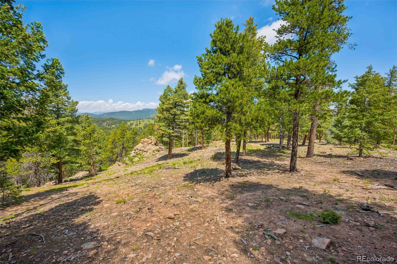 Now, with even more acreage! This is a rare opportunity to own a stunning 40-acre parcel in a serene, park-like setting in Conifer with breathtaking views from Riley's Peak. This unique property offers a beautiful mix of pine and aspen trees, grassy meadows, striking rock outcroppings, and breathtaking panoramic views of Mount Blue Sky and the Rocky Mountains. An observation deck near the top of the lot features spectacular mountain and city views! Zoned A-2 with no HOA, the lot allows for flexible building options that includes multiple flat sites ideal for a custom home, mountain retreat, or family estate. The property sits at the end of a quiet cul-de-sac with easy access via a county-maintained road. An initial driveway is already installed, and permitted engineering plans are available to extend it to a cleared building site. Tree clearing complete and utilities nearby include electricity, natural gas, and high-speed internet. Located just 20 minutes from the Denver metro area and minutes from local hiking and horseback trails, dog parks, shopping, dining, and major highways. Additional acreage also available!