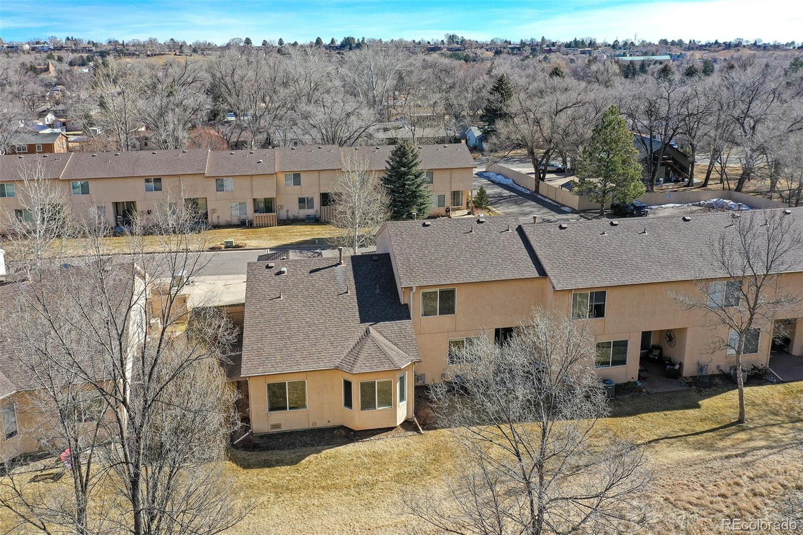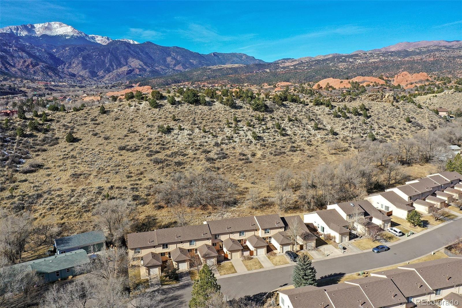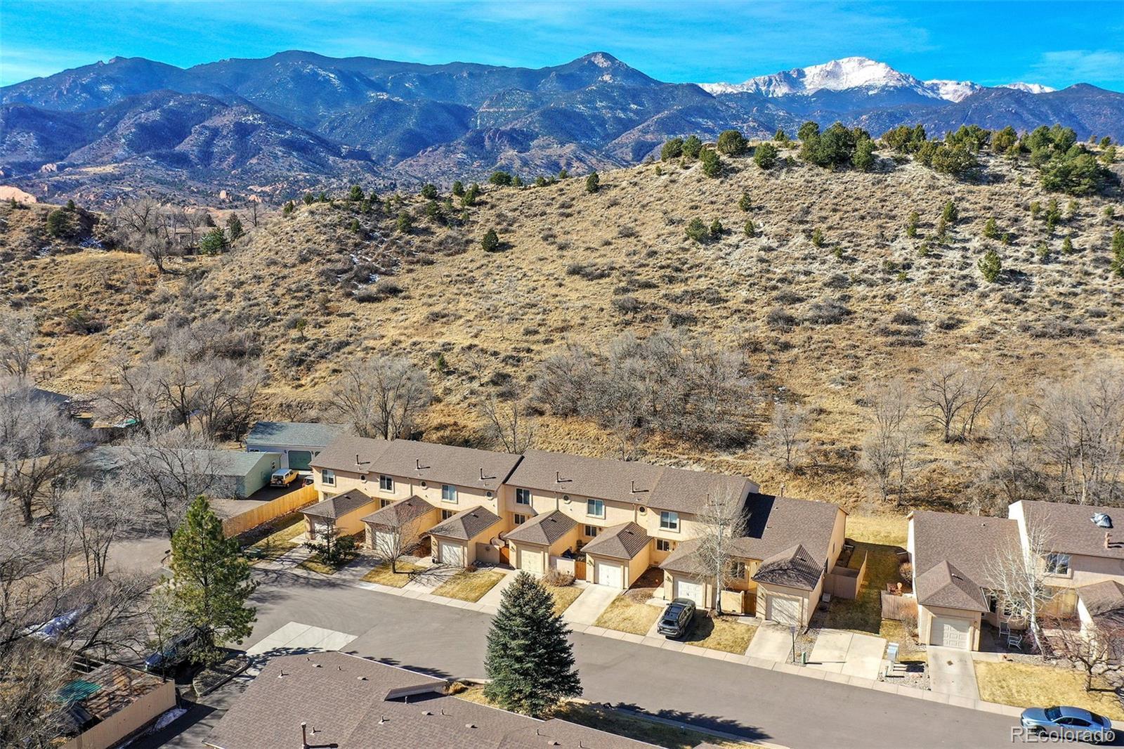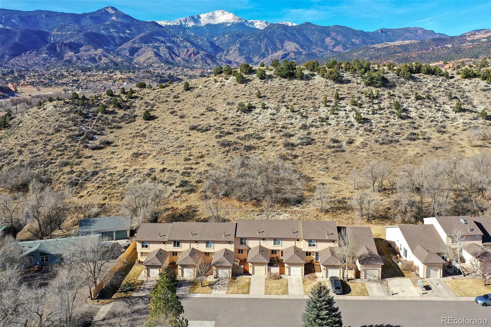 Welcome to this beautifully maintained ranch-style townhome in the desirable Pleasant Valley community on Colorado Springs’ west side. Perfectly positioned backing to open space with mountain views, this low-maintenance home offers comfort, convenience, and an unbeatable location near hiking trails, parks and schools. Inside, you’ll find 997 square feet of thoughtfully designed main-level living with 9-foot ceilings, skylights, and an open great room concept that feels bright and inviting. Natural wood flooring flows through the main living areas, while large windows bring in abundant natural light. The kitchen features granite countertops, natural wood cabinetry, a breakfast bar, and gas range, seamlessly connecting to the dining area with bay window and walk-out access to the from private patio area, ideal for morning coffee or quiet evenings. The spacious primary suite includes an adjoining bath with free-standing shower. A second bedroom and full bath offer flexibility for guests, home office, or additional living needs. Main-level laundry adds everyday convenience. Step outside to the enclosed 21x8 concrete patio to enjoy the wildlife and views of the open space behind. Located minutes from I-25, downtown Colorado Springs, and Garden of the Gods, this west side gem offers the perfect blend of lifestyle and accessibility.