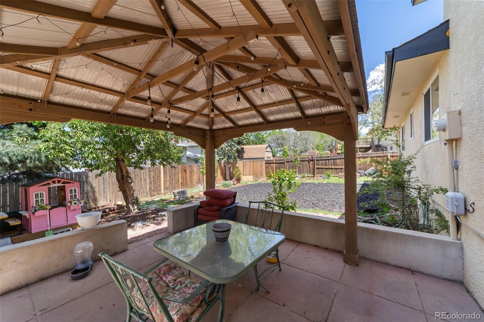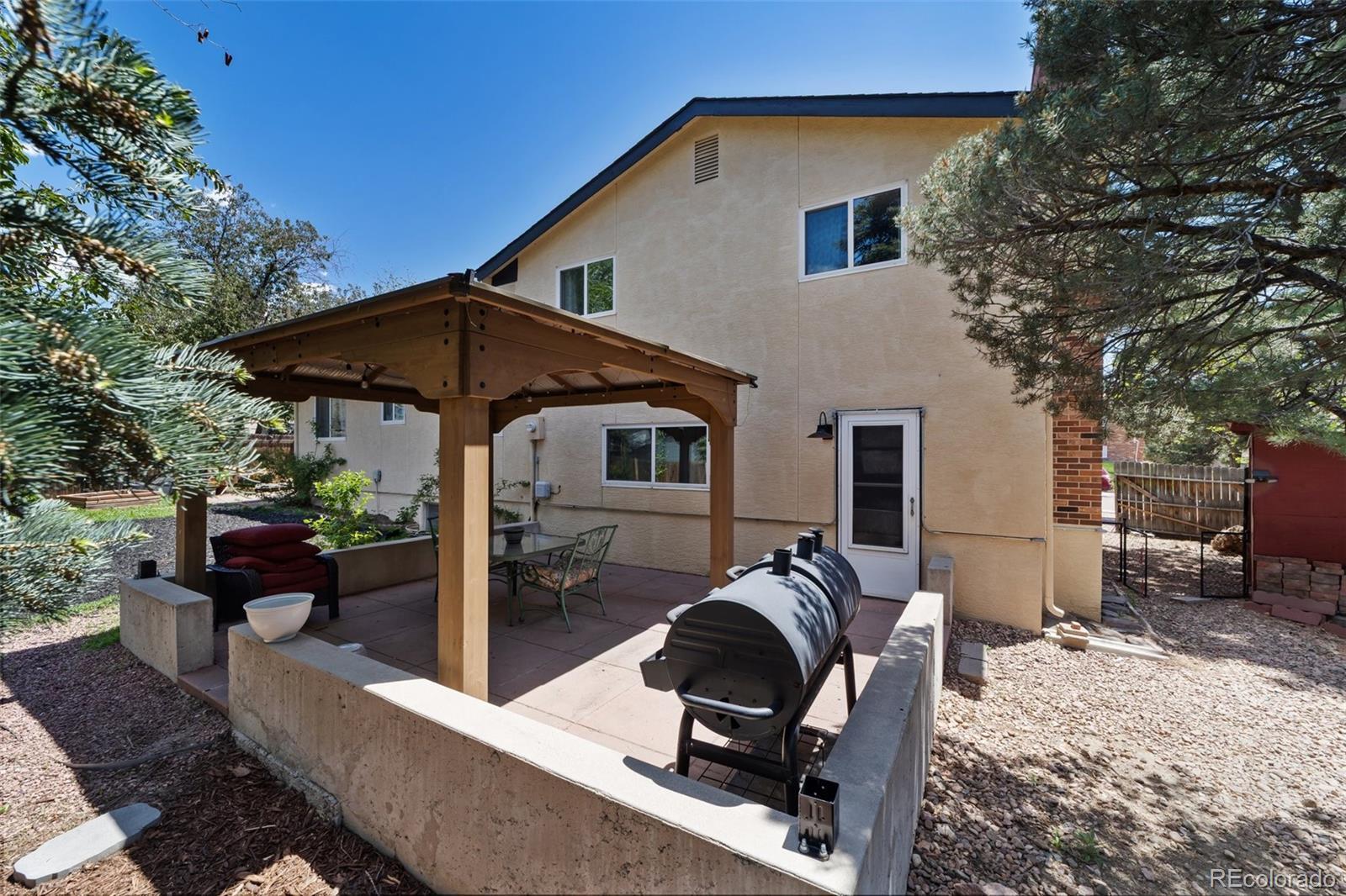 Welcome to your private retreat in the sought-after Rustic Hills neighborhood of Colorado Springs. Tucked away in a quiet, established area that feels secluded yet incredibly convenient, this beautifully updated Tri-Level home offers nearly 2,400 sq. ft. of comfortable, move-in-ready living. With 3 bedrooms, 3 bathrooms, and multiple living spaces, it’s the perfect blend of function, style, and room to grow. Step inside to find beautiful and durable luxury vinyl plank flooring, and a fully renovated kitchen featuring brand-new cabinets and sleek countertops The inviting lower-level living room includes a cozy wood-burning fireplace, with outdoor access to the backyard oasis with mature trees, and oversized gazebo. Upstairs, three bright and spacious bedrooms provide peaceful retreats, including a generous primary suite with a private ¾ bath. A second full bathroom ensures comfort for family or guests. The lower levels offer a spacious laundry area, additional ¾ bath off the garage, and a large open basement perfect for a game room, home theater, gym, or guest space.. For those who need serious parking flexibility, this property delivers what few others in the area offer—all with no HOA restrictions. In addition to the large 2 car garage, enjoy an extra-wide main driveway plus a long second driveway that extends behind the first of 2 double gates, perfect for additional vehicles, trailers, or guests. Whether you own multiple vehicles, run a small business, or simply value space and options, this setup is ideal. All of this comes with unbeatable access to shopping, dining, parks, schools, and major military installations, including Peterson Space Force Base and Schriever Space Force Base and Fort Carson Don’t miss this well-maintained, move-in ready gem in a quiet, tucked-away location.