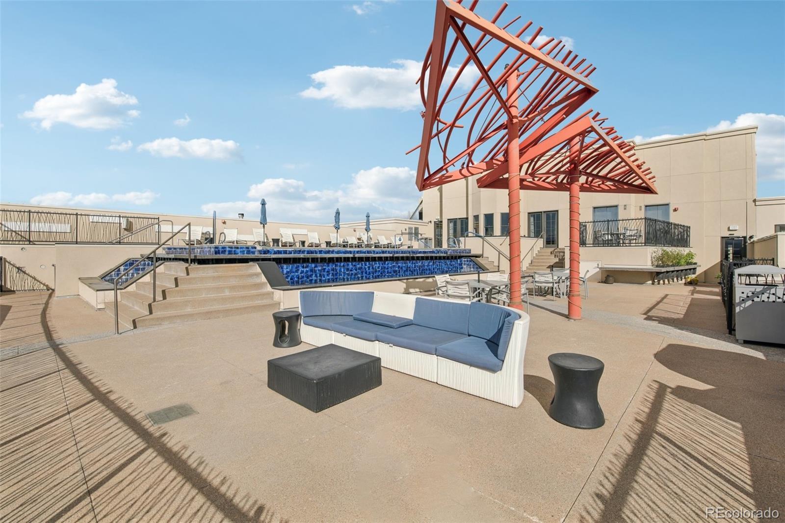 Welcome to Watermark Luxury Residences — a true masterpiece of modern design crafted by a renowned architect Curtis W. Fentress. This spacious 2-bedroom plus office, 3-bath residence offers 1,714 sqft of refined living space complemented by an expansive 500 sqft terrace, perfect for outdoor entertaining or quiet relaxation. Inside, you’ll find a gourmet kitchen featuring upgraded appliances, under-mount LED lighting, and a large island that flows seamlessly into the open-concept living area. High ceilings and generous windows enhance the sense of space and light, while both bedrooms offer ensuite bathrooms and walk-in closets for ultimate comfort. At Watermark, residents enjoy a boutique lifestyle with exceptional amenities — a welcoming concierge, resident lounge, conference area, fitness room, and on-site coffee bar. The rooftop oasis features a year-round heated infinity pool, hot tub, kitchen, and serene Zen garden. HOA dues include all utilities plus WiFi for effortless living. This unit also includes the exclusive use of two parking spaces, including a premier spot conveniently located right outside the basement door. Set in Denver’s historic Baker neighborhood, you’re just moments from top-rated dining, shopping, and with quick access to downtown and the mountains, it’s the perfect blend of luxury and location with a historic charm.