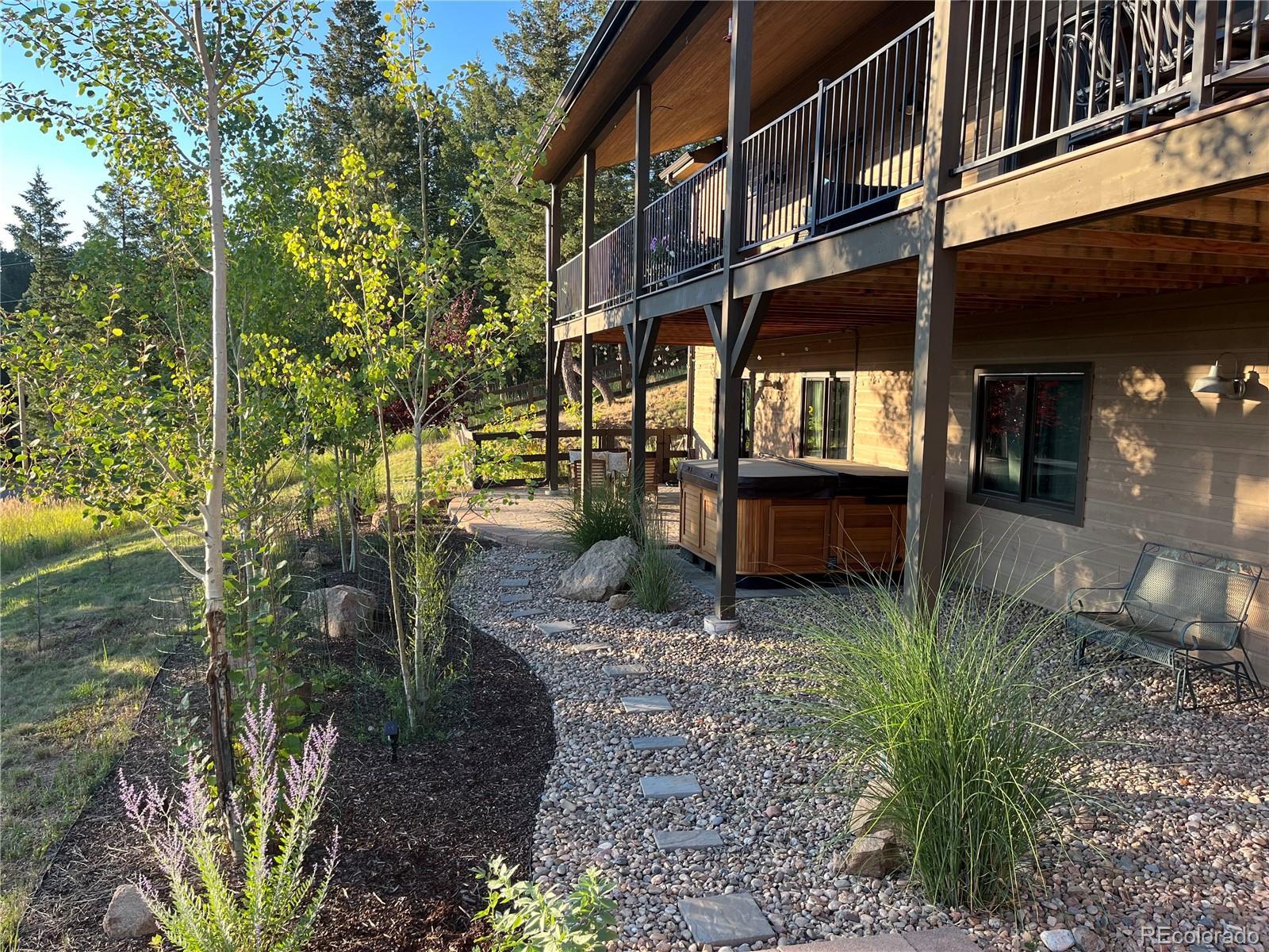 Perfectly perched in the desirable Homestead neighborhood — ideally located between Denver and nearby ski resorts — this exceptional home blends mountain access with everyday convenience. Designed with a highly sought-after main-level living floor plan with a finished walk out basement, built in 2016, the home offers comfort and functionality at every turn. The bright and welcoming main level features a glorious kitchen at the heart of the home — ideal for entertaining and daily living — with generous workspace and seamless flow into the living and dining areas. A thoughtfully designed mudroom and laundry room create a practical transition between the home and the massive three-car garage, which also includes a dog wash station. Plenty of coveted RV parking along the side. Upstairs, you’ll find two spacious bedrooms (one an office) and two bathrooms, providing privacy and separation from the main living areas. Downstairs, the fully finished basement expands your living space with an additional family room, two more bedrooms, and a full bathroom — perfect for guests, multi-generational living, or a private retreat. There’s even an unfinished room ready for future expansion or customized storage, plus a utility/storage room larger than most bedrooms. Step outside to your own private sanctuary. Mature Aspen trees create a peaceful backdrop, separating the yard for added privacy. Enjoy evenings on the view deck, unwind in the hot tub on the lower-level patio, or gather around the fire pit above. A terraced garden along the side of the home adds charm and character, offering space for flowers, herbs, or seasonal plantings. Spacious, versatile, and beautifully positioned — this Homestead gem delivers mountain lifestyle living with room to grow.