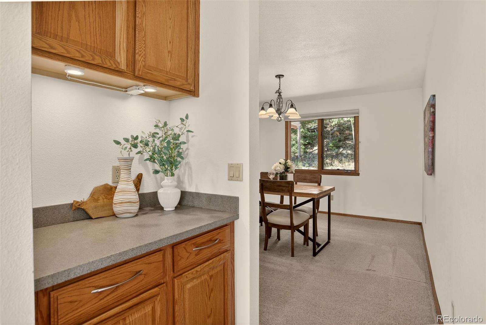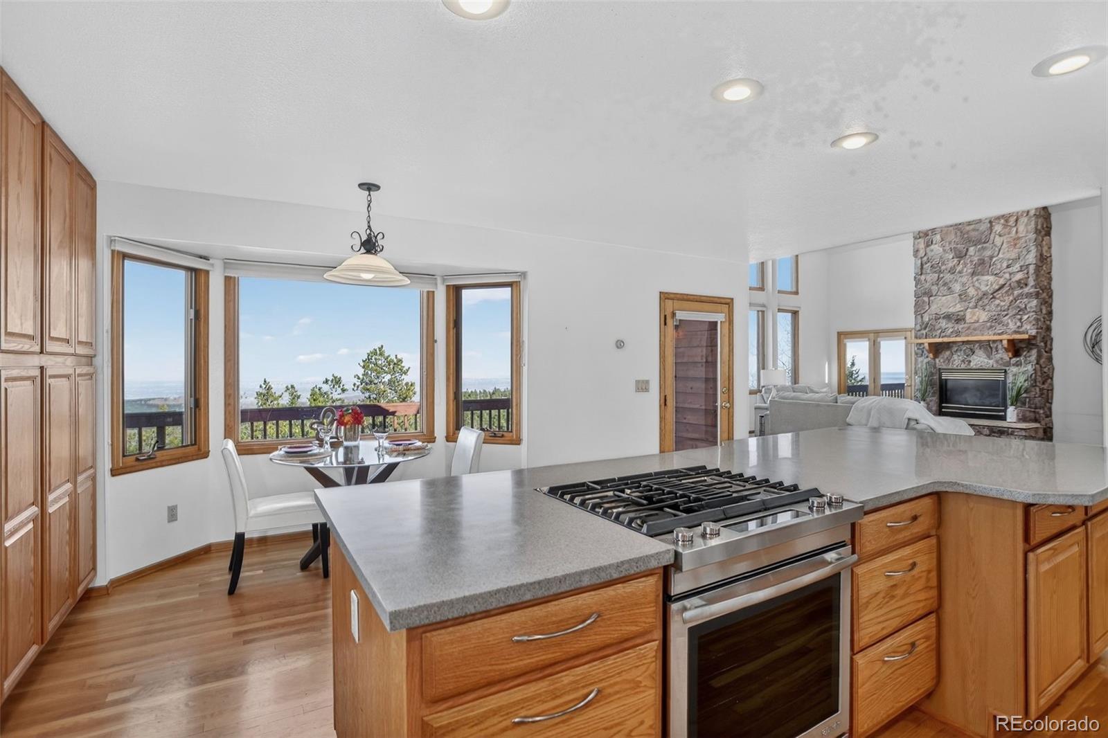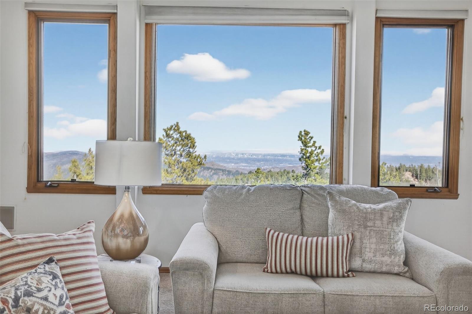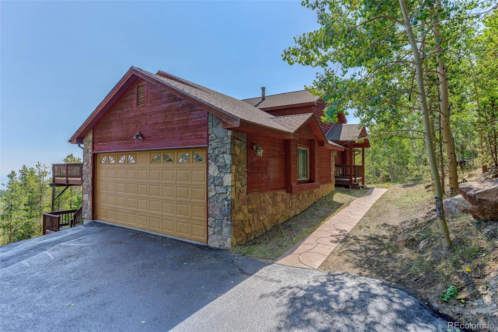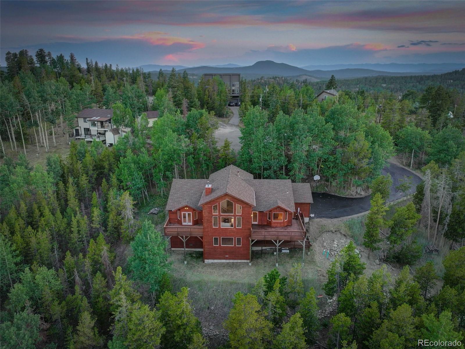 As you enter you'll see views of Denver high-rises and foothills out of the large great room windows. Enjoy horizon sunrise views every morning while you get ready for the start of each new day and city lights ending each day! It only gets better as this home is 100% heated efficiently with in floor radiant heating (Heaven on Earth in winter months) It also captures views of the Continental Divide and city from the kitchen, great room, primary bedroom, basement living room and loft. The tall windows in the great room make it a peaceful place to take in the tranquility of a passing snowstorm with a cozy fire in the gas-log fireplace. This well laid out 5-bedroom mountain home sits on 1.3 acres at the end of a cul-de-sac in Hilldale Pines. The main floor plan allows plenty of room for comfortably gathering and spending time with loved ones. The primary suite with 2 walk-in closets and 5-piece bathroom is located on the main level with the great room, kitchen, dining room, 2nd bedroom, full bathroom and garage access. Two main floor decks for enjoying the fresh mountain air accessible to the kitchen, great room and primary suite. The kitchen has huge island with storage all around, large soft-close drawers and cabinets with pull out drawers, walk-in pantry, hard-surface counters, stainless steel appliances, new sink and faucet, window over the sink, an eating nook with bay window and butler's pantry. A covered front porch provides a reprieve from the elements at the front door. Another living room, 3more bedrooms, a full bath, laundry room and covered deck access complete the basement. The over-sized 2-car garage is insulated & wired for heat, natural light & exterior access door. Exterior stained & driveway resurfaced-August 2025. New main water line, main electrical line, 50-gallon water heater & 5-bedroom septic tank installed 2025! Close to the school bus route for easy access all times of the year. Quick commute to Conifer or Denver! Approx 1-hour commute to DIA.