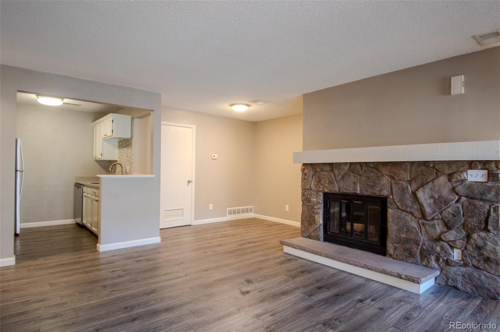 Check out this cute condo in desirable Lochwood Landing. Move-in ready! Step inside and you will find an inviting living room with wide plank flooring, a cozy stone fireplace and access to a covered balcony. Nice dining area, open to the living room. The kitchen has quartz countertops and a stone backsplash. Large bedroom with it's brand new carpet, direct access to the bathroom also has 2 good sized closets. Separate laundry room includes both full size washer and dryer. Brand new hot water heater (2026). One dedicated parking spot (D16). Generous storage on balcony. Stay cool in the summers with central air. This location is unbeatable.....walking distance to King Soopers shopping center with it's shops and restaurants. 10 minutes to Belmar and just minutes to Union Square restaurant scene. Quick access to 6th Ave and C-470. The Main Reservoir is just across the street, Red Rocks Amphitheater is close by as is Bear Creek Park with it's scenic trails. Quiet location with beautifully maintained grounds. Smoke and pet free.
