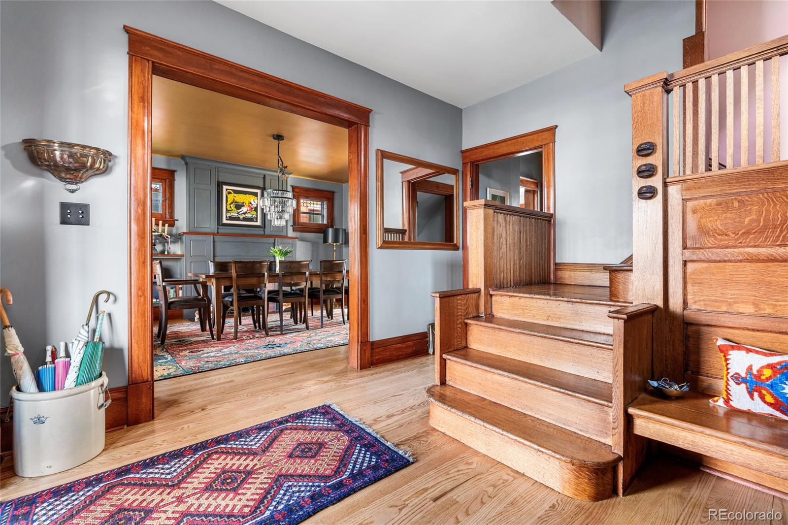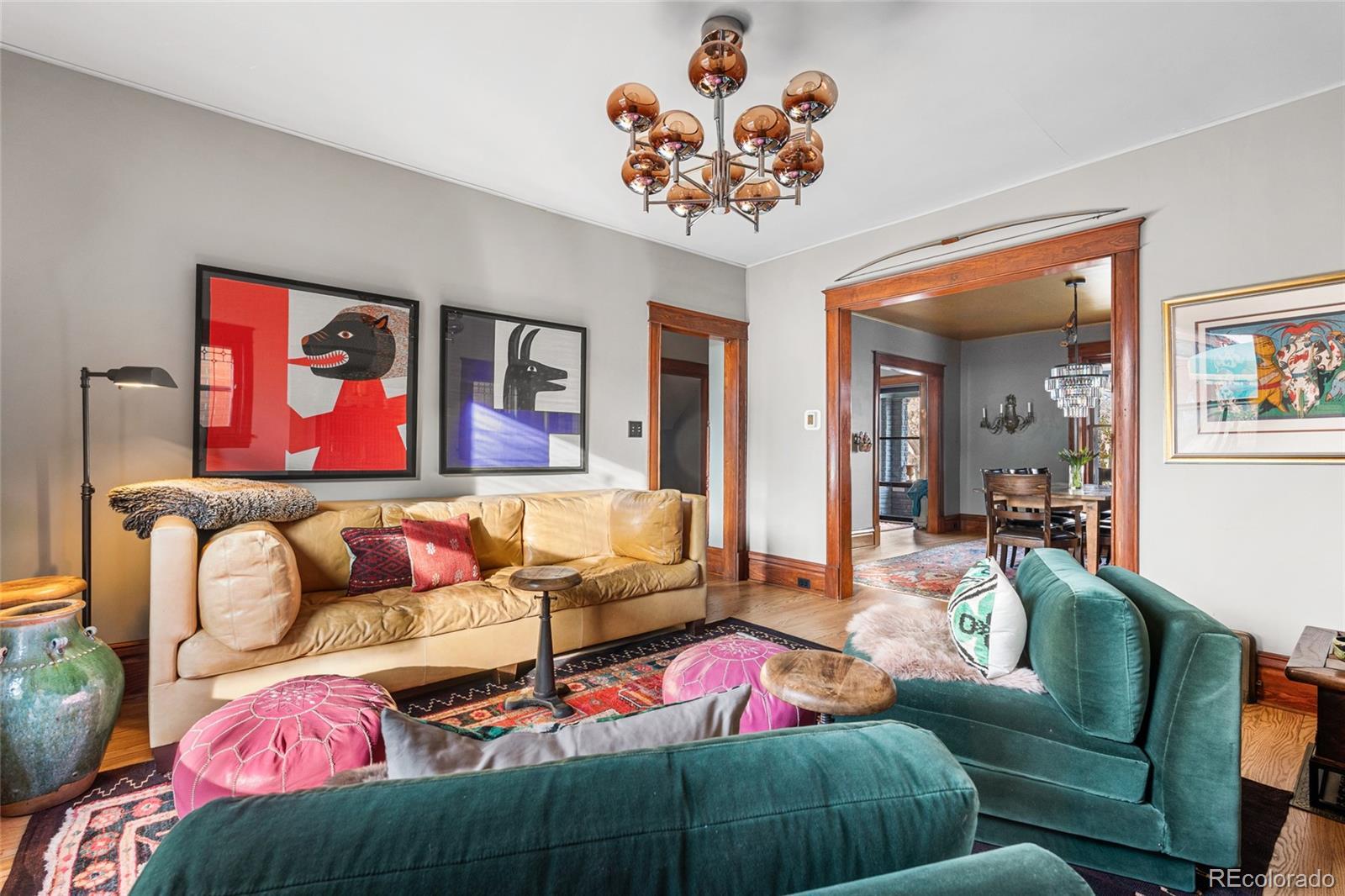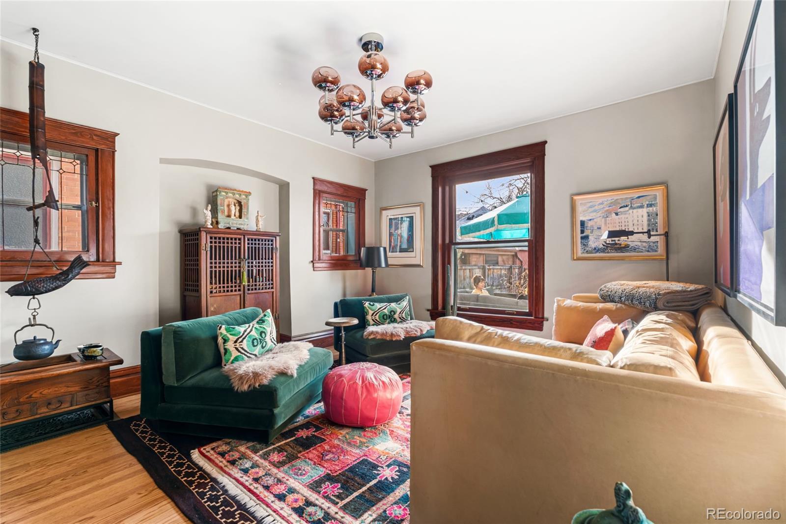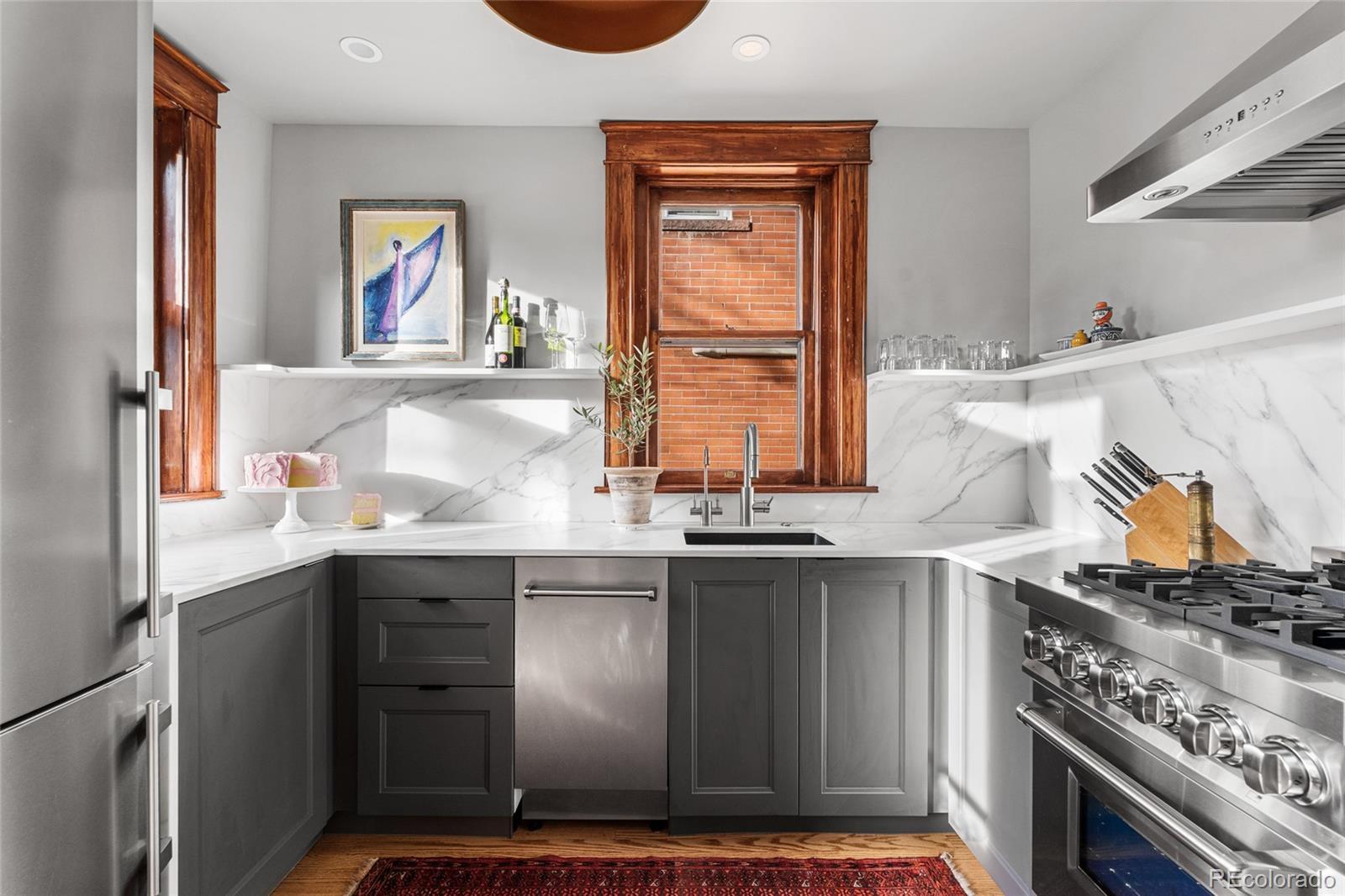 Prime location! This updated Denver Square blends modern improvements with preserved historic character and is set on one of Congress Park’s most desirable blocks, featuring a tranquil, Zen-inspired garden yard. The first and second levels showcase original craftsmanship, including rich woodwork, a gracious entry and staircase, hardwood floors, built-ins, and classic trim and window casings. Leaded and stained-glass windows add architectural interest, while the living space features a custom-built fireplace finished in Cle tile. The kitchen was fully redesigned in 2024 with an efficient layout, offering new cabinetry and shelving, double drawers, a gas range, quartz countertops, an instant hot water faucet with filtration, and an antique pantry piece. Upstairs, the primary suite includes a well-appointed en-suite bath with a vintage soaking tub, walk-in shower, custom Cle tile, and high-end fixtures. Two additional bedrooms share an updated full bath. The basement level offers a built-in office area, a newly finished non-conforming flex room, and ample storage. System upgrades include a new Class 4 impact-resistant roof installed January 2026, a Bosch heat pump and furnace combination, updated plumbing and electrical with a new panel, tuckpointing, and new landscaping and deck. The outdoor space includes gardens, plantings, paths, ponds, ambient lighting, drip irrigation, and multiple seating areas. Three off-street parking spaces are included, with the seller currently renting a garage across the alley, and the property offers sufficient space near parking to accommodate a custom two-car garage. Walkable to shops and dining at 12th & Madison and 12th & Elizabeth, Sprouts, the Colfax corridor, The Bluebird Theater, City Park, Congress Park, the Denver Botanic Gardens, 9th & Co, and Cherry Creek. Served by Teller Elementary and East High School.