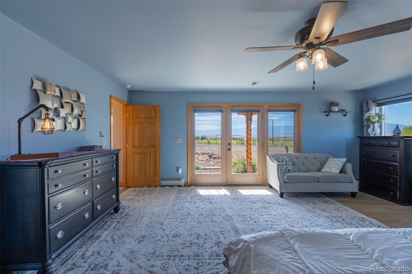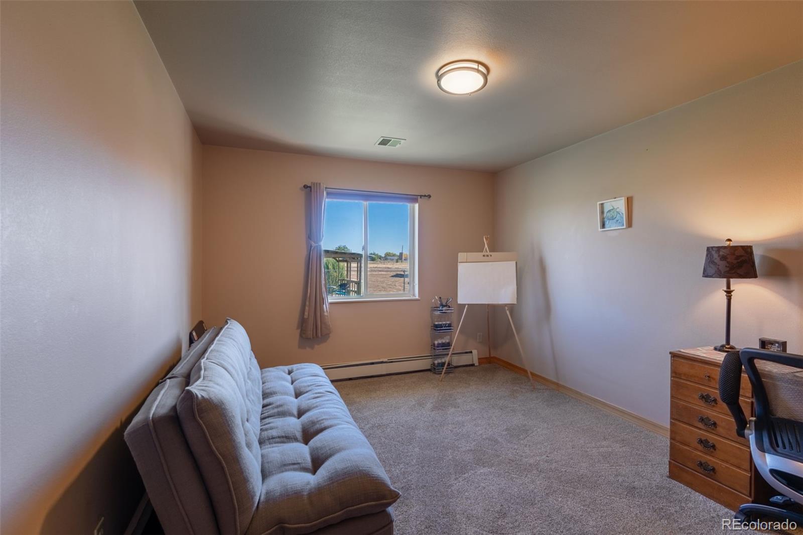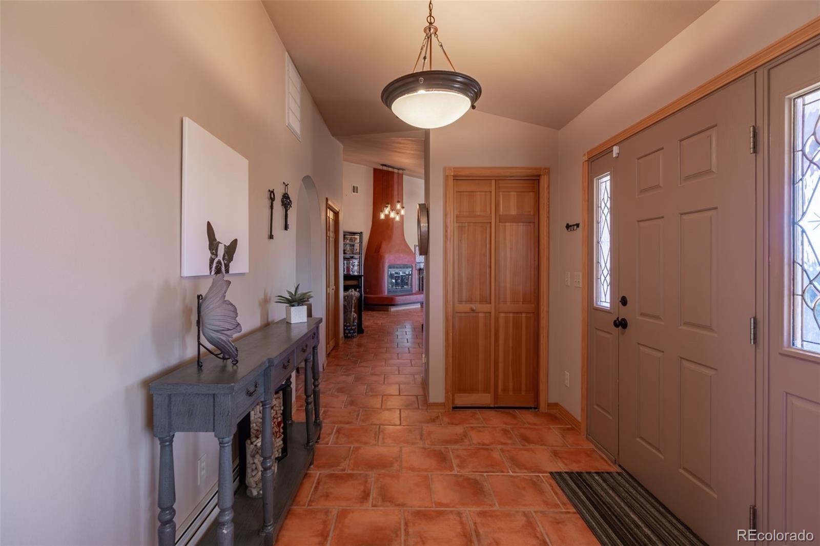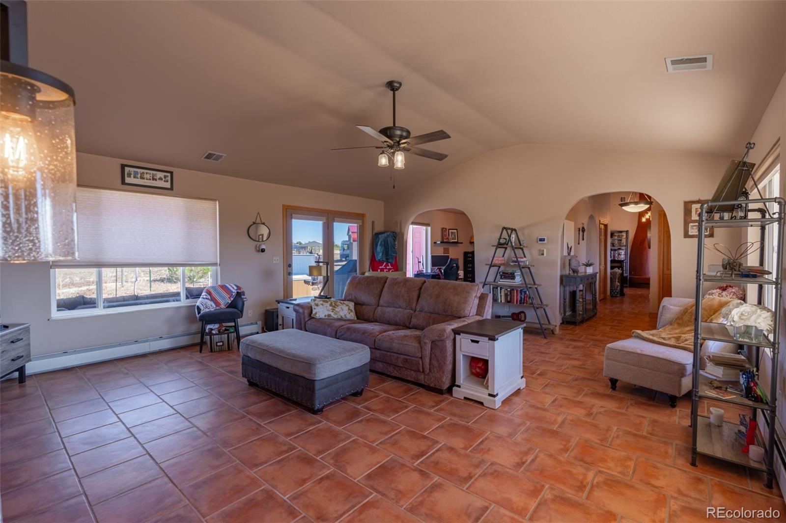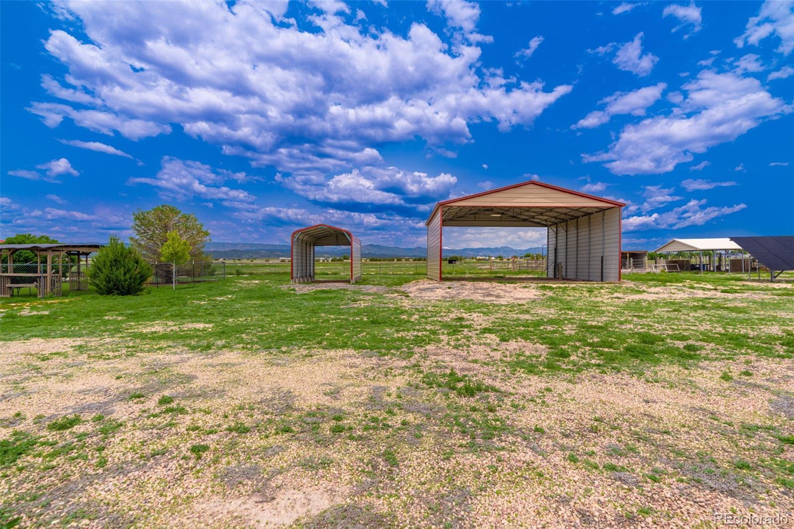 Set on 20 picturesque acres, this 3,175 SQFT ranch home blends luxury with country charm, complete with 16 shares of Beaver Park ditch. Designed for both entertaining and everyday comfort, the home offers 4 spacious bedrooms, 2 bathrooms, a designated office space and a gourmet kitchen featuring pine cabinetry, generous countertops, a central island with gas stove, and fireplace. Relax by the inviting Taos-style kiva fireplace located in the living room where you can enjoy the mountain views from each side of the living room. The primary suite offers large windows to let in natural light along with a french door to access the front covered patio where you can take in the mountain views. Unwind in the primary suite's luxurious 5-piece bath which features an oversized double vanity, soaker tub with expansive window to peak at Pikes Peak, oversized walk-in shower and private toilet room. Don't forget the large walk-in closet that accompanies the primary suite. Their is a convenient mudroom leading to the oversized finished 3-car garage and access to the fenced backyard featuring turf and pergola. Outside, discover a rancher's paradise with fully cross-fenced pastures ideal for rotating livestock, a 6-stall horse barn with comfortable living quarters including a convenient ¾ bath with access to the interior of the barn where you will find power and water for your animals and a custom built storage wall. The remainder of the property includes 4 loafing sheds, and 4 carports—one specifically designed for RV storage with 120 & 240 electric and water hookups. 5 water spigots make for easier watering for animals and additional electrical outlets can be found across the property. Take in breathtaking 360-degree panoramic views of the Arkansas River Valley and Pikes Peak from your back patio. This home truly represents country living at its finest!