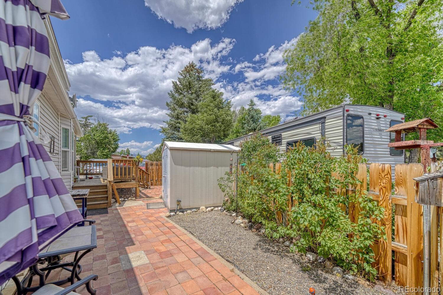 Cozy Champion Park Model in Scenic Chateau Chaparral – Riverfront Community! Nestled in the beautiful Chateau Chaparral community in Nathrop, CO, this charming home offers the perfect blend of comfort, functionality, and natural beauty. Featuring 1 bedroom and 1 full bathroom, this thoughtfully designed home boasts abundant windows for natural light, built-in storage throughout, and a built-in radio in the living room for added convenience. Enjoy your morning coffee on the patio surrounded by mature landscaping, including a peach tree and fragrant lilac bushes. A private shed provides extra storage for your gear or tools. Located in a riverfront community with stunning mountain views, residents enjoy access to a community clubhouse, coin laundry, park, playground, river access and scenic hiking trails just steps from your door. Whether you're looking for a full-time residence, weekend getaway, or long term rental, this tranquil retreat offers peaceful living in the heart of Colorado's natural beauty located between the resort towns of Buena Vista and Salida, CO. Take advantage of the many outdoor activities, in the area, includeing white water rafting, kayaking, mountain biking, hiking, skiing and hot springs. Don’t miss out on this rare opportunity!