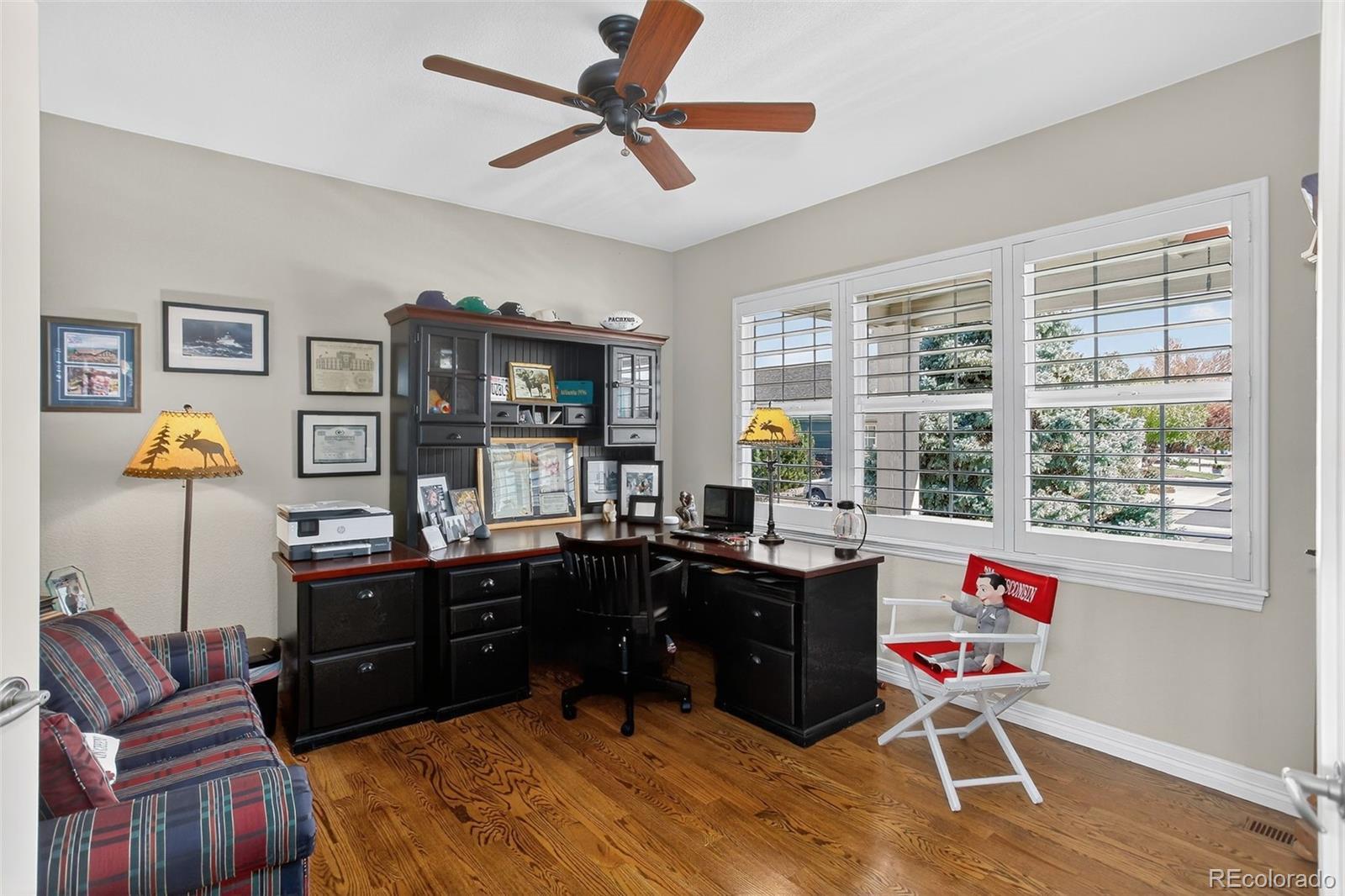 Absolutely Amazing Golf Course Location and Stunning Multiple Fairway Views! The beautiful 2 bedroom home with an office is located in the 55+ Heritage Todd Creek neighborhood situated behind the 2nd Hole Tee with views of both entire 1st and 2nd holes. Enter the home to beautiful hardwood floors throughout the entire main level. The floor plan is magnificently open with the kitchen, dining, and family rooms all adjoining and open to one another. All rooms have golf course views and the large family room features a warm and inviting fireplace and mantel. There is a wonderful bonus "Hearth" room off the kitchen that is perfect for reading, gaming, TV, or even a formal dining area. It even features it's own fireplace! The front of the home off the entry delivers a large french door entry office. The Primary Bedroom has a tray ceiling and beautiful golf course views and attaches to a 5 piece primary bath. There is a large 2nd bedroom with a walk in closet and full 2nd bath in the hallway. All windows throughout the main level are beautifully finished with White Plantation Shutters. Love the outdoors? The nicely landscaped back yard flows out to the golf course with amazing views delivered from the yard and oversized covered back deck. Just Stunning Views! Finally the basement is unfinished and ready for your design and imagination to create whatever additional living space your may desire. Come see this beautiful home in this really wonderful 55+ community offering a great Golf Course, a Clubhouse with fantastic restaurant and bar, and 2 pools (indoor and outside). There are clubs galore to explore, a billiards room, yoga and dance classes, library, and ballroom all for your use and enjoyment.
