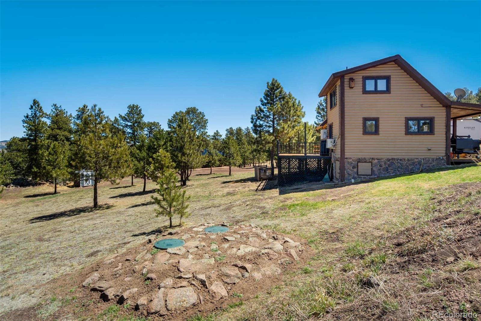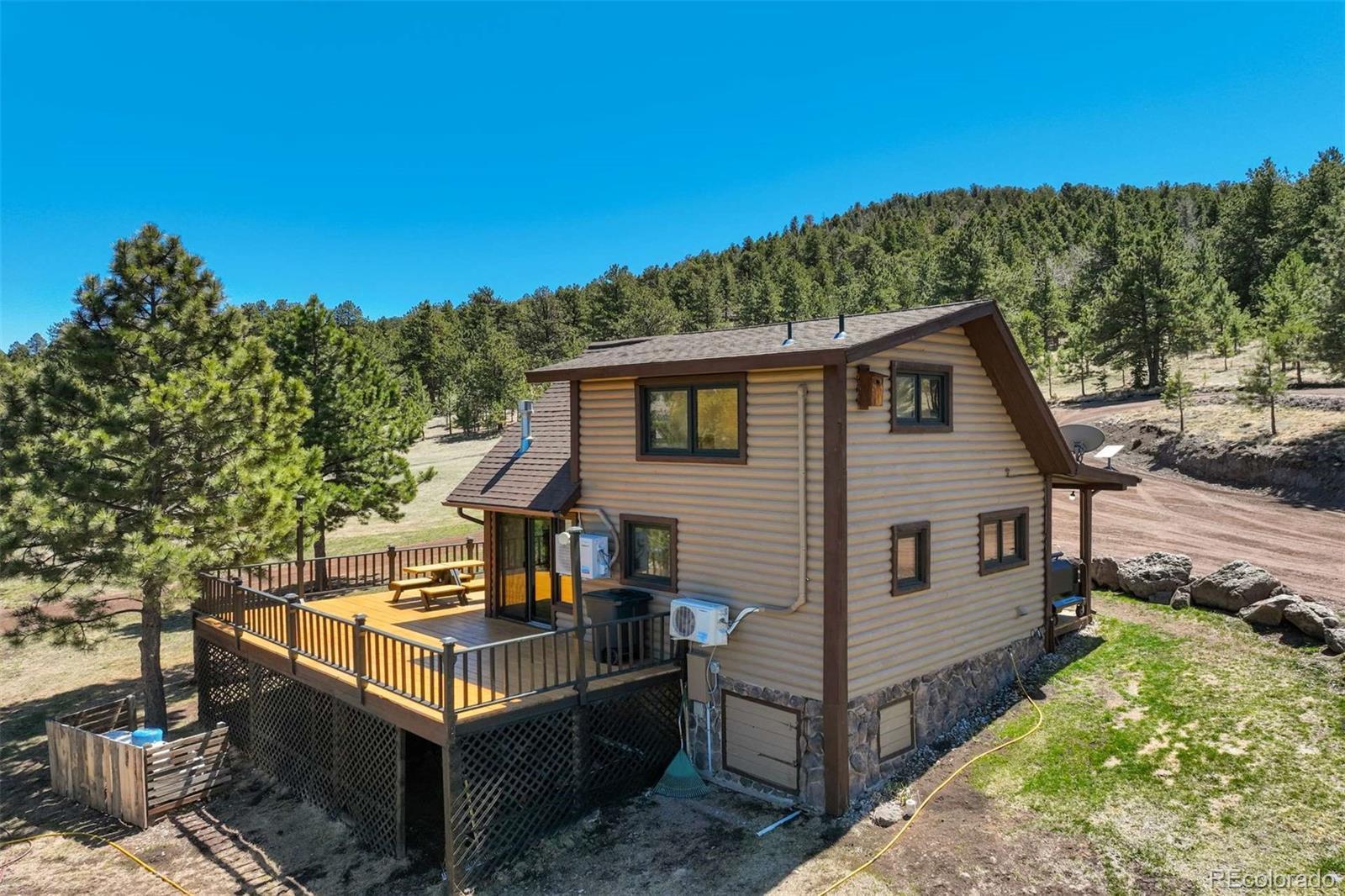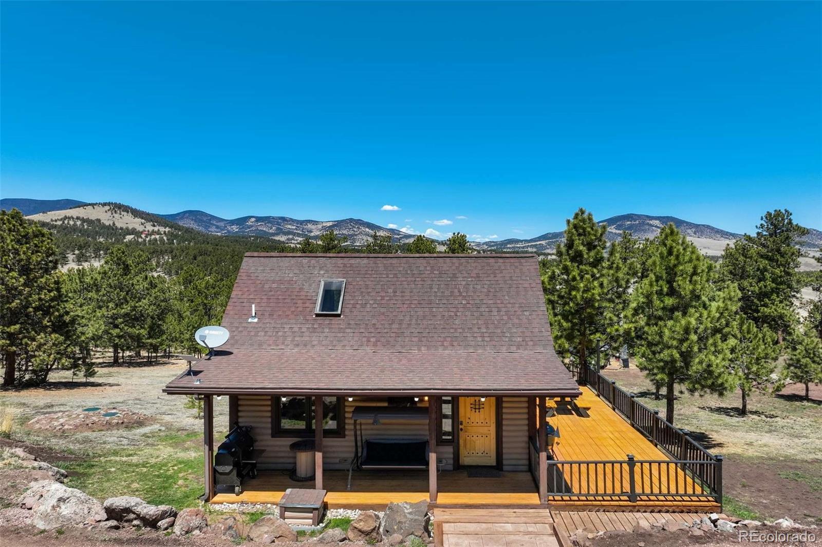 Welcome to Guffey, where our mountain properties are as unique and lovely as our folks! This private 10.8-acre escape showcases gently rolling terrain with mature pine stands, grassy meadow, RV parking, and a turn-around driveway for easy access. The property includes a 730 ft² 1.5-story primary residence and a fully furnished 882 ft² guest quarters, each equipped with dual Pioneer Mini Split systems for year-round comfort. The main home features an open loft bedroom, soaring wood-framed windows, Austrian oak floors, a propane stove, and over 790 ft² of new decking for relaxing or entertaining. The kitchen offers a high-performance stainless gas range, leathered granite counters, granite sink with sensor faucet, and a pantry/laundry room with cabinetry. The guest quarters boast vaulted ceilings, exposed beams, custom acacia floors, a wood stove, and a wraparound deck with unobstructed views. Its kitchen includes granite counters, maple cabinets, a ZLINE gas range with electric oven, and an island with storage and bar seating. The private bedroom is paired with a stackable laundry area, while the ensuite bathroom offers a soaking tub and sleek finishes. Elsewhere on the property is an insulated, productive chicken coop with enclosed yard and an oversized 30 x 40 heated garage featuring concrete aprons and covered side entrances. Ideal for work or leisure, the garage includes 220V power for tools or EV charging, a mezzanine with built-in workbenches, and an office with cabinets and separate exterior access. Tucked just off paved CR-102 near Hwy 9 and an hour west of Colorado Springs, this peaceful location offers year-round access to Divide, Woodland Park, Florissant, and Cripple Creek for dining, shopping, and entertainment. With Mueller State Park, Pike National Forest, the South Platte River, and Eleven Mile Reservoir nearby, you’ll find world-class hunting, hiking, rafting, fishing, and more at your fingertips! Additional photos, 3D tours, and documents available.