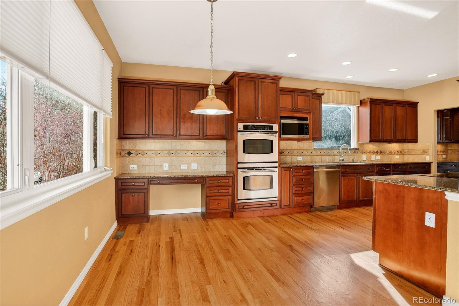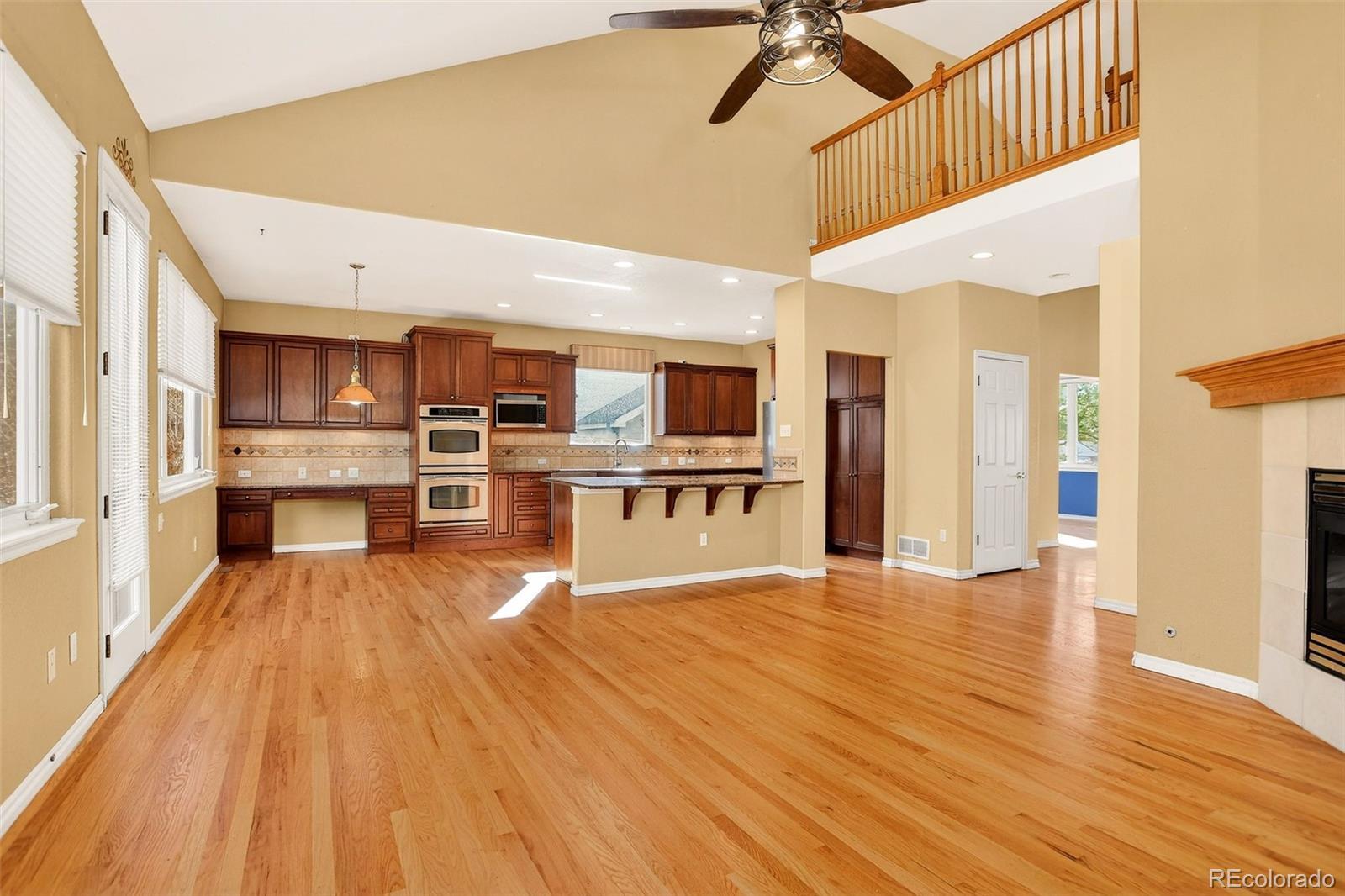 Welcome to Cheyenne Ridge, this approximately 4,000 square foot house features five bedrooms and four bathrooms. The main level offers a spacious living room, family room, dining area, and kitchen. The kitchen is equipped with modern appliances and ample Granite counter space, ideal for meal preparation. The primary bedroom suite is situated on the main level and includes a private bathroom. There are 3 other bedrooms upstairs with a bathroom. and there is bedroom and bath in the basement. The basement has a very large family room with a fireplace, wet bar and separate office space with built in bookshelves. The backyard has garden boxes, an apple tree, Gooseberry, rhubarb and currant bushes. There is a community park and playground right around the corner, and you are close to Orchard Town Center, Restaurants, Shopping and Grocery Stores. Come see your new home today.