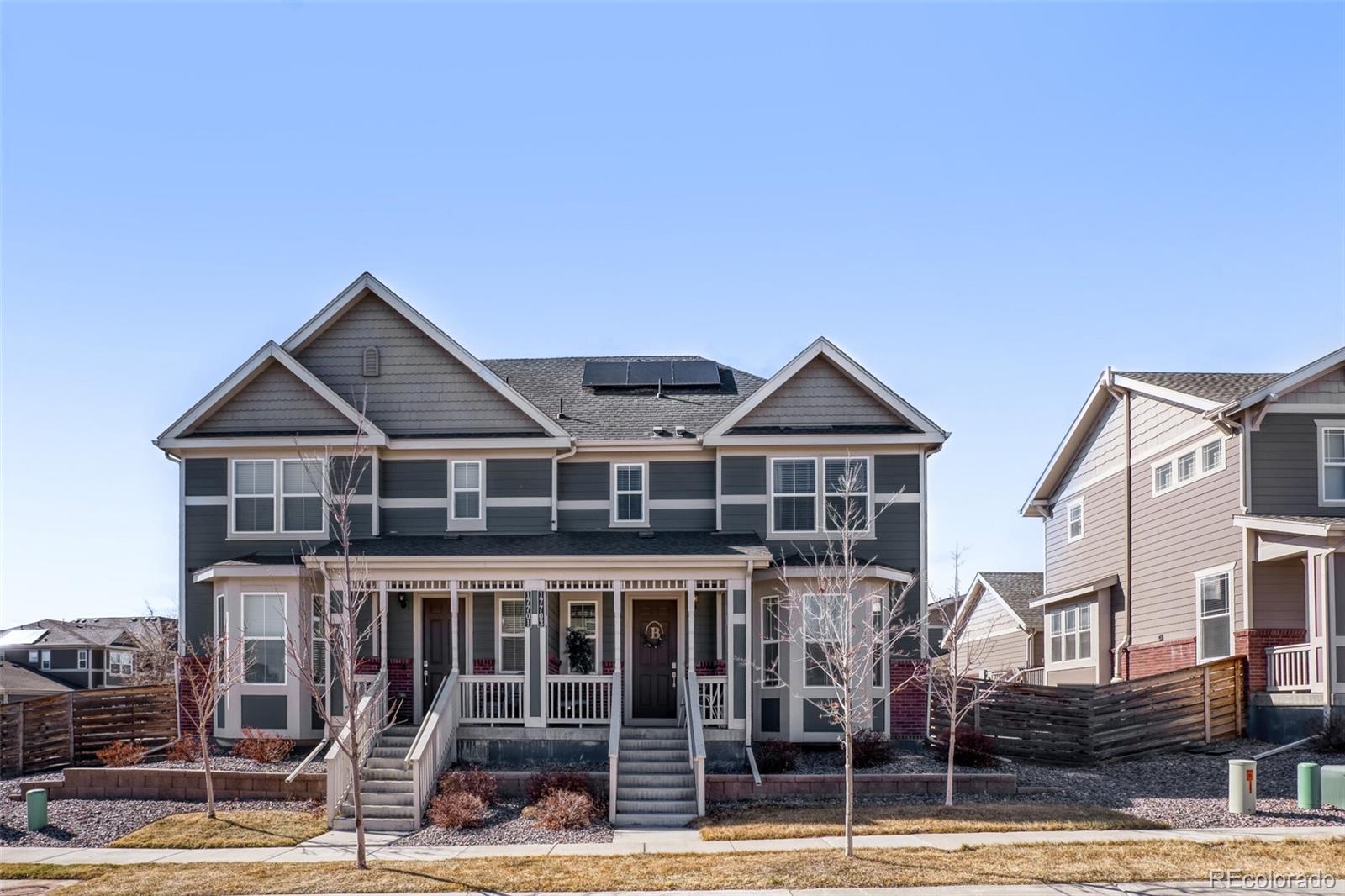 Meticulously maintained and beautifully appointed, this LIKE NEW paired home in highly sought after Palisade Park offers modern living at its finest. The main level features a bright, open floor plan that seamlessly connects the great room, dining area, and kitchen, with sliding glass doors opening to a private deck—ideal for relaxing or entertaining. The stylish kitchen is equipped with granite countertops, stainless steel appliances, and a gas range. Luxury vinyl plank flooring extends throughout the main level, creating a clean, cohesive look. Upstairs, you’ll find two spacious bedrooms along with a versatile loft—perfect as a home office, playroom, workout area, or additional lounge space. The primary suite includes a private bath and walk in closet for added comfort. The unfinished basement is plumbed in and ready for your future vision, offering excellent potential for added living space. Additional highlights include energy efficient solar panels, a low maintenance yard, a low HOA, and a 2 car attached garage. Perfectly located just minutes from I 25, E 470, and Highway 7, this home offers easy access to Denver and Boulder. You’re also close to Orchard Town Center, Larkridge Shopping Center, Colorado National Golf Club, Topgolf, and Children’s Hospital—putting convenience, recreation, and amenities right at your fingertips.