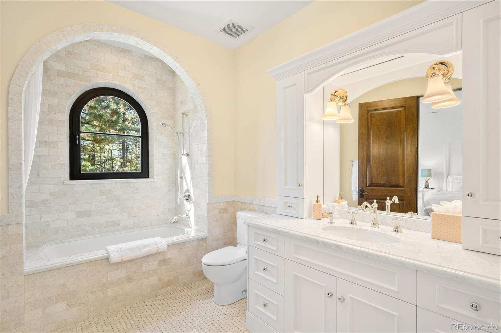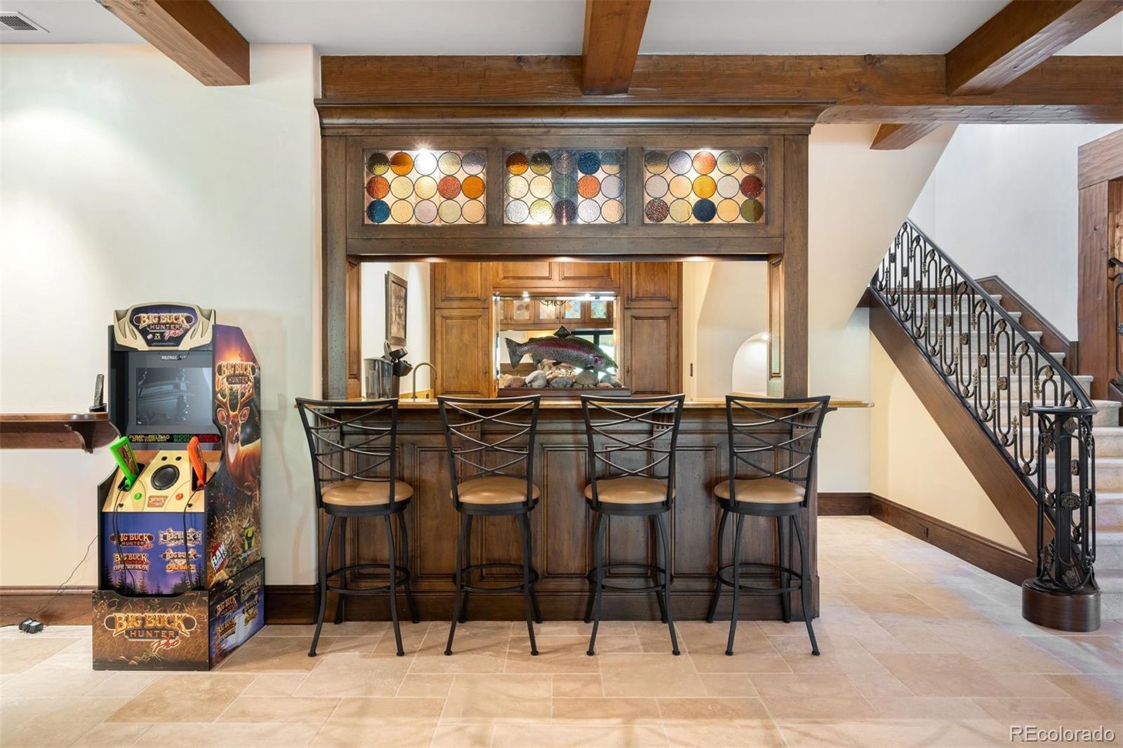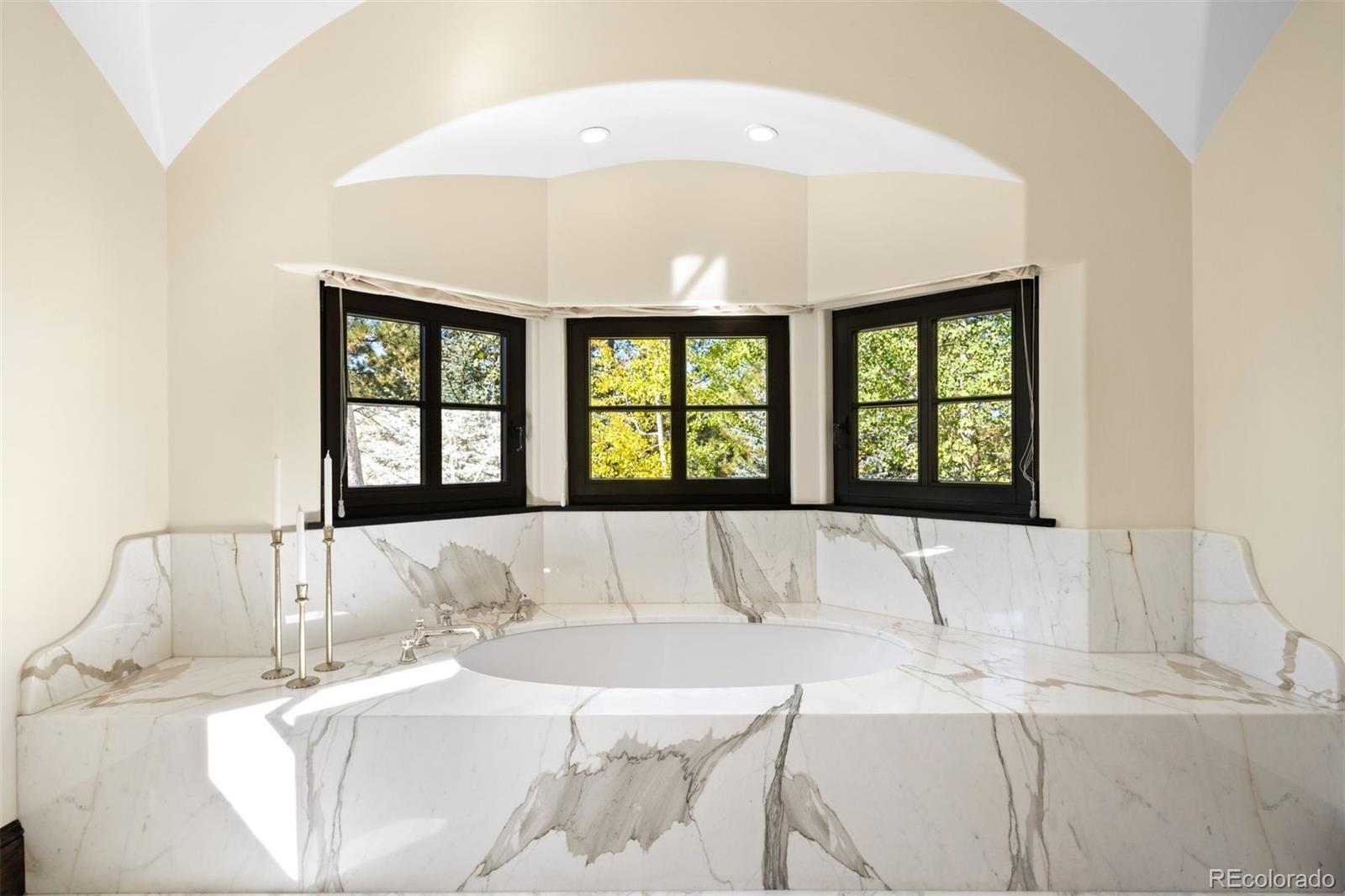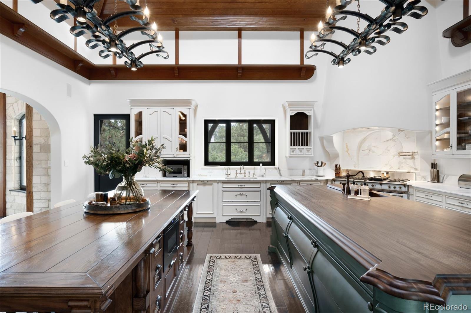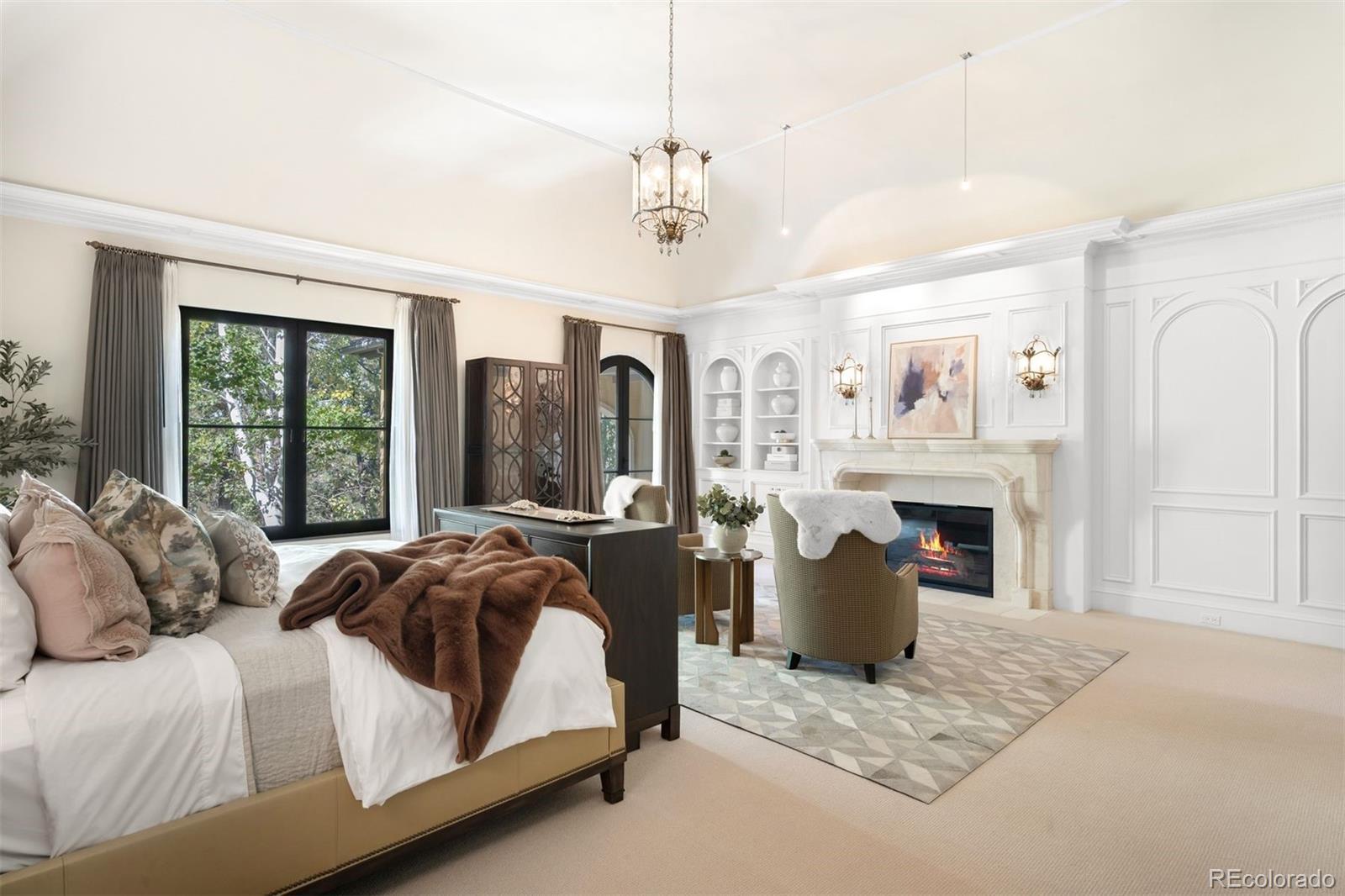 Perched along the 8th green of the exclusive Castle Pines Golf Course, One Elk Pointe embodies timeless sophistication andEuropean-inspired living. A graceful stone bridge and porte-cochère lead you to this elegant estate, where every detail hasbeen curated for those who appreciate craftsmanship, comfort, and quiet grandeur. Inside, sunlight spills across soaringceilings, exposed beams, and hand-laid tile floors. Walls of glass frame sweeping golf course and mountain vistas, creating a seamless connection between indoor elegance and outdoor serenity. At the heart of the home, an exceptional chef’s kitchen delights with dual islands, a farmhouse sink, and top-tier appliances from Sub-Zero, Wolf, La Cornue, and Thermador. A hidden refrigerator, butler’s pantry, and wine area enhance the home’s effortless luxury, while a cozy hearthdining room invites intimate gatherings beneath cathedral ceilings. The formal living and dining rooms span 36 feet, anchored by twin limestone fireplaces and opening to an expansive upper deck where a stone fireplace and treetop views offer an enchanting backdrop for evening soirées. The main-floor primary suite defines refined tranquility—featuring a limestone fireplace, spa-inspired bath, dual vanities, soaking tub, and two custom closets. Two exquisite offices and a marble-topped mudroom blend practicality with polish. The lower level is designed for leisure and connection, offering a full bar, spacious entertaining area, gym with steam shower, and three en-suite bedrooms. Outdoors, multiple terraces invite alfresco living—a see-through fireplace, built-in grill, fire pit, and sunken hot tub all set against the dramatic beautyof Castle Pines. A rare harmony of European elegance and Colorado majesty, One Elk Pointe is more than a residence—it’sa lifestyle without compromise.
