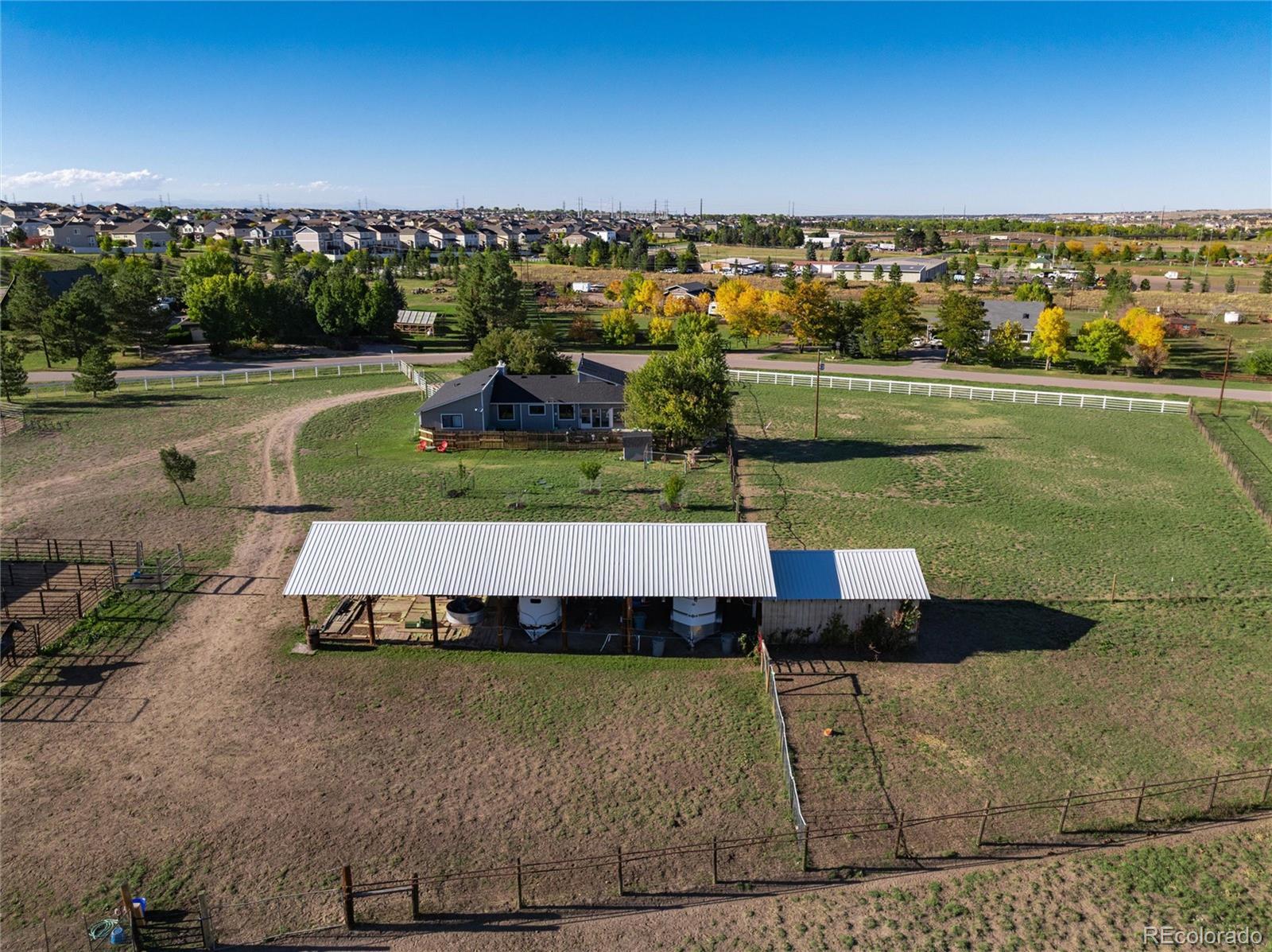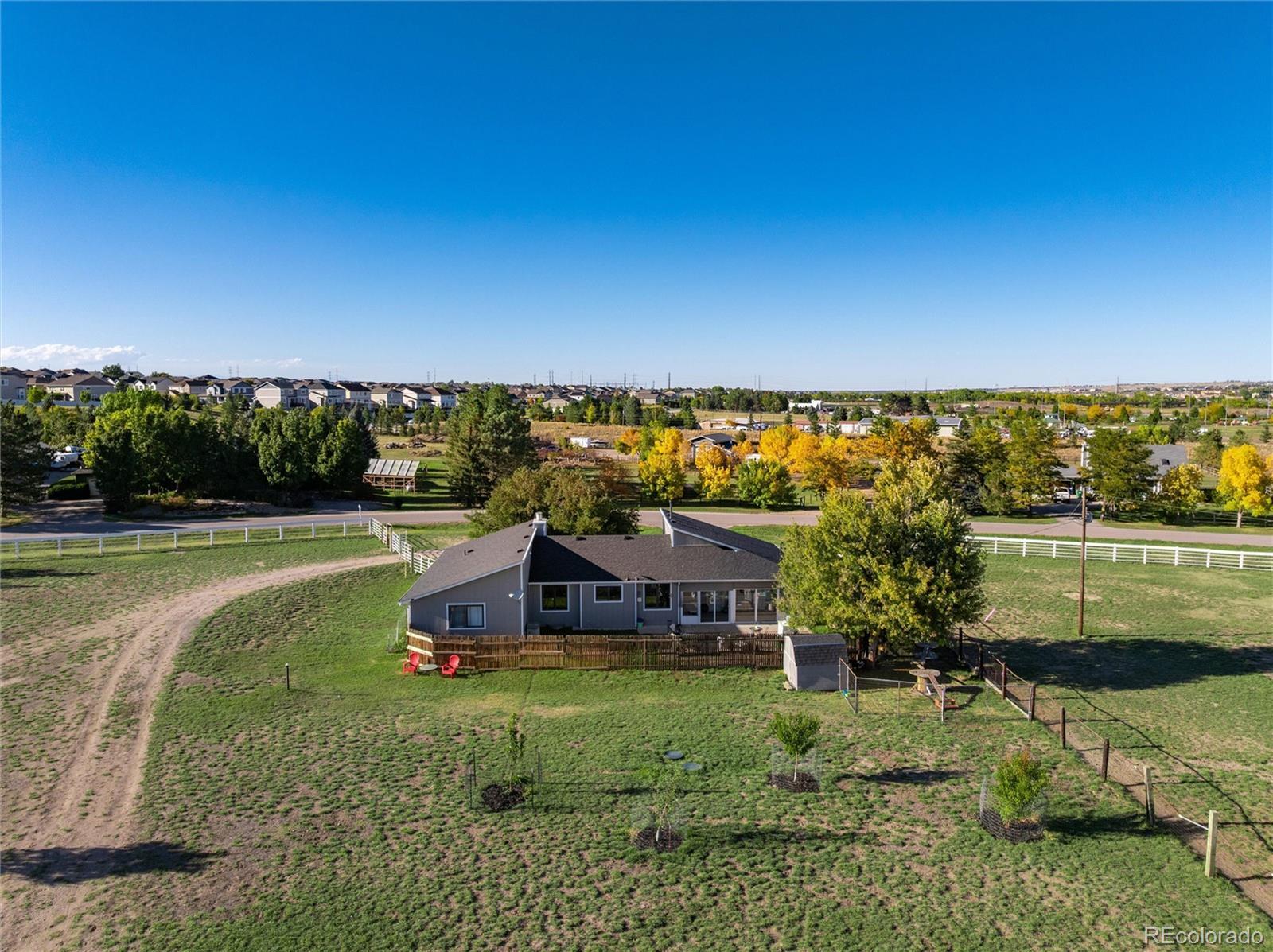 Exceptional 3.7-Acre Equestrian Estate in Parker, Colorado. Ride-In, Relaxed, and Ready. Welcome to your dream horse property, where equestrian function, modern comfort, and country living all come together on 3.7 fully fenced acres just minutes from downtown Parker. Designed with the casual and serious rider in mind, the property features a charming 6-stall barn with 4 stalls offering individual runs, plus a dedicated feed and tack room, and wash rack. Max 7 horses allowed. 4 pastures with shelters provide plenty of turnout space, and you can ride directly from the property to neighborhood bridle paths, Salisbury Equestrian Park, and miles of trails along Cherry Creek. A massive 75 x 30 pole barn with shop offers generous storage for farm equipment, horse trailers, feed, or even workshop space, perfect for hobby farming, small-scale homesteading, or storing recreational toys. At the heart of the estate is a beautifully remodeled three-bedroom, two-bath home that combines rustic charm with updated, modern finishes. Inside, you’ll find an open-concept layout, natural light throughout, and spaces designed for comfort and entertaining, ideal after a day in the saddle. Whether you're an equestrian enthusiast, or someone dreaming of a self-sustaining lifestyle with room to grow, this property delivers unmatched versatility, location, and quality. With no HOA, ride-out access, and every feature in place, this is a rare opportunity to live in one of Parker’s most complete horse properties. Come see what life can look like when passion meets property. Schedule your private tour today. Experience all that this extraordinary property has to offer!