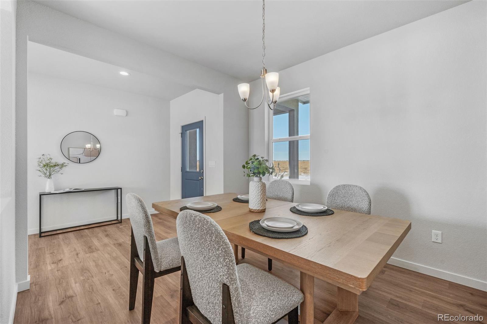 Experience modern Calhan living in this spacious 3-bedroom, 2-bath ranch-style home sitting on 35 acres of land. With 1,904 sqft of thoughtfully designed living space, this fully electric home blends energy efficiency with elegant finishes. Enjoy 9-foot ceilings and an open-concept kitchen and dining combo that’s perfect for entertaining or family gatherings. The kitchen features granite countertops, a large island, GE appliances, and a sleek design that flows seamlessly into the dining area. Luxury vinyl flooring and soft carpet throughout the home create a comfortable and stylish atmosphere. The master suite offers a luxurious 5-piece bath complete with a soaking tub and walk-in shower for the perfect retreat. With a 3-car garage, durable stucco exterior, and peaceful Calhan surroundings, this home offers the ideal mix of space, comfort, and style — built to deliver lasting quality and everyday convenience.