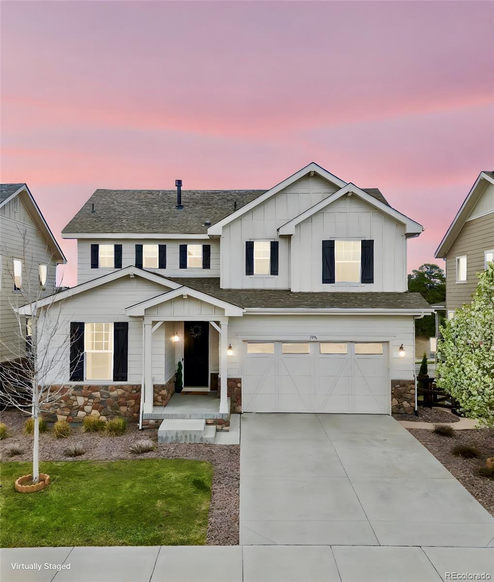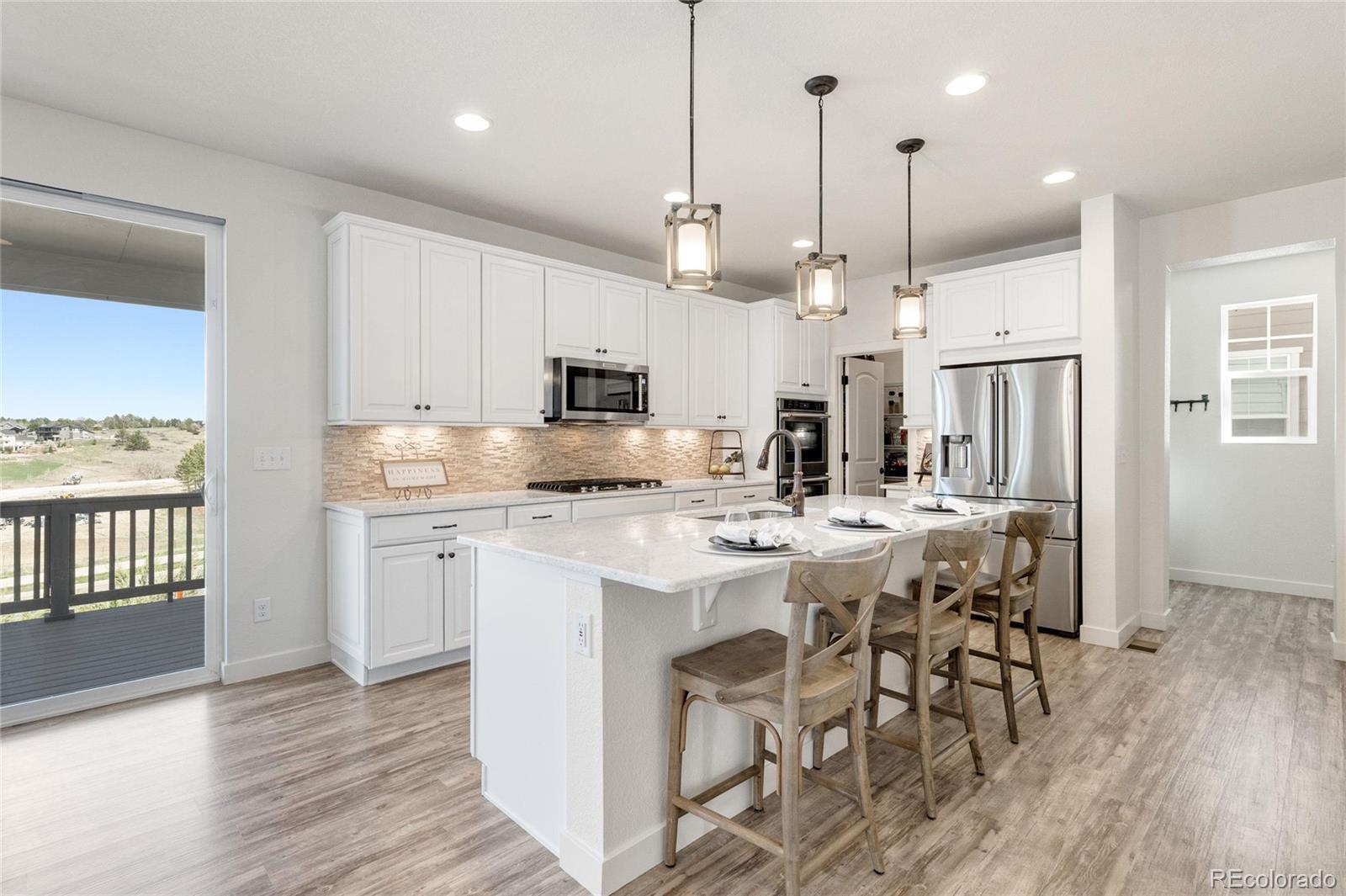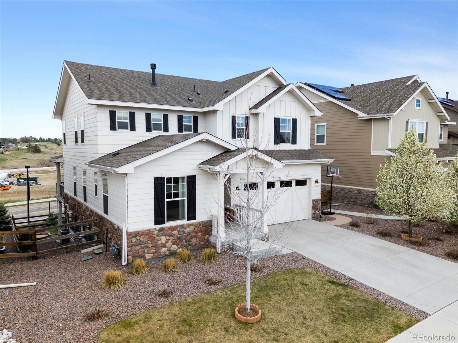 MOTIVATED SELLER, QUICK MOVE IN! The most beautiful house for this price in the area!! Charm and traditional elegance found in this gorgeous gem STUDY•LOFT •FINISHED BASEMENT . The generous floorplan and thoughtful layout boasts 4 spacious bedrooms, 4 well appointed bathrooms and a stunning walkout finished basement with custom bar. This home has all the upgrades, including a central vacuum system, soft close cabinets, and Kitchen Aid appliance package. Upon entering sparkling hardwood flooring throughout greets your arrival. A functional main level features dedicated study perfect for work from home, family room adorned by gas fireplace, dining area and owners entry. Chefs will delight in the gleaming gourmet kitchen with double wall oven, gas range, generous quartz island, soft close cabinets, and a dream walk-in pantry. Upstairs a gigantic loft, perfect hangout spot and the upstairs laundry room, conveniently located! Escape to the bright and airy primary suite, and the 5 piece spa-like bathroom with walk in closet and private toilet. Entertain to perfection in the finished walkout basement with custom wet bar featuring modern finishes, and ample additional living and theater. Additionally, a full hall bath with gleaming euro walk-in shower and a large bedroom in the basement perfect for multi generation living or guests! Custom barn doors keep a fabulous finished storage space or bonus area. Outdoor living at its finest in the backyard with a custom wood-burning fire pit, stamped concrete patio entertaining space and cafe string light set up (included) to enjoy those amazing Colorado nights. Steps away from the community park and miles of picturesque walking trails/biking trails. Located in the highly rated Cherry Creek School District just minutes away from area elementary, middle, and high schools! Minutes to Southlands mall and entertainment district and quick access to E470 for DIA (25 minutes) DTC, and Denver. Washer and Dryer included! WELCOME HOME