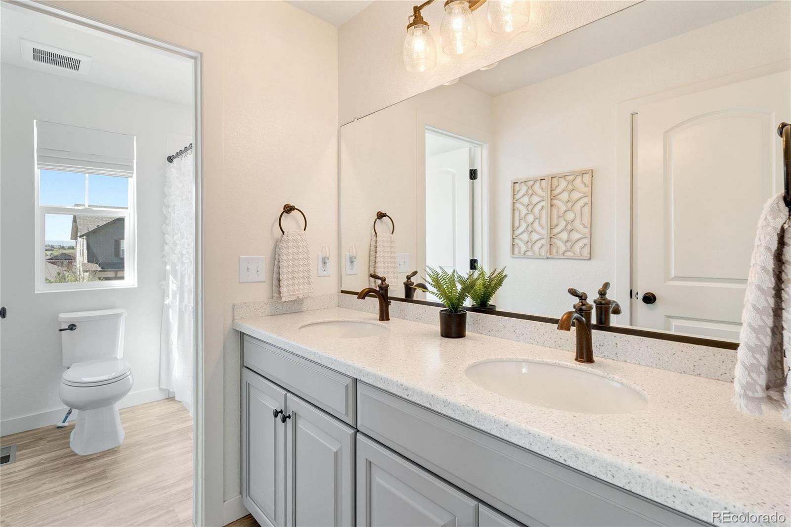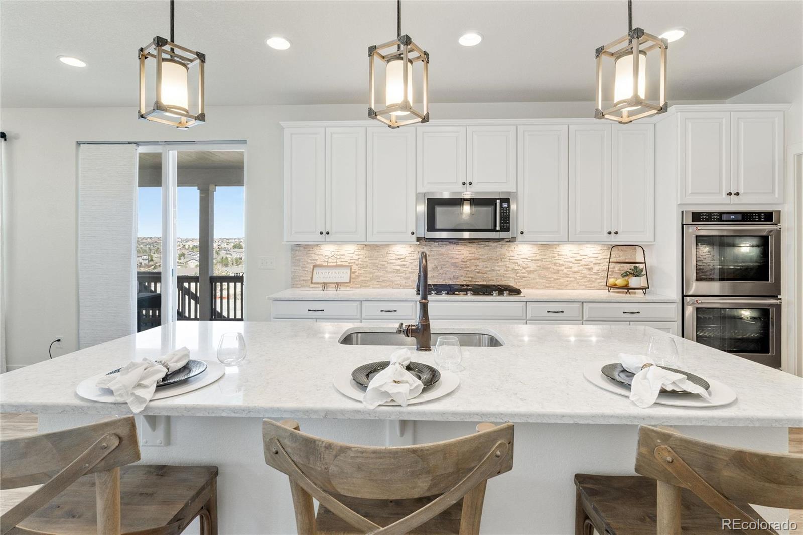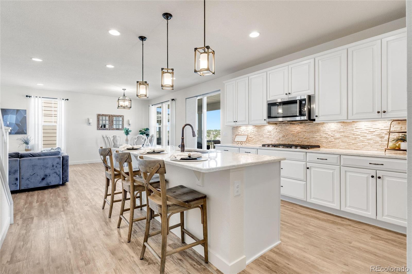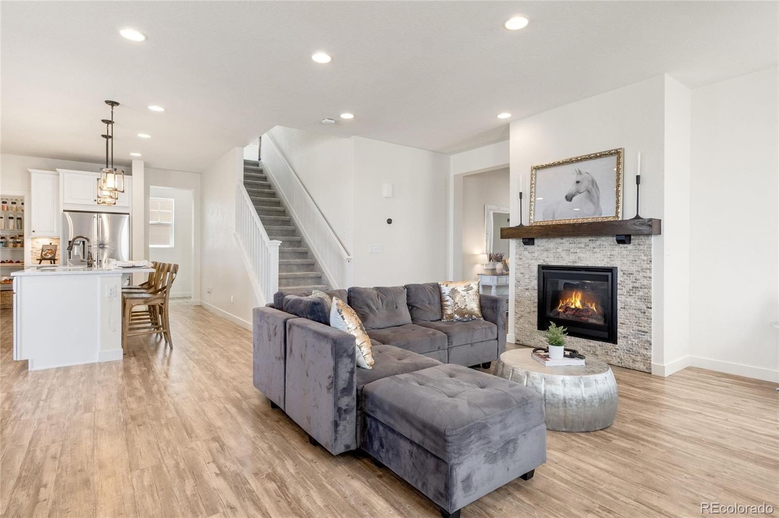 MOTIVATED SELLER, QUICK MOVE IN! The most beautiful house for this price in the area!! Charm and traditional elegance found in this gorgeous gem STUDY•LOFT •FINISHED BASEMENT . The generous floorplan and thoughtful layout boasts 4 spacious bedrooms, 4 well appointed bathrooms and a stunning walkout finished basement with custom bar. This home has all the upgrades, including a central vacuum system, soft close cabinets, and Kitchen Aid appliance package. Upon entering sparkling hardwood flooring throughout greets your arrival. A functional main level features dedicated study perfect for work from home, family room adorned by gas fireplace, dining area and owners entry. Chefs will delight in the gleaming gourmet kitchen with double wall oven, gas range, generous quartz island, soft close cabinets, and a dream walk-in pantry. Upstairs a gigantic loft, perfect hangout spot and the upstairs laundry room, conveniently located! Escape to the bright and airy primary suite, and the 5 piece spa-like bathroom with walk in closet and private toilet. Entertain to perfection in the finished walkout basement with custom wet bar featuring modern finishes, and ample additional living and theater. Additionally, a full hall bath with gleaming euro walk-in shower and a large bedroom in the basement perfect for multi generation living or guests! Custom barn doors keep a fabulous finished storage space or bonus area. Outdoor living at its finest in the backyard with a custom wood-burning fire pit, stamped concrete patio entertaining space and cafe string light set up (included) to enjoy those amazing Colorado nights. Steps away from the community park and miles of picturesque walking trails/biking trails. Located in the highly rated Cherry Creek School District just minutes away from area elementary, middle, and high schools! Minutes to Southlands mall and entertainment district and quick access to E470 for DIA (25 minutes) DTC, and Denver. Washer and Dryer included! WELCOME HOME