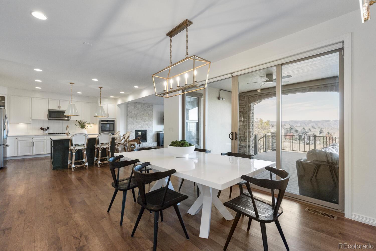 Views, Views, Views! This stunning home in the gated community of BACKCOUNTRY showcases breathtaking mountain views and interior upgraded designer finishes throughout. The gourmet kitchen features a spacious center island—perfect for entertaining—and flows seamlessly into the great room, highlighted by a floor-to-ceiling stone fireplace. The main level also includes a private office with custom built-ins, a dining room with deck access, and a large versatile laundry room complete with a built-in desk ideal for studying, crafts, or a home workstation. Upstairs, the expansive primary suite with custom millwork offers a luxurious retreat with dual closets and a vanity area in the primary bath. The upper level also includes a loft, two bedrooms with a shared Jack-and-Jill bath, and a fourth bedroom with its own en-suite bath. The lower level is designed for fun and functionality, featuring a great room with a kids’ climbing wall, a family room with built-ins that make a perfect theater space, an additional office with a barn door, and a powder bath. Step outside to the extended deck and soak in the incredible sunsets by the outdoor fireplace—a perfect spot to unwind and enjoy the view. Great location backing and fronting to OPEN SPACE! Embrace the Backcountry lifestyle with resort-style pools, a fitness facility, trails, parks, ponds, and so much more.