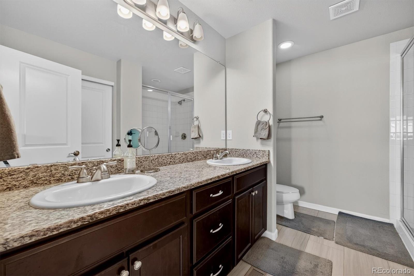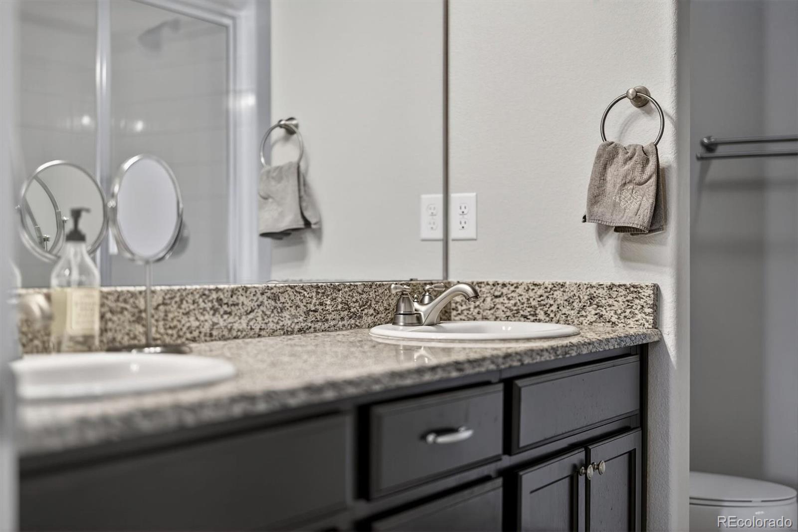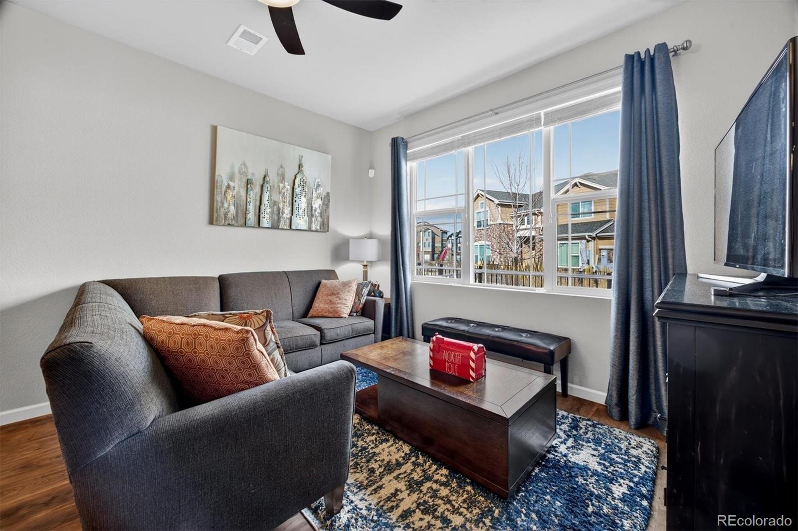 Experience luxury and convenience in this immaculate two-story townhome located in the sought-after Murphy Creek golf course community. Perfectly situated for easy access to E-470 and DIA, this home combines style with functionality. The main level features durable laminate flooring and elegant colonist paneled doors throughout the home. The heart of the home is a fully-appointed kitchen boasting dark espresso cabinetry, stunning granite countertops, and a full suite of stainless appliances (gas range included). Upstairs, you’ll find a dedicated tech niche perfect for remote work and two spacious bedrooms featuring airy vaulted ceilings and ceiling fans. The primary suite serves as a true retreat with a walk-in closet and a deluxe ensuite featuring a double granite vanity and an oversized shower. With an included washer/dryer and window blinds throughout, this turnkey property is an incredible value. Don’t wait—homes in this community sell fast!