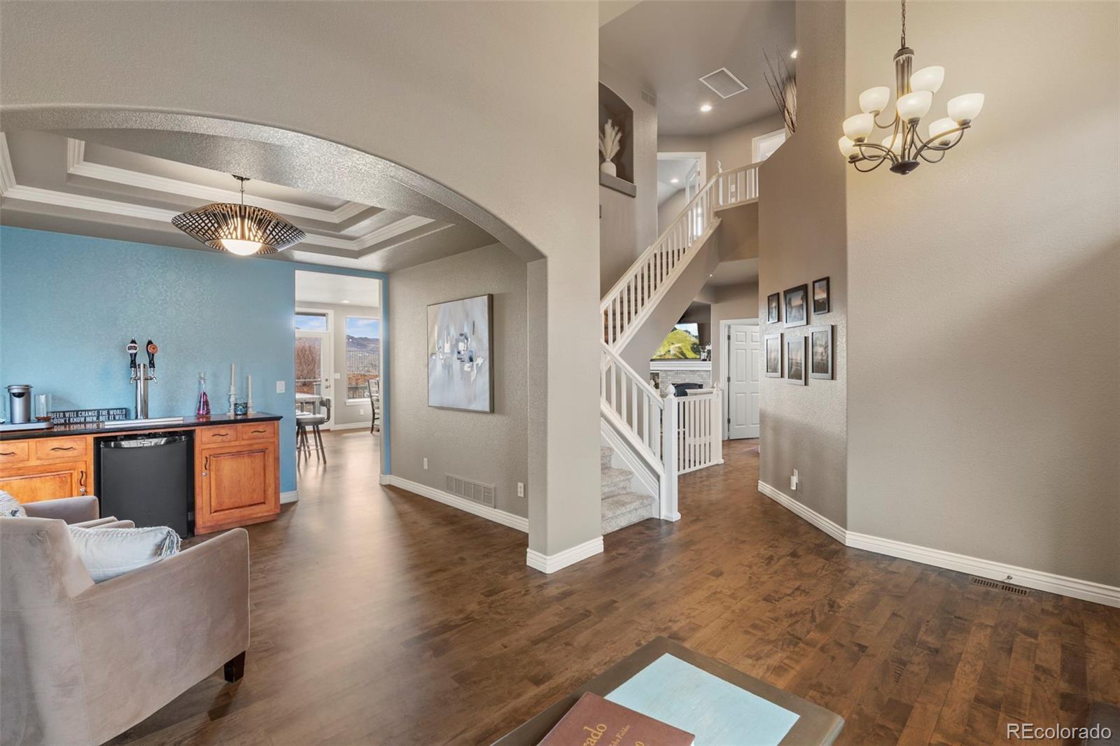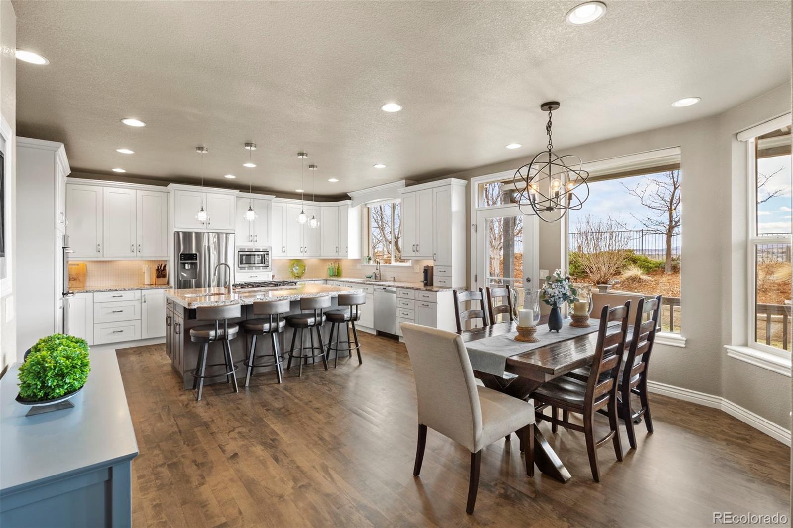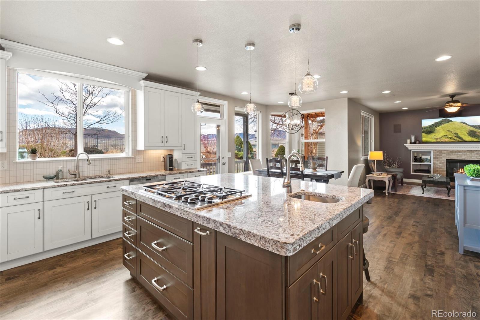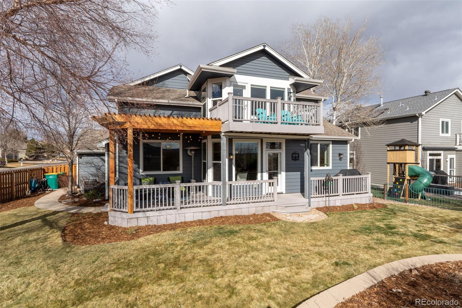 Showings start Friday 2/27 Welcome to West Woods Ranch in Arvada, where luxury meets Colorado living with stunning mountain and golf course views. This beautifully maintained 5-bedroom, 4-bath home or 4 bedroom plus office, offers over 3100 sq ft of bright, open living space with fresh interior and exterior paint and new carpet and solid maple floors. The open-concept layout features a chef’s kitchen with granite countertops, stainless appliances, integrated pull-out pantry, and eat-in area, flowing into a spacious family room with a fireplace. Upstairs, the primary suite includes panoramic views, a private balcony, and a spa-like bath with radiant floors, walk-in shower, dual vanities, and custom walk-in closet. 3 additional bedrooms and a full bath complete the upper level. The finished basement adds a 5th bedroom, bath, media room. Enjoy a backyard covered deck with, vibrant garden, trail access, and unobstructed views. Located near trails, parks, golf, shopping, dining, and with easy access to Golden, Olde Town Arvada, Downtown Denver, Boulder, and the Rocky Mountains, this home offers the best of Colorado living.