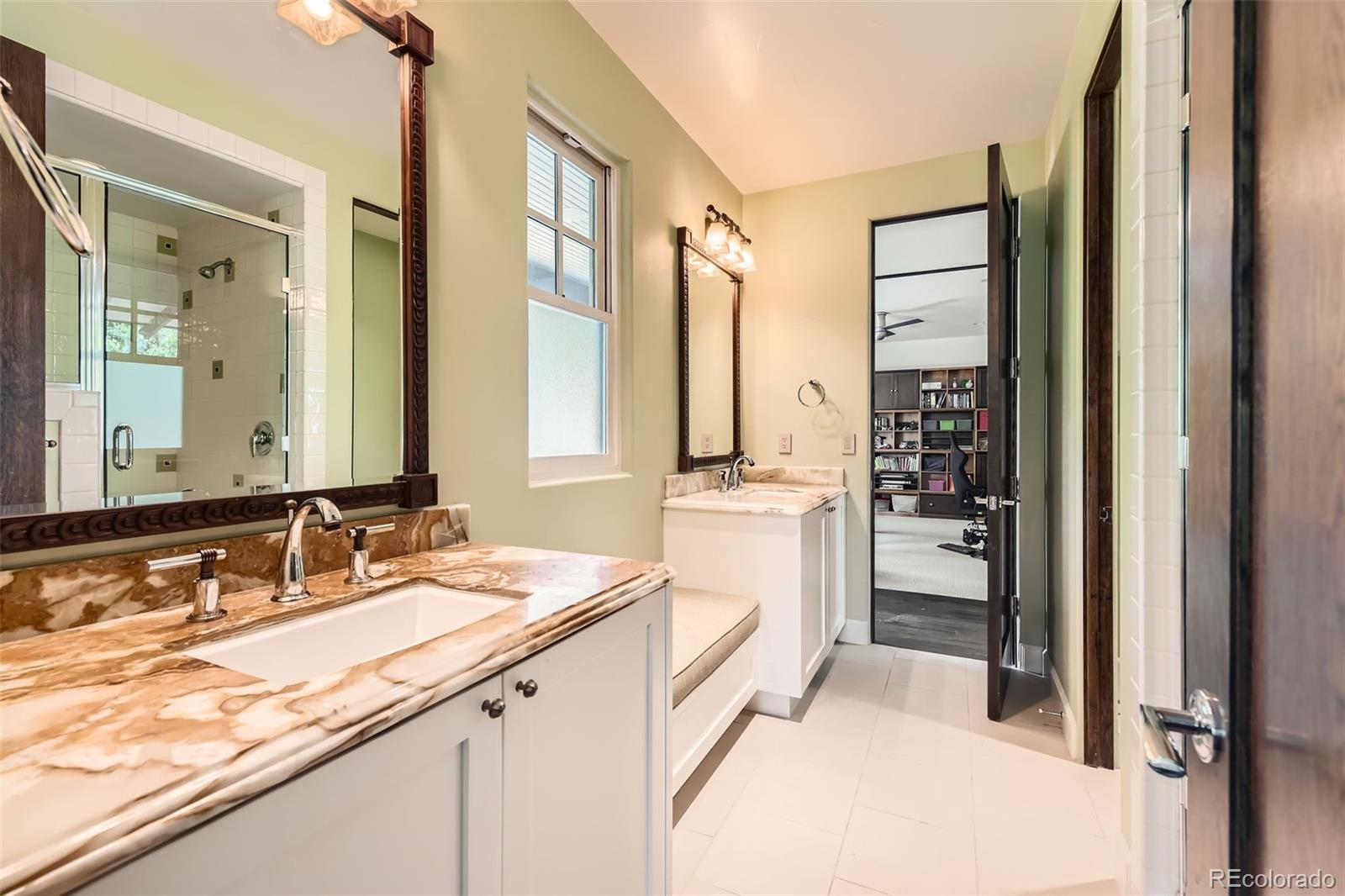 Resort-style compound on a rare double lot in the heart of Hilltop. This custom home delivers the space, privacy and amenities buyers want but almost never find this close to Cherry Creek. Thoughtfully designed for both everyday living and serious entertaining, it offers 7 bedrooms plus multiple flex spaces for office, fitness, media and guests. The main floor centers on a true chef’s kitchen with premium appliances, large center island, walk-in pantry and an open flow to casual dining and family rooms that overlook the backyard. Formal living and dining rooms handle holidays and events, while a separate office/library provides a quiet work-from-home space. The primary suite is conveniently located on the main level, creating easy single-level living for the owners. It features a spacious bedroom, sitting area, spa-inspired bath and generous closets, with quick access to the outdoor areas. Upstairs, additional bedrooms are well-sized with en-suite or nearby baths, giving everyone privacy and comfort. The finished lower level extends the home with a large rec/lounge area, media/theater space, game area, fitness options and additional bedroom/bath combinations ideal for guests, au pair or multi-generational living and a custom office with built in Murphy bed. Outside is where this property truly separates itself: an oversized, resort-style yard with pool and spa, sport court, multiple patios for lounging and dining, and a pool/guest structure that makes the home live like a private club. Mature landscaping and thoughtful hardscape create distinct zones for play, entertaining and quiet relaxation. All of this on one of Hilltop’s most desirable streets, with easy access to Robinson Park, Cranmer Park, Crestmoor Park, Cherry Creek shopping and dining, top schools and central Denver amenities.