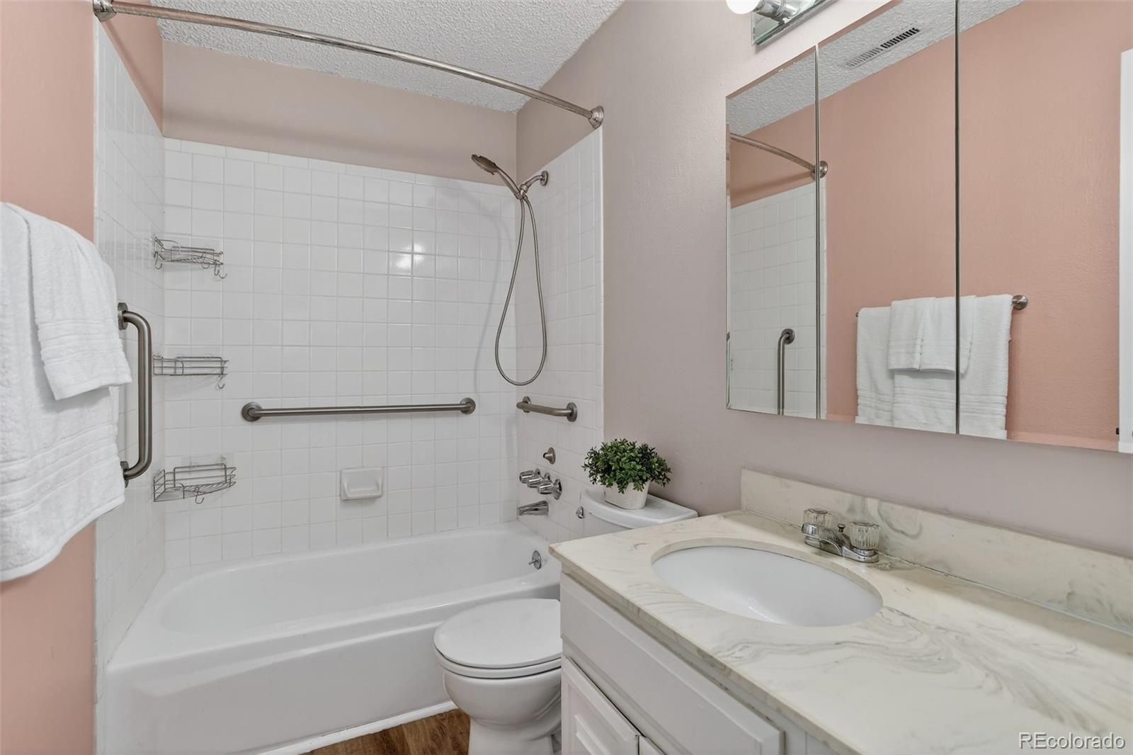 Welcome to low maintenance living in the heart of Centennial. This charming two-bedroom, one-bath condo offers comfort, convenience, and updates in all the right places. Updated flooring flows throughout this 957-square-foot space, creating a clean and modern feel from the moment you walk in. The open living area features a cozy fireplace for those chilly Colorado evenings, while air conditioning keeps you cool in the summer. Step outside and enjoy both a front and back balcony—perfect for your morning coffee or some late-day lounging. The kitchen offers plenty of space to prepare meals, and the included washer and dryer make laundry day a breeze. The primary bedroom is spacious enough to facilitate a king-size bed and features a generous walk-in closet. A second bedroom offers endless options that you can customize to your needs. This condo is close to the essentials. Cherry Knolls Park is just down the road for sunny weekend strolls or outdoor play, while Whole Foods is within walking distance—ideal for spontaneous snack runs or last-minute dinner ingredients. As an added bonus on top of the open parking right out front, this condo comes with the use of one covered carport parking space and use of one storage room in the basement of building A. With smart updates and a thoughtful layout, it's a true blend of function and ease—and with easy access to various shopping, dining and entertainment amenities, this property offers so many possibilities for someone looking for the perfect place to call home.