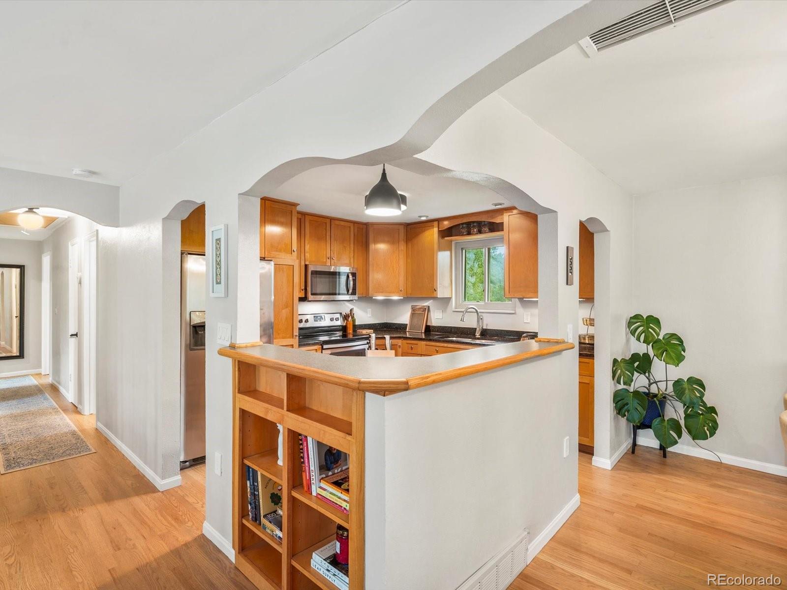 Beautifully Updated Home Backing to Park & Open Space in Sought-After Arvada Neighborhood. Tucked away on a quiet cul-de-sac in an established Arvada neighborhood, this stunning 4-bedroom, 3-bath home perfectly blends charm, modern updates, and an unbeatable location. Step inside to discover newly refinished hardwood floors, new railing, fresh paint, new trim, and modern light fixtures that create a sleek, contemporary feel throughout. The inviting living room features a brick wood-burning fireplace with custom built-ins and feature lighting—perfect for cozy evenings at home. The main level opens to a large wrap-around deck with a new railing, overlooking a spacious backyard that backs directly to a large park and open space—ideal for entertaining or simply relaxing in a peaceful, natural setting. The yard also boasts newer landscaping, a new sprinkler system, and raised garden beds for the garden enthusiast. Stroll directly from your backyard to the park and access Little Dry Creek trail. Downstairs, the lower level offers incredible flexibility—use it as a bedroom with an en-suite bath or a multi-purpose great room with a beautiful brick fireplace. New flooring in the entry, bath, and laundry room adds a fresh touch. Additional highlights include: * New front door and garage doors * Oversized garage for extra storage or workspace * New fire rated door to garage * New sliding door to the back deck This home truly has it all—style, space, and a setting that’s second to none. Don’t miss the opportunity to make this exceptional Arvada home your own!
