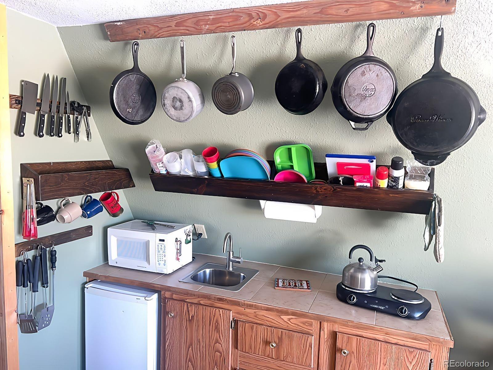 Dreaming of a mountain escape with views that wow? This remodeled A-Frame retreat delivers! Nestled on over 5 acres with sweeping views of the Sangre de Cristo Mountains and Pikes Peak, this cozy one-bedroom + loft cabin is your serene getaway in the woods. The seller is currently adding a brand-new shower, making your half-bath even more functional! Inside, the warm, open layout features a charming pellet stove, kitchenette, and dining nook, perfect for chilly evenings or weekend getaways. An electric heater keeps the bedroom and bath toasty, while the loft above offers extra sleeping or hangout space (yes, you can stand up!). Step through sliding glass doors onto your deck, pick your view, and fire up the BBQ! With just a few neighbors on this quiet, scenic road, it’s peace, nature, and starry skies galore. On-grid power, stove hook-up, and furnishings negotiable. Whether you're sipping coffee with the birds or hosting a mountain cookout, this A-Frame is calling.