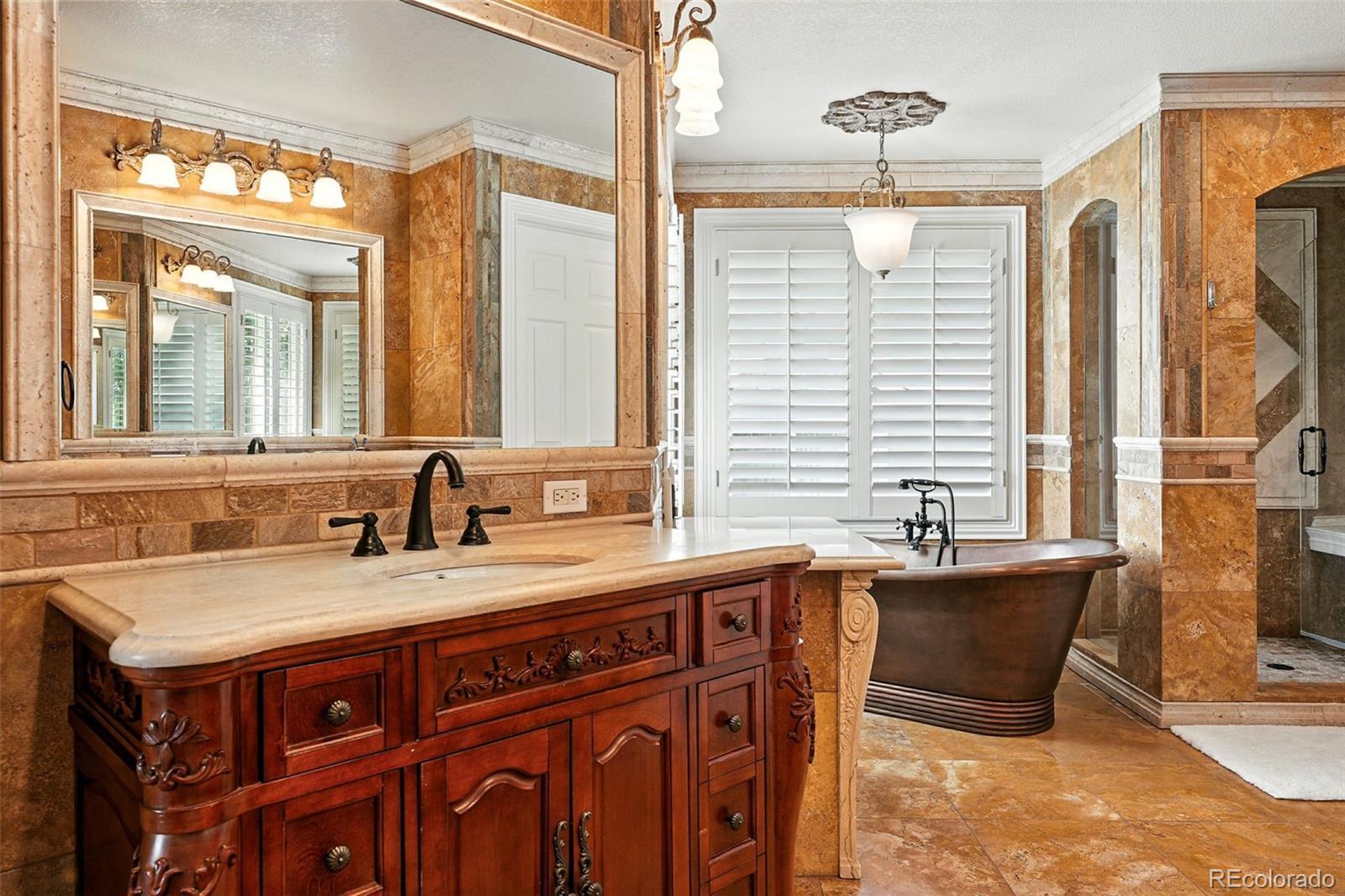 Don't miss on this spectacular Tuscan masterpiece with full walk-out basement! This home backs to open space with awesome views! The main level offers a formal living room & dining room before opening to high ceilings of a second living room with gas log fireplace and built-in sound system. Kitchen provides plenty of storage and has eat-in gourmet kitchen with granite countertops, double ovens & a 5-burner gas cooktop. Primary bedroom features a walk-in closet and a luxurious 5-piece owners bath with travertine, copper, and oil rubbed bronze details! From separate vanities to the free-standing tub and custom glass shower with full body spray! This level has an additional two bedrooms with en-suite baths and a loft open to the living room below. A full, unfinished basement walks out to a covered patio adjoining a fully fenced backyard with beautiful trees. A 3-car garage gives plenty of space to park and play. New roof and many upgrades inside, don't miss out!