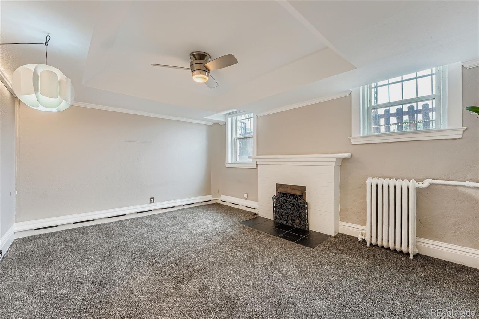 Dreaming of a quiet, peaceful retreat in the heart of the city? Look no further! This bright and spacious 2-bed, 1-bath condo in the heart of Capitol Hill has the best of all worlds. RARE CAPITOL HILL off-street assigned space private parking lot with an EV charger is included. Unmatched walkability (grocery stores, coffee shops, restaurants, parks, Denver Botanic Gardens), open and roomy living space, TONS of storage, and a wonderful community await. So many updates … Complete bathroom remodel and update features tons of storage, and a beautiful walk-in shower. Closet Factory buildout in both bedrooms. Inserts in kitchen and pantry cabinets. All new window shades throughout the unit, blackout shades in bedrooms. All new carpet installed. This garden-level unit lives like an above-ground unit, and large south-facing windows provide abundant natural light. Rare backyard, incredibly quiet and private. The two roomy bedrooms are on opposite sides of the unit, making for a great roommate, home office, or guest room setup. Both bedrooms comfortably fit a queen-sized bed! The kitchen features a walk-through butler's pantry with plenty of cabinet space and a perfect coffee/tea/bar area. Gorgeous original built-ins in the dining room to display your favorite dishes and collectables. A beautiful original fireplace adds coziness and character to the living room. Free community laundry is conveniently right down the hall, as is the large extra storage room. This unit is truly a gem - don't wait, schedule a showing today!