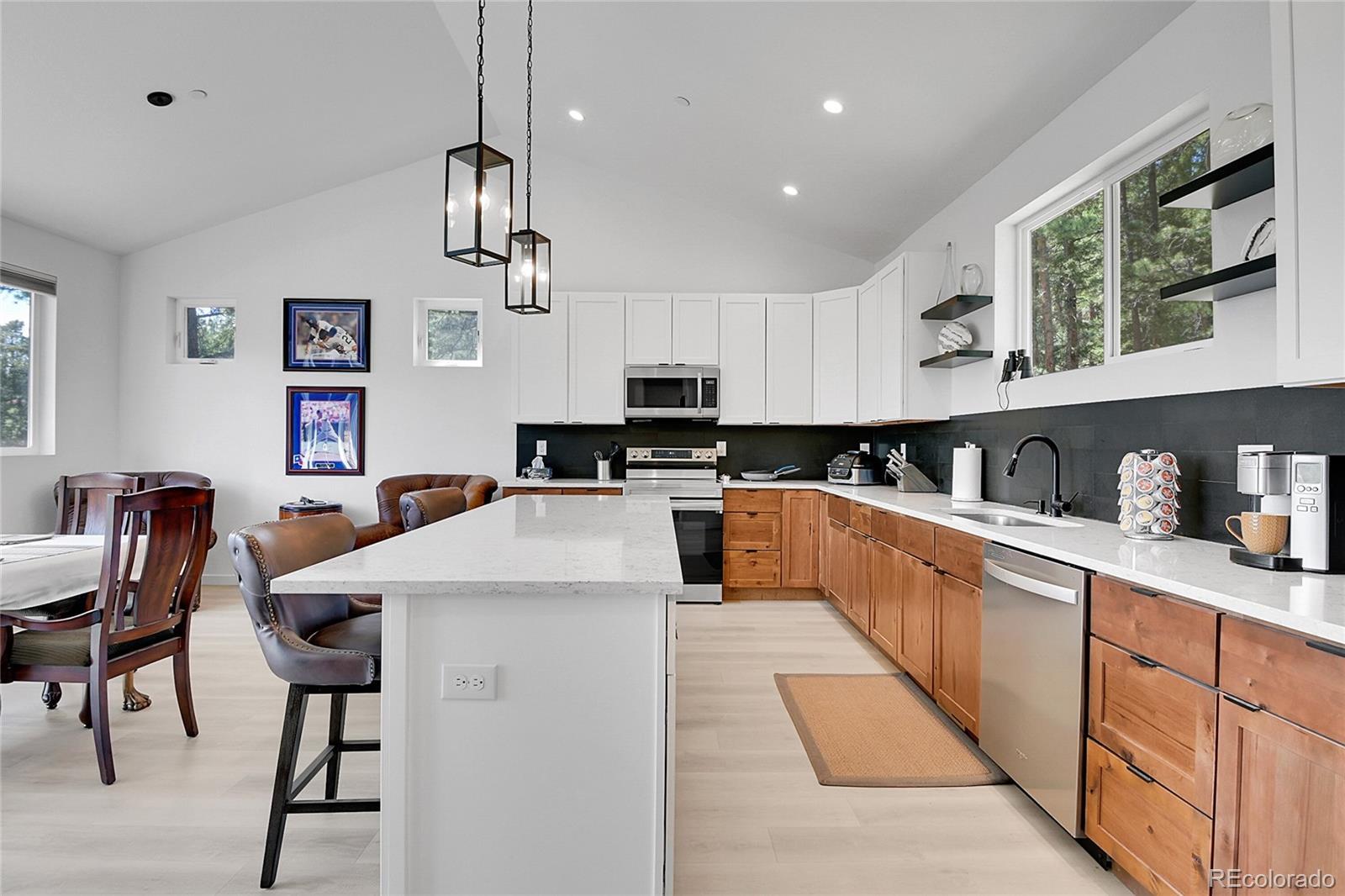 Beautifully crafted custom home on 2 private acres in the highly sought-after Lions Head Ranch subdivision. This 3-bedroom, 3-bath residence features quality construction and high-end finishes throughout, offering the perfect balance of comfort and mountain living. Enjoy stunning mountain views from the main-level deck, ideal for relaxing or entertaining while surrounded by Colorado’s natural beauty. The thoughtfully designed lower level includes two bedrooms, a full bath, and a spacious family room, creating an ideal setup for guests, multi-generational living, or a private retreat. Nestled in the scenic foothills of Pine, just southwest of Denver, this home offers the tranquility of mountain living with convenient access to city amenities. A perfect opportunity for a full-time residence or peaceful mountain getaway.