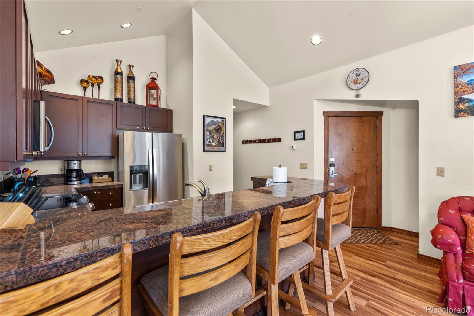 his beautifully updated, upper-level condo offers effortless mountain living with thoughtful upgrades throughout. The spacious open-concept kitchen/dining/living room layout features vaulted ceilings in every room, creating an airy and inviting atmosphere. A cozy gas fireplace anchors the living area, making it the perfect space to unwind after a day of adventure. Step out onto your private covered patio and enjoy sweeping, unobstructed views of the iconic 10 Mile Range, a backdrop that truly embodies mountain living. The property includes a heated garage, ideal for protecting vehicles and gear year-round—an invaluable feature during snowy Colorado winters. Recent upgrades include new appliances, carpet, and luxury vinyl flooring enhance both function and comfort, adding modern touches while maintaining an elegant, mountain-inspired aesthetic. Located within highly desirable resort zone, this condo offers rare flexibility with short-term rental capabilities, making it an exceptional opportunity for personal enjoyment, rental income, or a seamless combination of both. Just steps from your door, you'll find the vibrant energy of Main Street, offering immediate access to boutique shopping, dining, nightlife, and year-round events. Whether you’re seeking a mountain retreat, a revenue-generating property, or both, this condo stands out with its location, views, upgrades, and convenience.