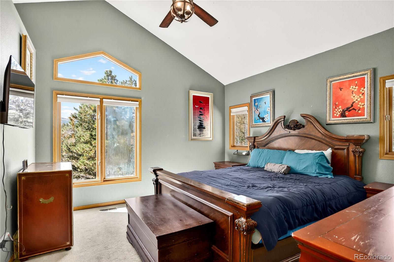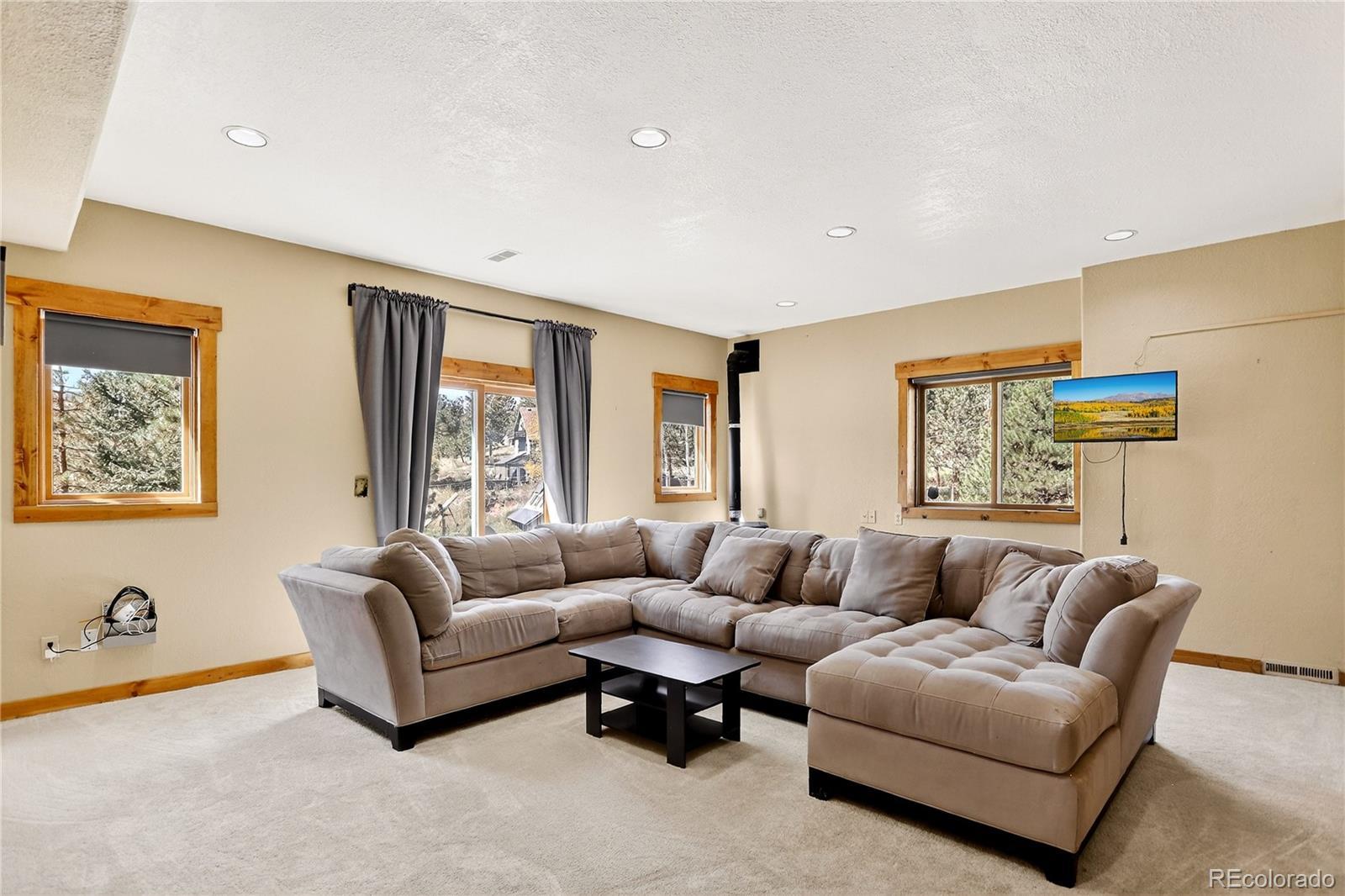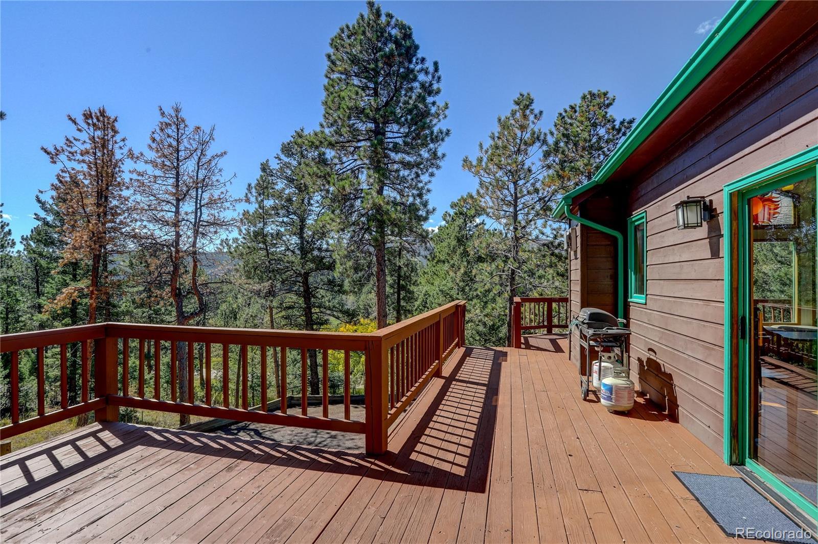 NEW PRICE with Preferred lender incentives: 1) 1% Interest Rate Discount: the first year’s interest rate (1:0 buy-down), fully covered by the lender, or credit towards closing costs. Discover mountain living at its finest in one of Conifer’s most loved neighborhoods. Just minutes from top-rated schools, shopping, dining, and the Park & Ride, and an easy 40-minute drive to downtown Denver. Evergreen and Red Rocks Amphitheater are only 15 minutes away. Enjoy paved roads all the way to your doorstep along with, natural gas, electricity, a private well, and a septic system. Inside, you’ll find a main-floor layout with vaulted ceilings and large windows that let in plenty of natural light and showcase the surrounding mountain views. Hardwood floors and a cozy gas-log fireplace create a warm, inviting atmosphere, while the open kitchen—complete with granite countertops, newer stainless steel appliances, and a dining area—makes cooking and gathering easy and enjoyable. The main-floor primary suite offers a comfortable retreat with a five-piece bathroom. Two more bedrooms, a second full bath, and a main-level laundry room provide flexibility for guests, or a home office. The lower level features a comfortable family room with a pellet stove, a walk-out sliding door to the outdoors, a fourth bedroom or office, and another full bath. The oversized attached two-car garage connects through a mudroom, and additional paved parking for RVs or visitors. Recent updates—including a new roof and freshly painted, sealed deck—add peace of mind.Step outside to enjoy the wrap-around deck with beautiful mountain views. The 1-acre lot is a true gem, with a rare flat and level section that currently has a paved sport court, ideal for play or recreation. This area also offers potential for a future outbuilding, or garden oasis. If you’re looking for a welcoming home with room to breathe, easy access to town, and the best of Colorado’s mountain lifestyle, this one checks all the boxes.
