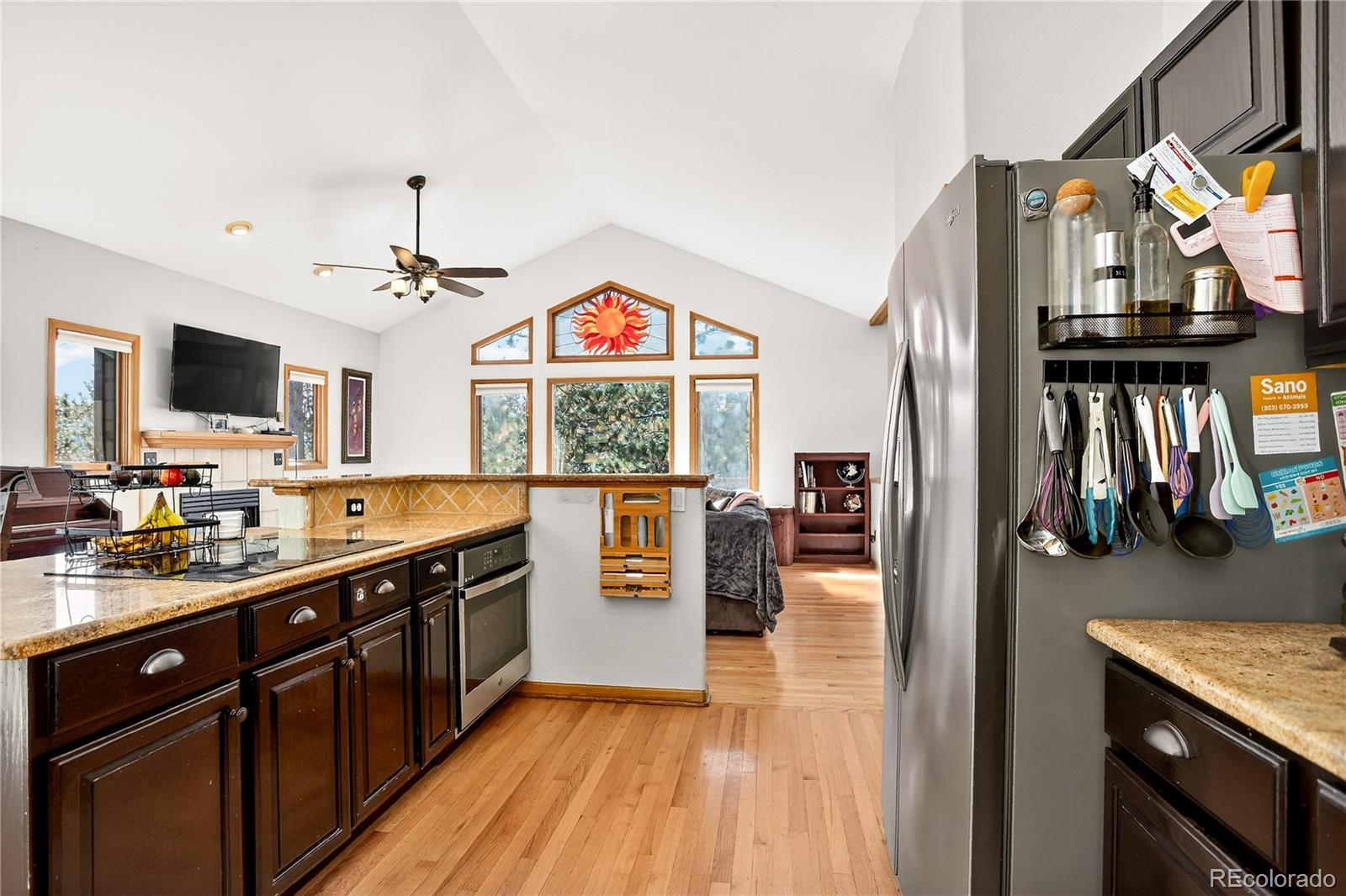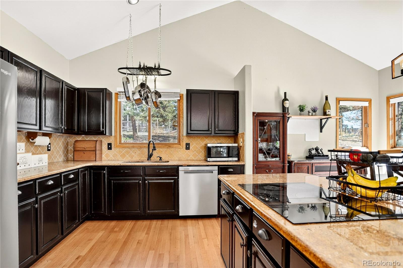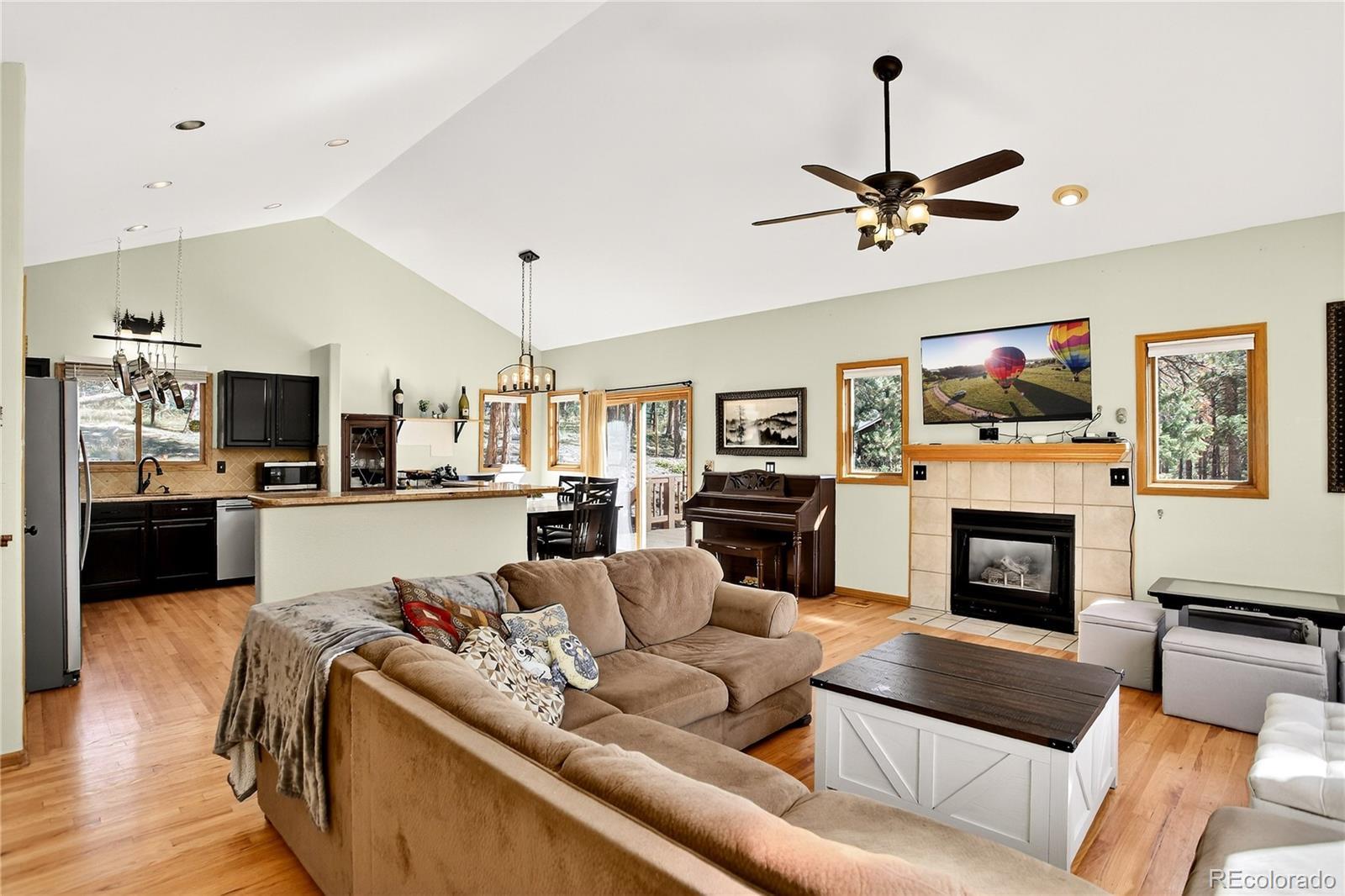 NEW PRICE with Preferred lender incentives: 1) 1% Interest Rate Discount: the first year’s interest rate (1:0 buy-down), fully covered by the lender, or credit towards closing costs. Discover mountain living at its finest in one of Conifer’s most loved neighborhoods. Just minutes from top-rated schools, shopping, dining, and the Park & Ride, and an easy 40-minute drive to downtown Denver. Evergreen and Red Rocks Amphitheater are only 15 minutes away. Enjoy paved roads all the way to your doorstep along with, natural gas, electricity, a private well, and a septic system. Inside, you’ll find a main-floor layout with vaulted ceilings and large windows that let in plenty of natural light and showcase the surrounding mountain views. Hardwood floors and a cozy gas-log fireplace create a warm, inviting atmosphere, while the open kitchen—complete with granite countertops, newer stainless steel appliances, and a dining area—makes cooking and gathering easy and enjoyable. The main-floor primary suite offers a comfortable retreat with a five-piece bathroom. Two more bedrooms, a second full bath, and a main-level laundry room provide flexibility for guests, or a home office. The lower level features a comfortable family room with a pellet stove, a walk-out sliding door to the outdoors, a fourth bedroom or office, and another full bath. The oversized attached two-car garage connects through a mudroom, and additional paved parking for RVs or visitors. Recent updates—including a new roof and freshly painted, sealed deck—add peace of mind.Step outside to enjoy the wrap-around deck with beautiful mountain views. The 1-acre lot is a true gem, with a rare flat and level section that currently has a paved sport court, ideal for play or recreation. This area also offers potential for a future outbuilding, or garden oasis. If you’re looking for a welcoming home with room to breathe, easy access to town, and the best of Colorado’s mountain lifestyle, this one checks all the boxes.