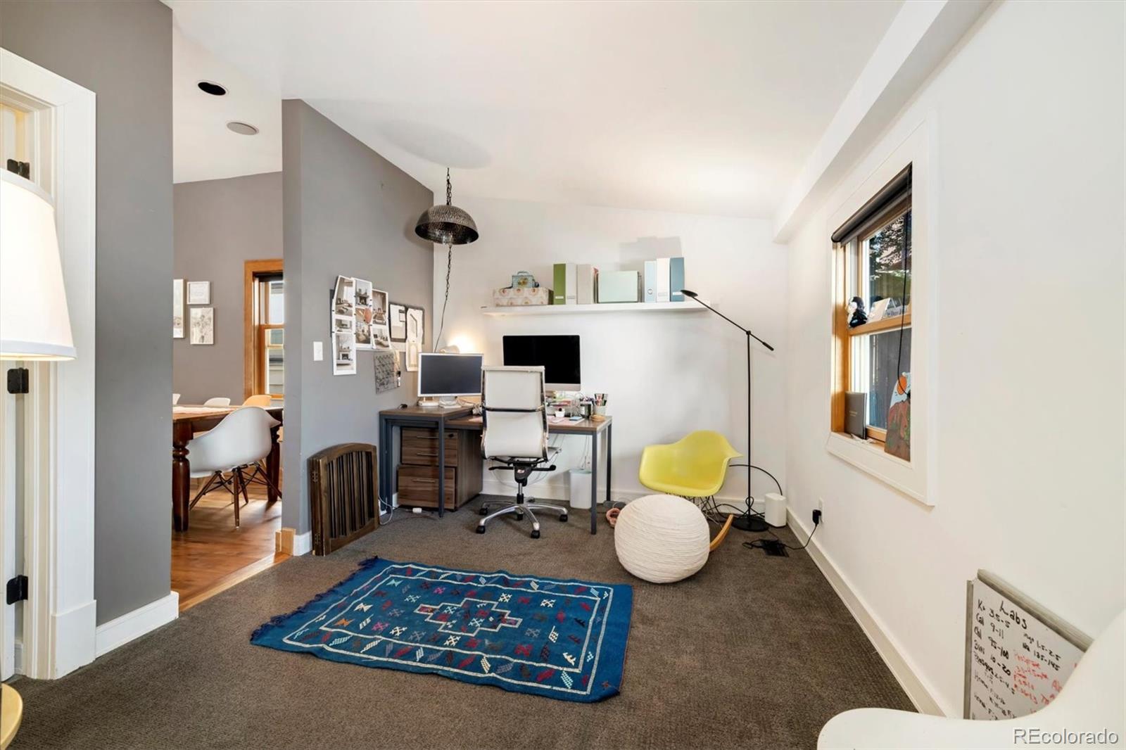 PRIME LoHi LOCATION — Steps from Little Man Ice Cream, Williams & Graham, Occidental, and Highland Tap & Burger, with easy access to downtown via the Highland and Millennium pedestrian bridges. — This 2 bedroom, 1.5 bath home underwent a complete, permitted renovation in 2007. The interior was stripped to the studs with all new copper plumbing, electrical including panel, HVAC, insulation, drywall, and Anderson double-hung windows. The stove, and dishwasher have been replaced within the past few years. — The main level features 10 foot ceilings, solid cherry floors, and a bright open layout. The lower level has 8 foot ceilings, a deep acrylic soaker tub, and two bedrooms. The rear bedroom sits at grade with walk-out access to a private backyard. — The lot spans Umatilla St. to Tejon St. with no alley in between. Umatilla offers a quiet setting with a spacious front sunken patio, while the Tejon side connects you to the energy of LoHi. — The detached garage has its own address (3121 Tejon St.) and electrical service with a new panel, capacity to add 220V for EV charging, and attic storage. It is partitioned with a wall separating the front area used for vending machines and an office space at the back. — Zoned C-MX-3, the property allows mixed-use residential and commercial development. Developers and those looking to expand will appreciate downtown skyline views starting around 15 feet above grade on the Tejon side. — Currently tenant-occupied on a month-to-month lease with 90-day notice. Seller is agreeable to provide such notification to tenant once under contract. — For additional off-street parking, the owner also owns and is willing to sell separately, 3125 Tejon St., a 457 square foot vacant lot with ample room to park two cars front-to-back or accommodate an RV, boat, or other recreational vehicles. — Square footage, lot size, and other details are deemed accurate but should be independently verified.