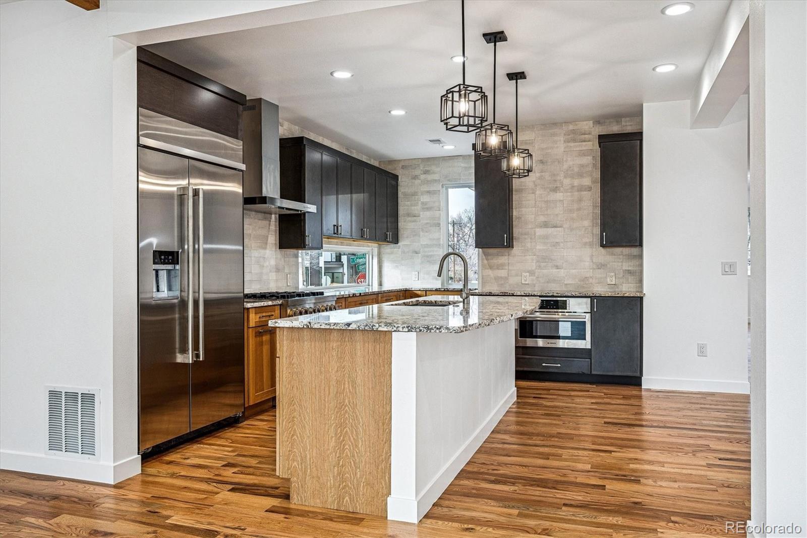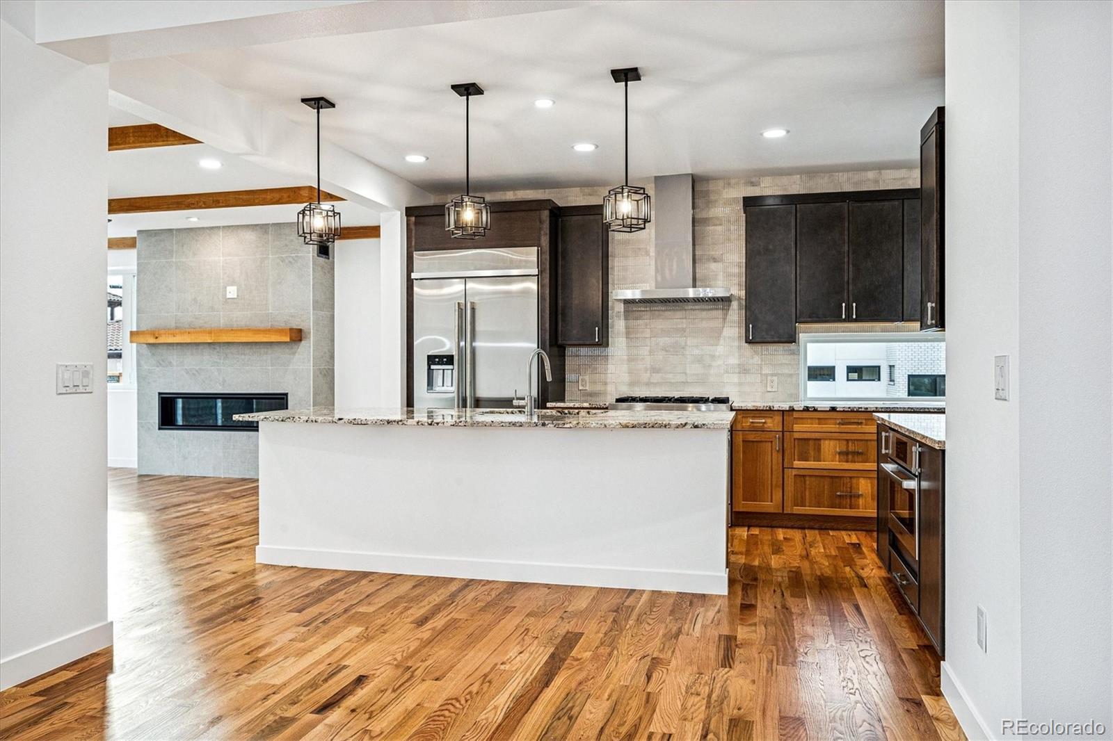 Welcome to 1590 S. Columbine Street, a luxurious custom Craftsman home nestled in the highly sought-after Cory-Merrill neighborhood of Denver, CO. Thoughtfully designed by the esteemed Portico Development group, this exceptional property, occupying a coveted corner lot, boasts 4,400 square feet of superior craftsmanship. Upon entering, you are greeted by glowing solid oak floors and an open, flowing concept that creates a perfect backdrop for daily living and entertaining. The gourmet kitchen is a chef's dream, equipped with high-end Jennair and Bosch appliances and a walk-in pantry. It is flanked by a spacious dining area and an elegant first-floor family room featuring a beamed ceiling, cozy gas fireplace, and large sun-filled windows. A formal sitting area opening to the front porch with mountain views, a main-floor bedroom or office, powder room, and well-planned mudroom complete the main level. The upper level features the exquisite primary suite with a central stunning fireplace, and incredible mountain views. The expansive primary closet offers custom storage, while the spa-inspired bath includes an electric controlled shower system, and soaking tub. Three additional bedrooms, two with en-suite baths, and a spacious laundry room complete this level. The fully finished lower level offers an additional family room with fireplace, wet bar, potential wine closet, a spacious bedroom, full bath, and flex space. Outdoor living includes front and back patios, and a detached two-car garage adds convenience and storage. This remarkable property offers a rare opportunity to own a piece of Cory-Merrill’s charm and sophistication.