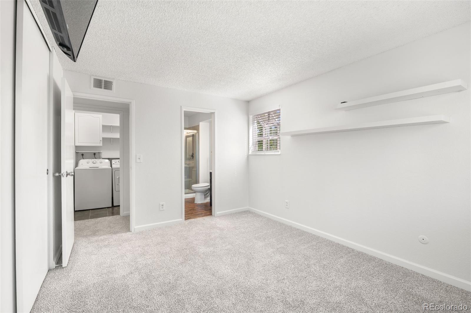 Welcome to 14161 E Jewell Avenue #204. This nicely updated top floor 2-bedroom, 2-bathroom condo offers a bright and inviting open floor plan designed for comfortable living. The living area features a spacious living room with a cozy fireplace, seamlessly connecting to the kitchen and a separate dining area — perfect for everyday living or entertaining. The primary suite includes its own ¾ bath, while a secondary bedroom, full bathroom, several storage closets and convenient in-unit laundry room (washer and dryer included) complete the layout. Recent updates include new carpet, fresh interior paint, a new refrigerator, three new windows, updated window and sliding door blinds, a glass shower door in the primary bathroom, and new light fixtures in the dining area, hallway, and laundry room. Enjoy low-maintenance living with a private balcony that extends your living space. Additional storage is conveniently located in a separate closet in the building to the east, next to the pool. Situated in the BrandyChase II community, this condo is just minutes from shopping, schools, grocery stores, and restaurants, with easy access to I-225.