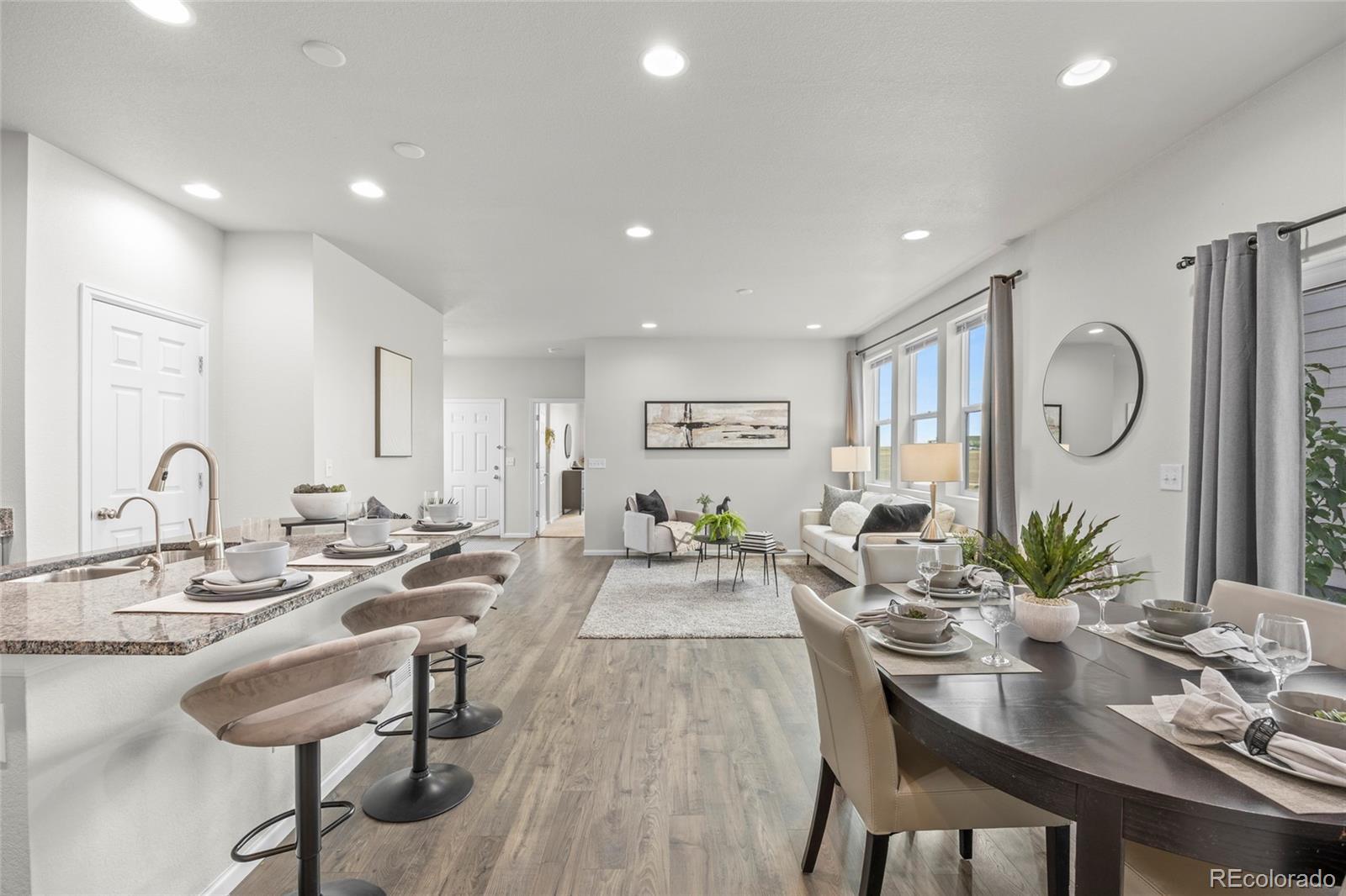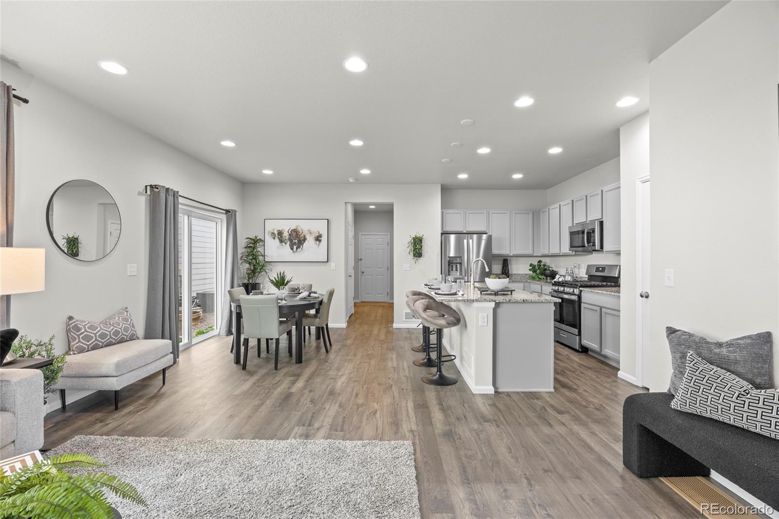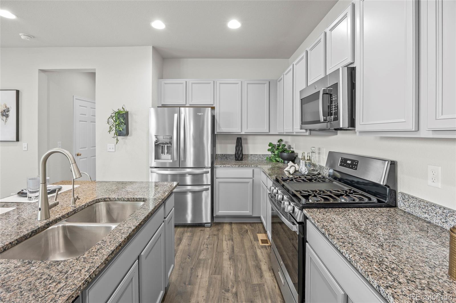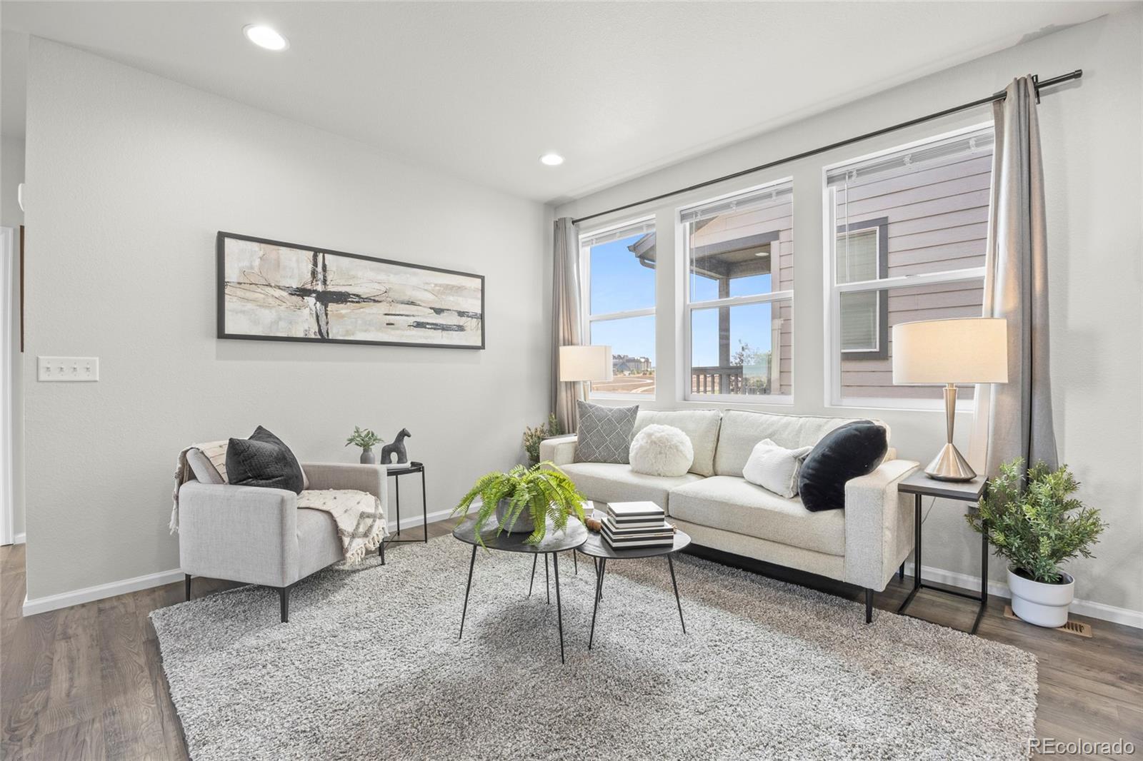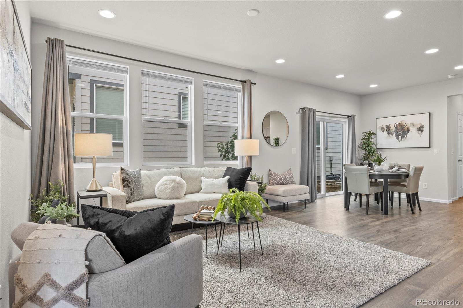 Welcome home to easy, modern living! This bright 2 bed / 2 bath (1,245 sq ft) layout gives you all the right spaces: an open living area for movie nights and game days, a granite kitchen with a gas range + full pantry for serious meal prep, and LVP floors that are both stylish and low-maintenance. The serene primary suite is your unplug zone, while the second bedroom flexes as a WFH office, gym, or guest room. Laundry room = actual storage, and the attached 2-car garage = no more circling the block. Bonus: a massive, clean crawl space (a ~$30K upgrade) runs the length of the home—perfect for gear, bins, bikes, and seasonal stuff. And right across the street, Denver Parks & Recreation is developing a large park/open space—hello dog walks, morning runs, and weekend hangs. Move-in ready, lock-and-leave, and close to everything you love. Easy access to DIA, the new Pepsi facility, the Gaylord hotel and E470.