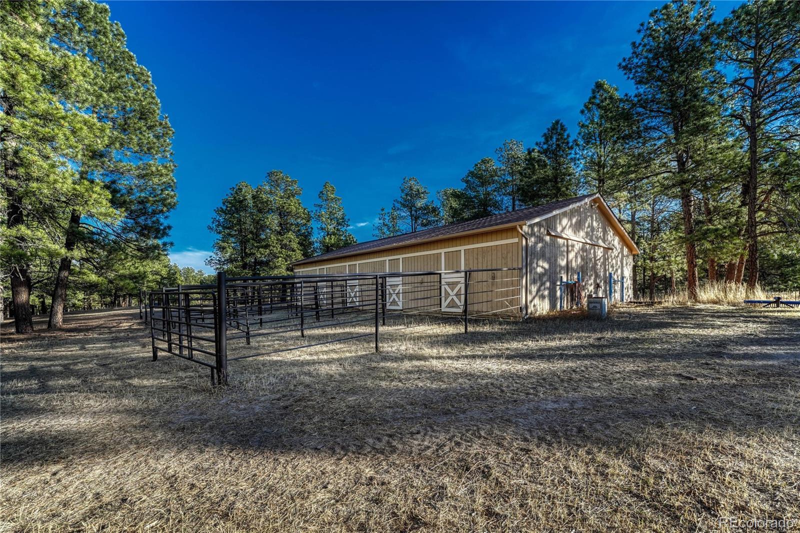 HORSE PROPERTY, 5 STABLES, RANCH/ONE STORY HOUSE, ATTACHED SECOND LIVING SUITE. 5 bedrooms, 5 bathrooms, 3 car garage, additional parking spaces. Main level has chandelier lighting fixtures, plantation shutters, vaulted ceilings, decorative beams, gas fireplace with a beautiful stone surround, wood laminate flooring, updated bathrooms, enclosed outdoor patio living area, and front deck from the kitchen/breakfast nook area. Fully finished basement has a 4th bedroom, bathroom, living area, storage, & a recently built Accessory Dwelling Unit (ADU). ADU has about 1k square feet, its' own kitchen, 5th bedroom, 5th bathroom, living/dining area, laundry, separate entrance, driveway, outdoor living space, & a fenced dog run area. Finishes include LVP and ceramic tile flooring, kitchen island, butcher block counter tops, subway tile backsplash, farm house sink, 6 panel doors, and upgraded cabinets. Sellers estimate that this separate living area could generate about $1,500/month income. Equestrian amenities include: livestock water permit, 40x60 barn/stable-electric/heat/water heater, 5 stables, auto waterers, tack room, drive thru barn, dirt/matted floor, insulated ceiling, fenced corral, dirt roads in this horse sub division, wooded lot w/lots of shade trees for the horses to stay cool in the summer months, and a separate circular driveway. Other upgrades include a 5 piece primary bathroom with a deep soaking jetted tub, bay window, wood laminate/stone/tile flooring, epoxy flooring in the finished garage, 2 basement storage areas w/shelving and one attached to the garage, fenced garden area. All appliances at the property are included. HOA is voluntary and currently being dissolved. Conveniently located near schools, stores, downtown Elizabeth, 3.6 miles north of Hwy 86 & CR 21.