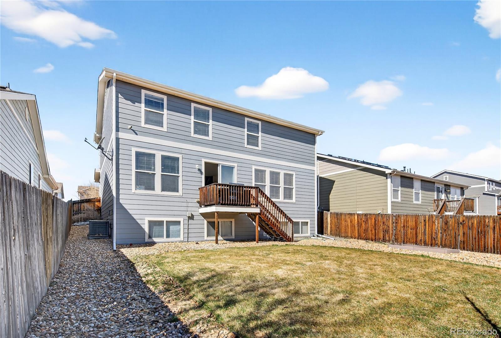 Welcome to this spacious and light-filled 3-bedroom, 3-bath home located in the desirable Quincy Lake subdivision of Littleton, Colorado. With approximately 3,200 square feet of living space, a large backyard, and an unfinished garden-level basement ready for future expansion, this home offers both comfort today and opportunity for customization tomorrow. Inside, the main level features a large open floor plan designed for everyday living and entertaining. The kitchen includes tile countertops, abundant cabinet space, and all appliances included, with a functional layout that flows directly into the dining area and expansive living room. Large windows throughout the home bring in abundant natural light, creating a bright and welcoming atmosphere. The spacious living area connects seamlessly to the backyard deck, providing an ideal setup for indoor-outdoor living. Upstairs, the primary suite offers a comfortable retreat with a large walk-in closet and an oversized shower in the private bathroom. Two additional bedrooms provide flexibility for guests, work-from-home space, or hobbies. A large second-floor loft creates additional living space that can be used as a media room, office, or bonus living area. Ceiling fans have been installed in each bedroom for added comfort. The garden-level basement is unfinished and includes rough-in plumbing, offering excellent potential for additional bedrooms, a recreation area, or a future bathroom. Outside, the fully fenced backyard features a sprinkler system in both the front and back yard and a deck that overlooks the spacious outdoor area. Recent updates include a fresh exterior repaint completed in 2024 and new interior paint in March 2026, along with new carpet throughout the home. Located near parks, trails, shopping, and restaurants, this home provides convenient access to everyday amenities while offering space, flexibility, and comfort in a well-established Littleton neighborhood.