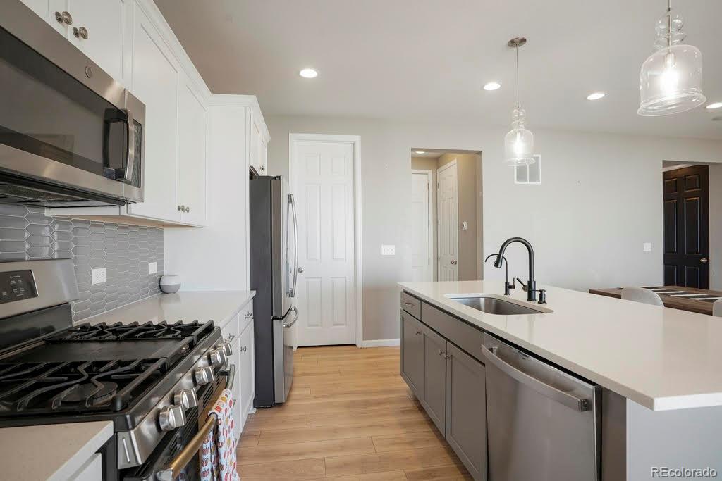 Welcome to a modern designed home with stunning curb-appeal, and today’s lifestyle in mind. This residence features two living rooms, and a versatile den perfect for a home office or flex space. This house encompasses a modern, open-concept kitchen showcasing sleek finishes and effortless flow into the living areas, along with a spacious backyard. The home is in excellent condition throughout, offering a fresh, move-in-ready feel with a contemporary style buyers love! Enjoy comfort, functionality, and refined design all in one, with easy access to Denver International Airport (DIA), major highways, parks, and neighborhood amenities. This is Colorado living done right.
